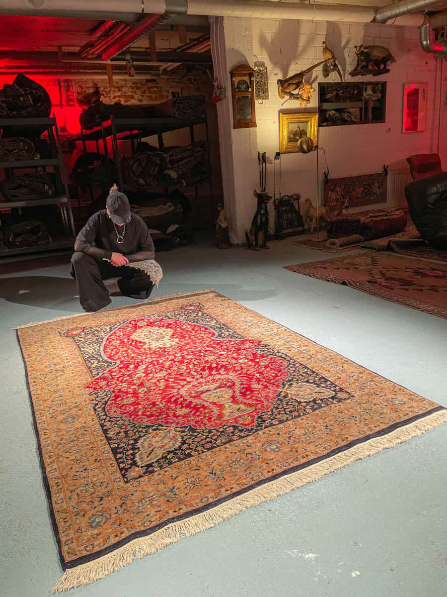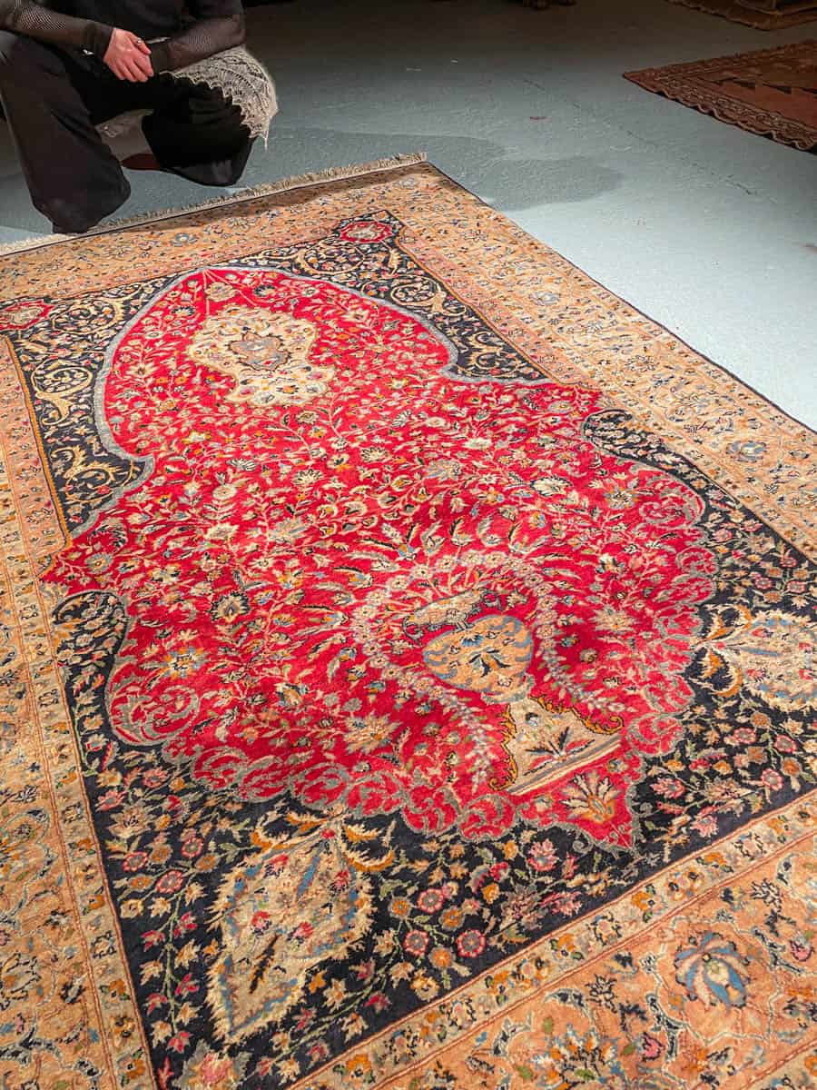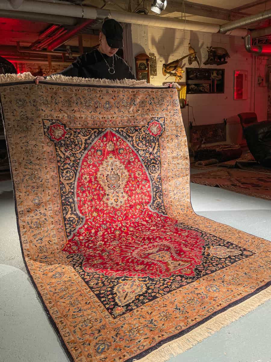 Tämä matto sijaitsee Galleriallamme osoitteessa Kankurinkatu 7, Punavuori – jos haluat tulla katsomaan sitä paikan päälle, sovithan näytön viestitse tai puhelimitse.