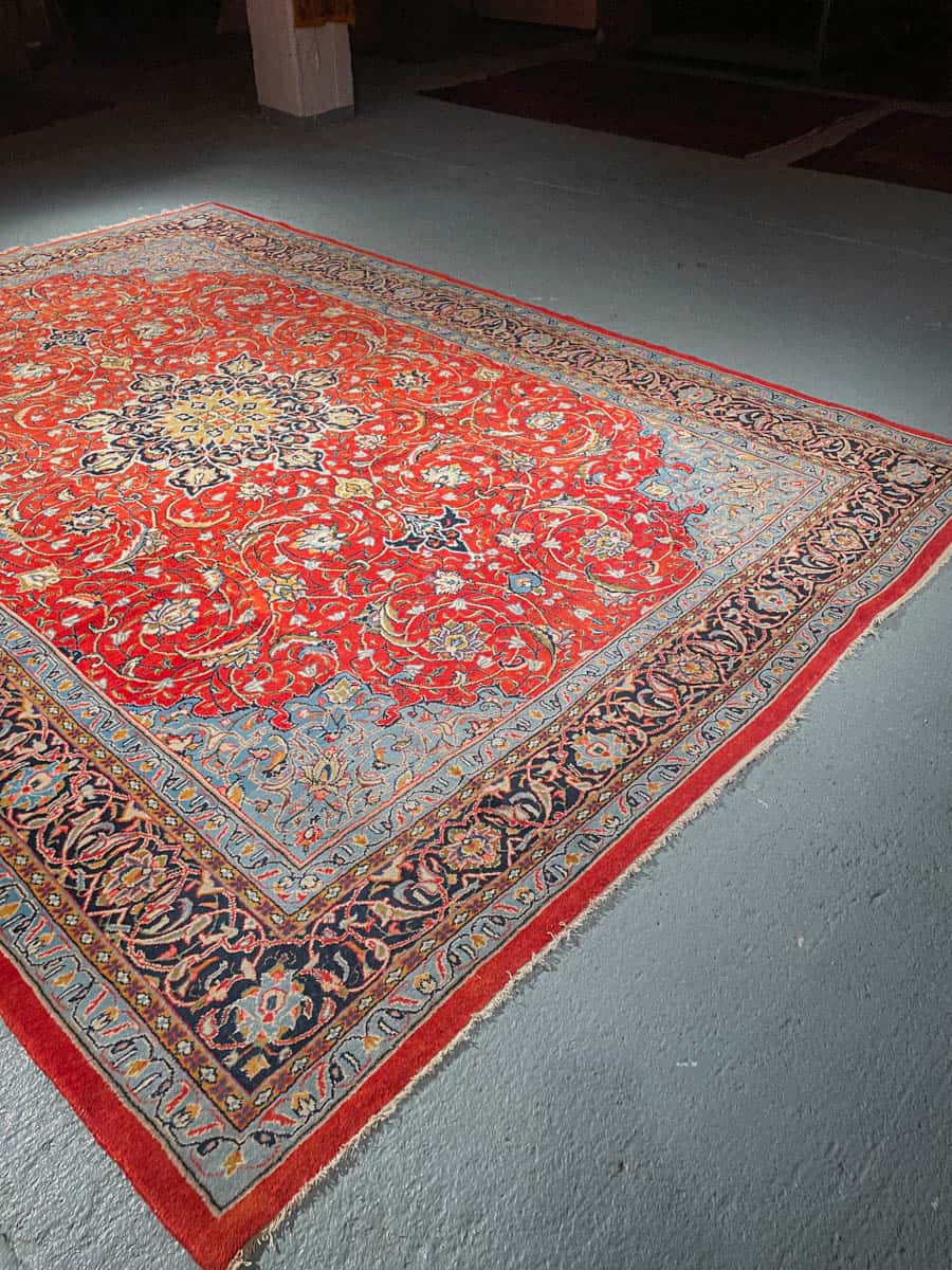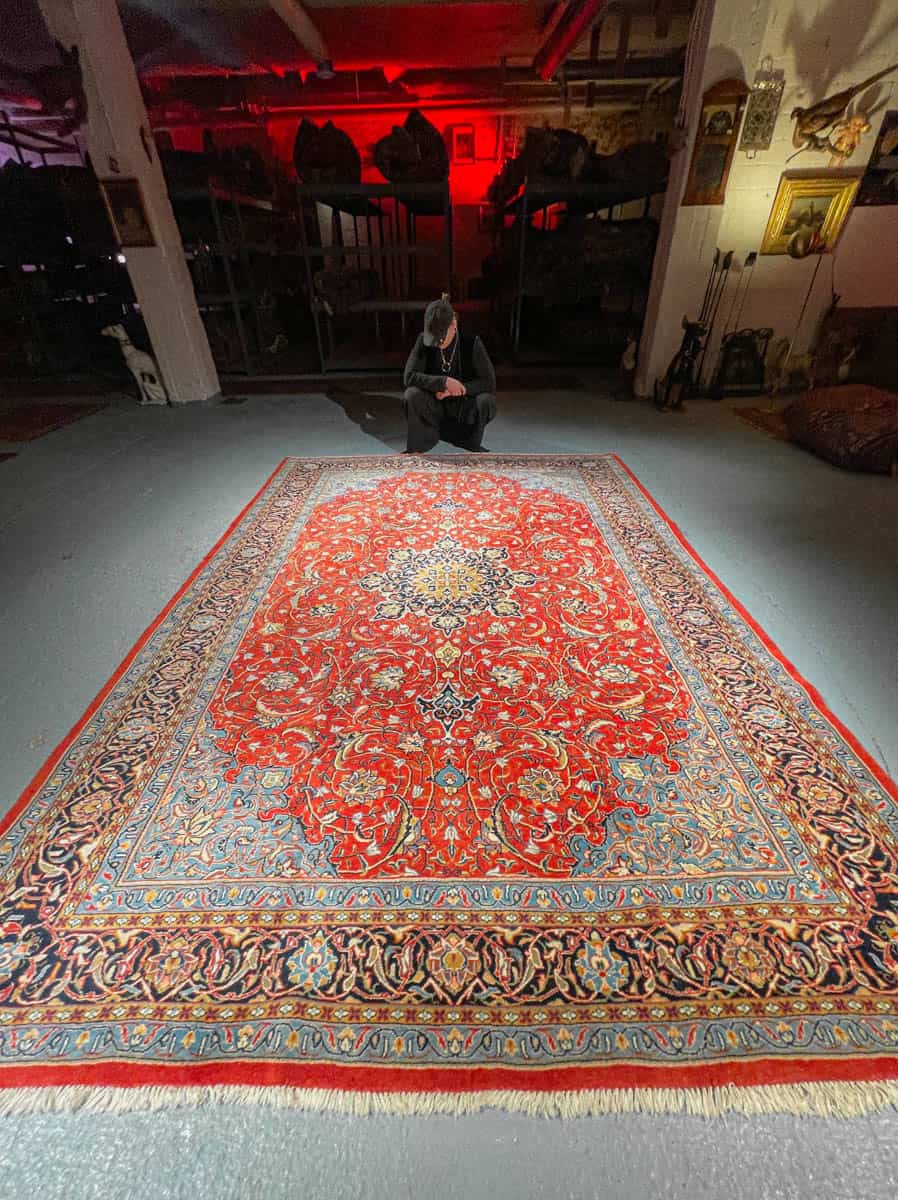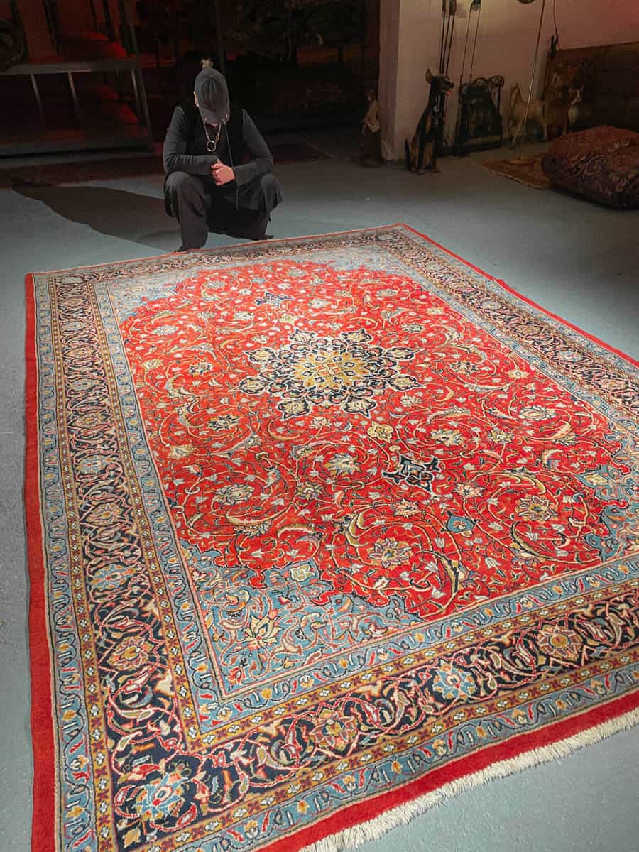 Tämä matto sijaitsee Galleriallamme osoitteessa Kankurinkatu 7, Punavuori – jos haluat tulla katsomaan sitä paikan päälle, sovithan näytön viestitse tai puhelimitse.