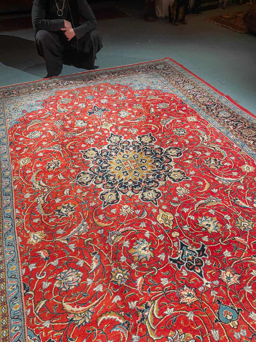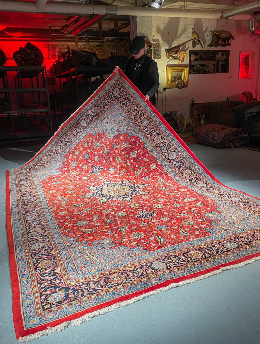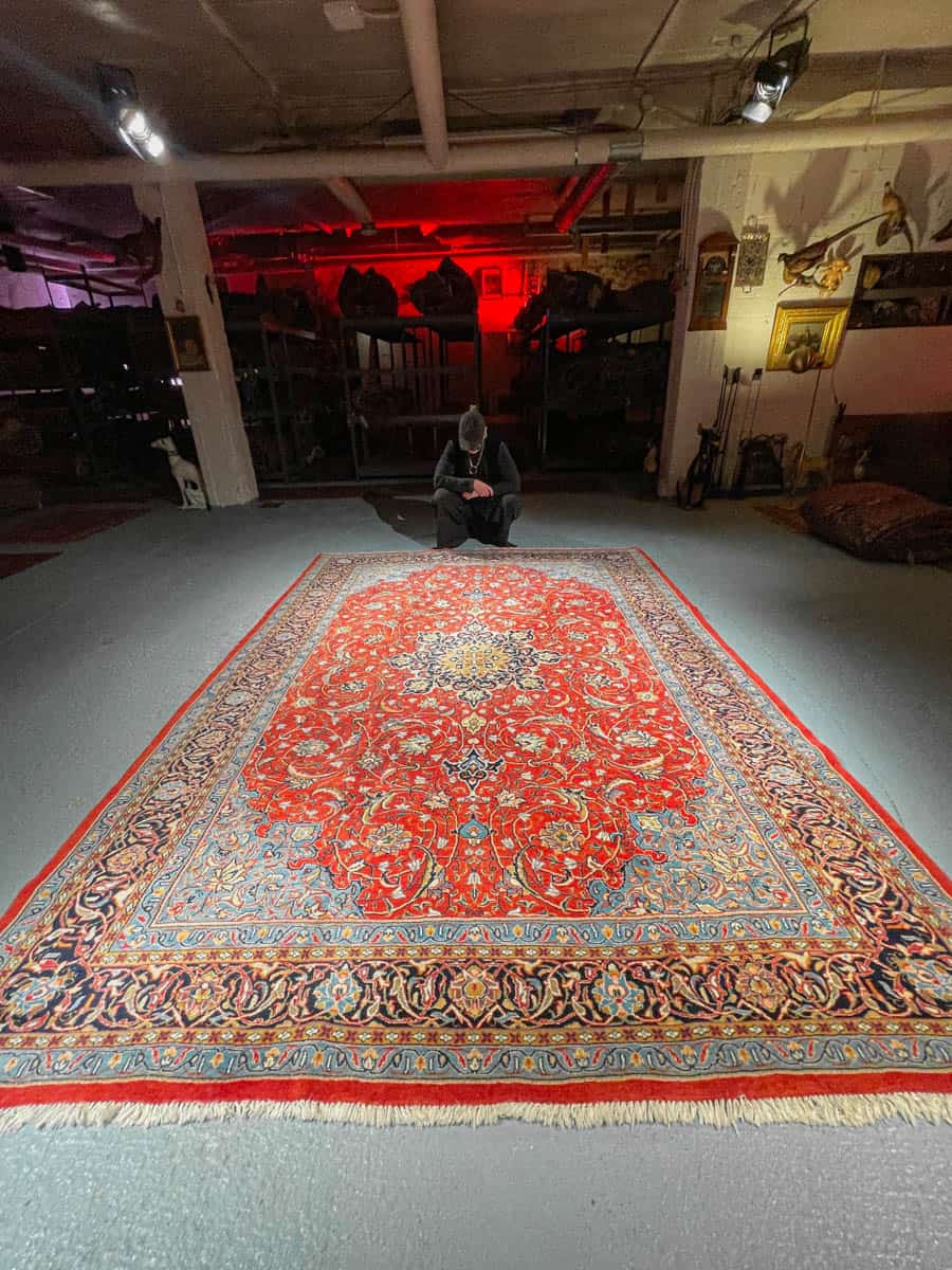 Tämä matto sijaitsee Galleriallamme osoitteessa Kankurinkatu 7, Punavuori – jos haluat tulla katsomaan sitä paikan päälle, sovithan näytön viestitse tai puhelimitse.