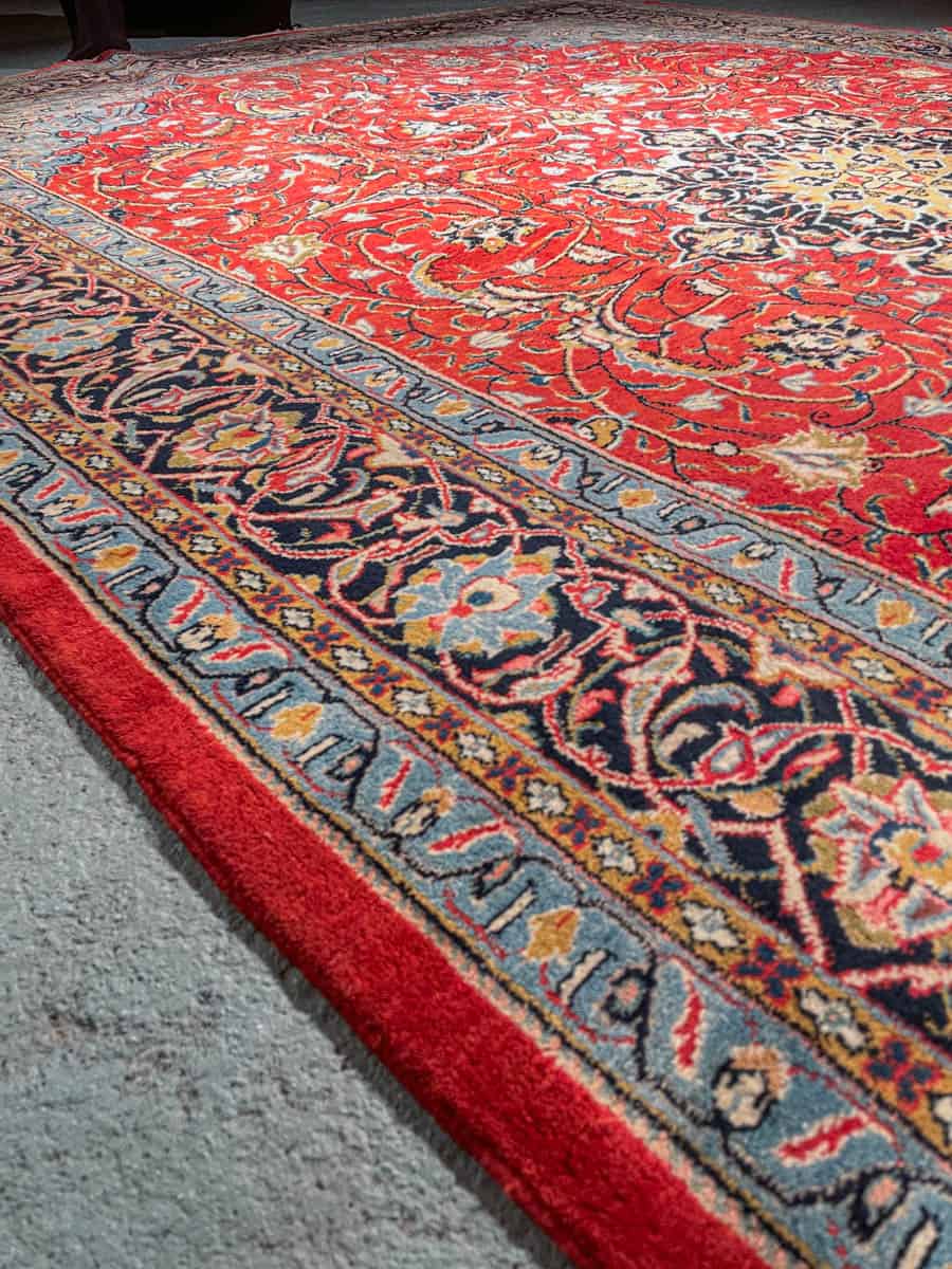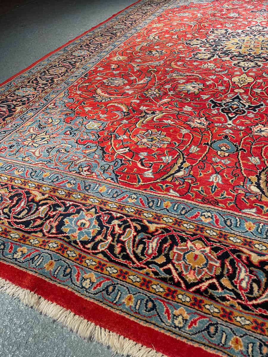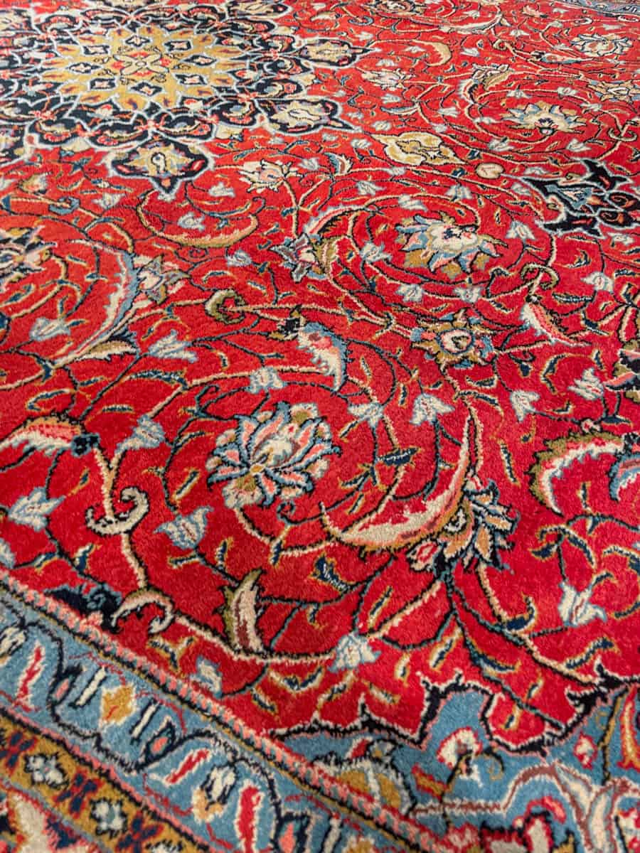 Tyrmäävä ja kauniin yksityiskohtainen perinteinen iranilainen Sarouk sinipunaisella väriteemalla.