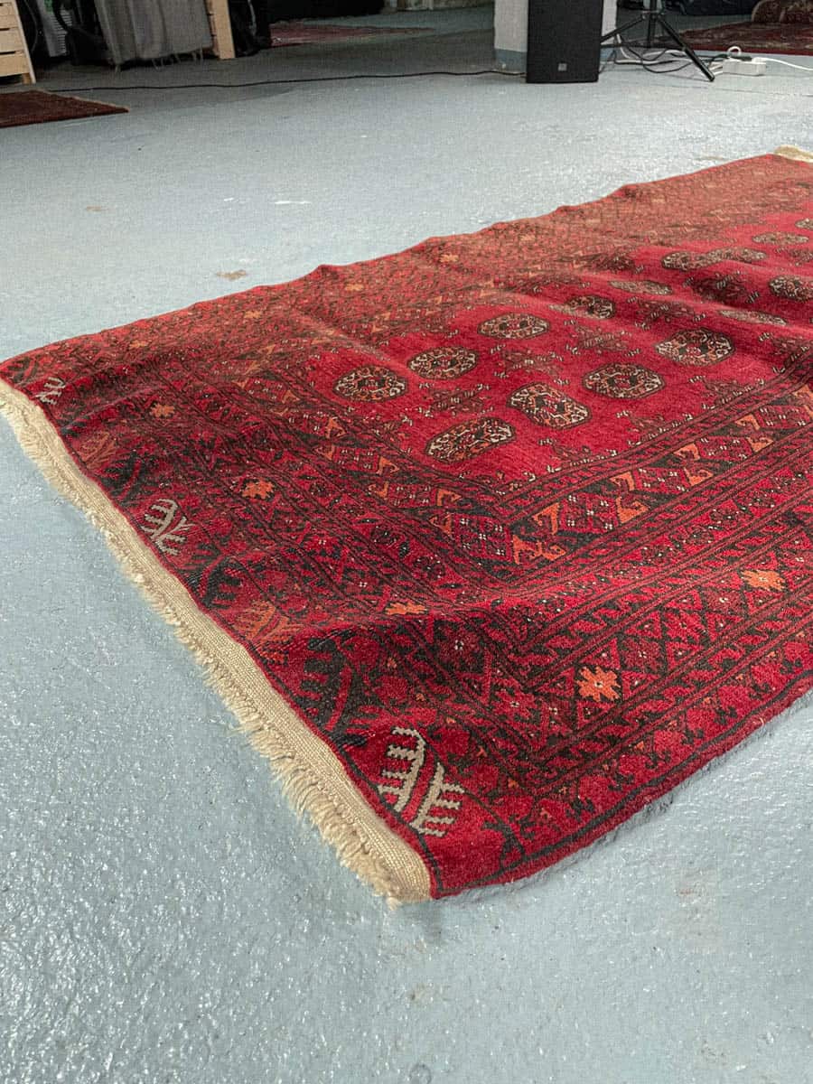 Kaunis afgaanimatto perinteisillä väreillä ja kauniilla kuvioinnilla. Käsinsolmittu villasta villaloimelle.