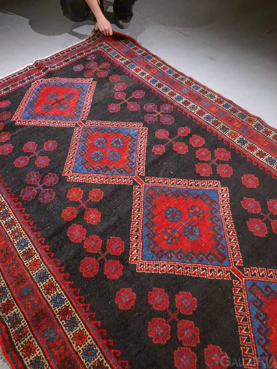 Tämä matto sijaitsee Galleriallamme osoitteessa Kankurinkatu 7, Punavuori – jos haluat tulla katsomaan sitä paikan päälle, sovithan näytön viestitse tai puhelimitse.