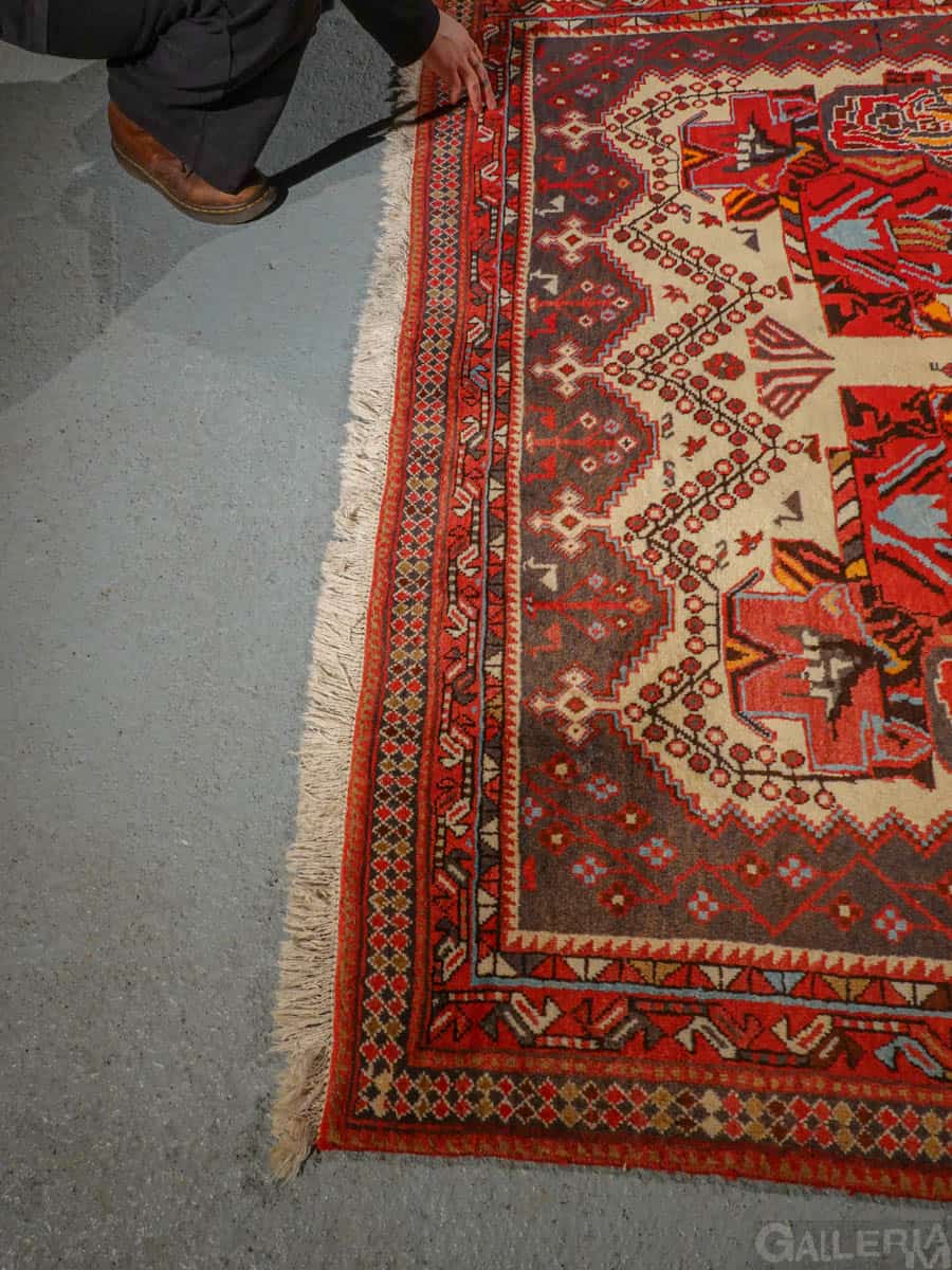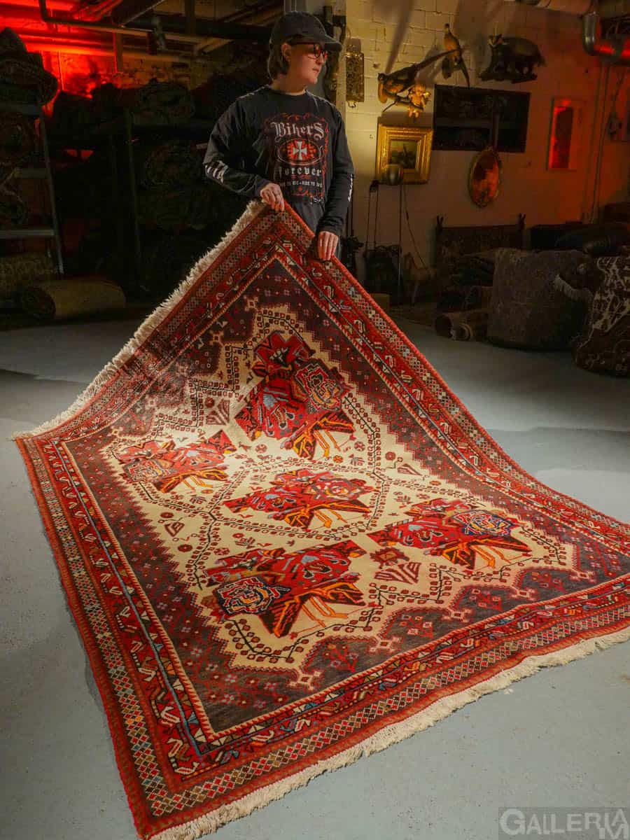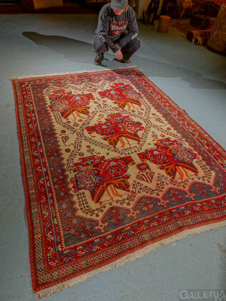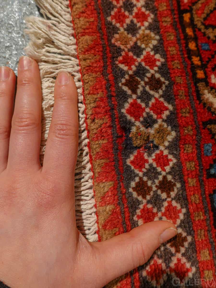 Tämä matto sijaitsee Galleriallamme osoitteessa Kankurinkatu 7, Punavuori – jos haluat tulla katsomaan sitä paikan päälle, sovithan näytön viestitse tai puhelimitse.