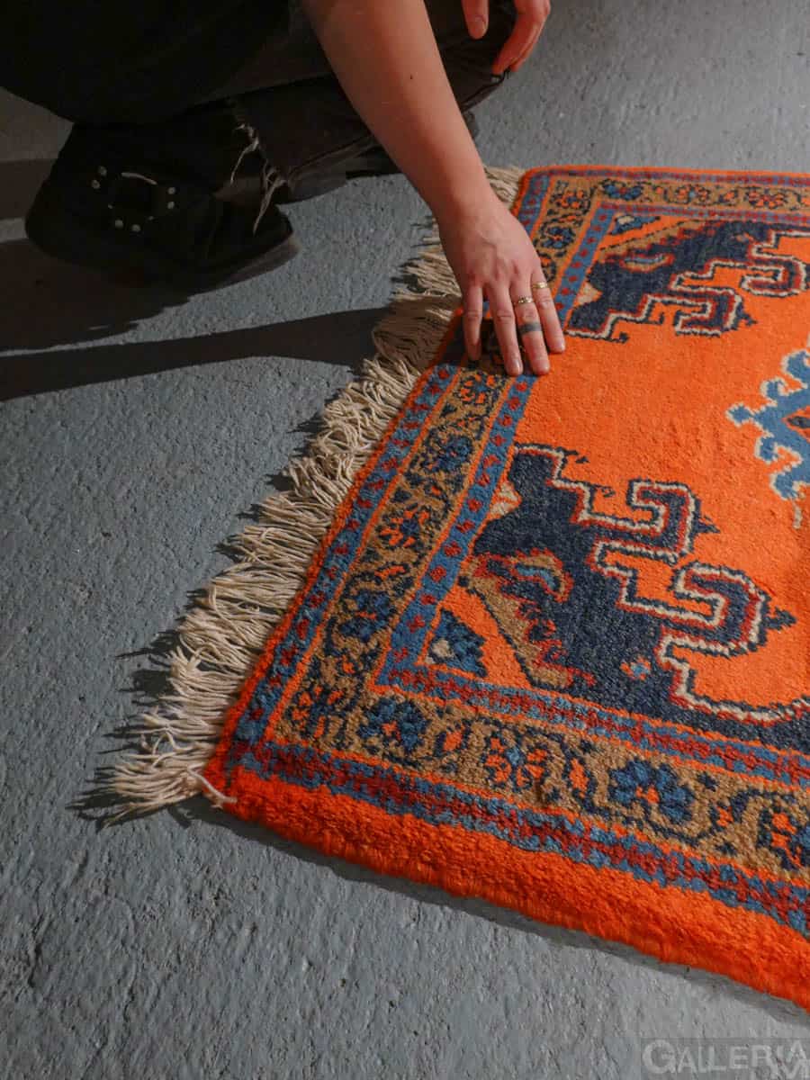 Tämä matto sijaitsee Galleriallamme osoitteessa Kankurinkatu 7, Punavuori – jos haluat tulla katsomaan sitä paikan päälle, sovithan näytön viestitse tai puhelimitse.