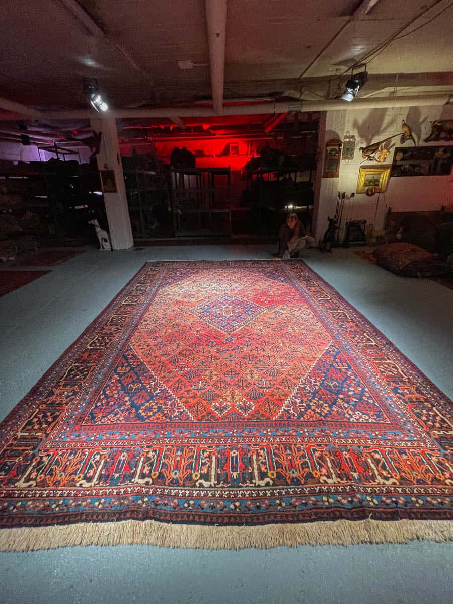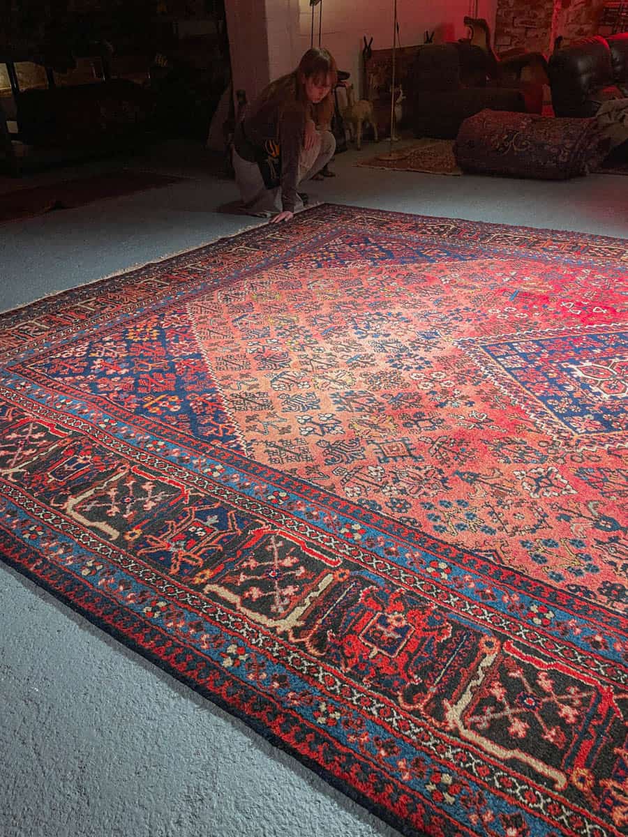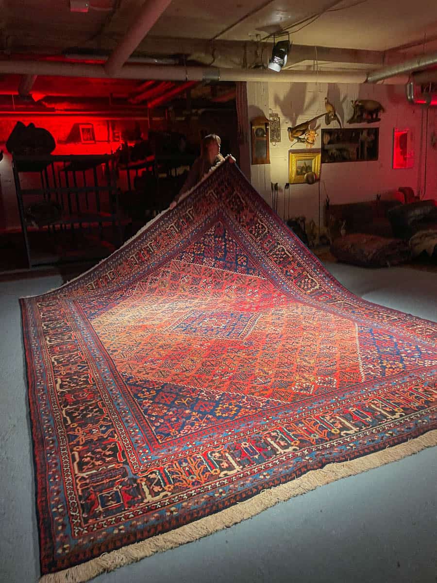Tämä matto sijaitsee Galleriallamme osoitteessa Kankurinkatu 7, Punavuori – jos haluat tulla katsomaan sitä paikan päälle, sovithan näytön viestitse tai puhelimitse.