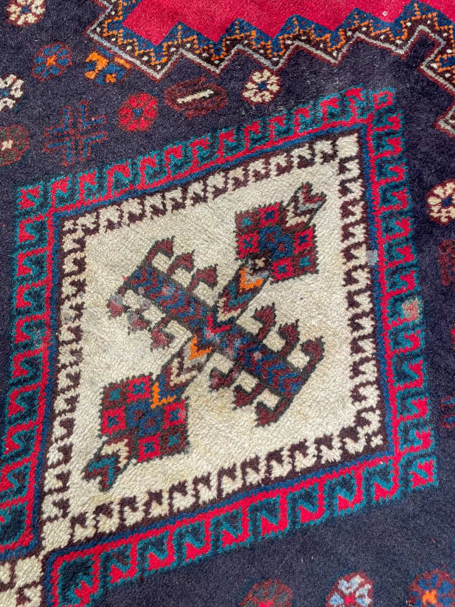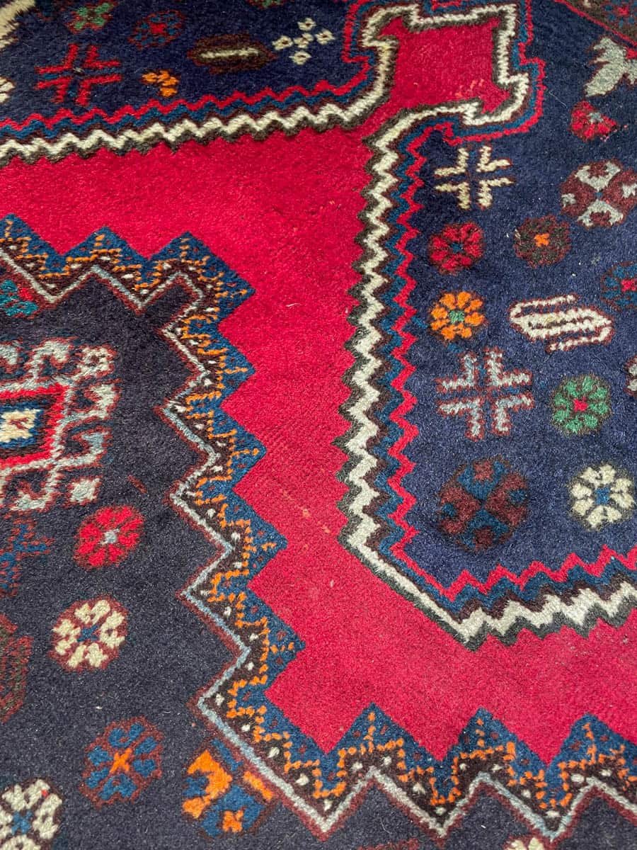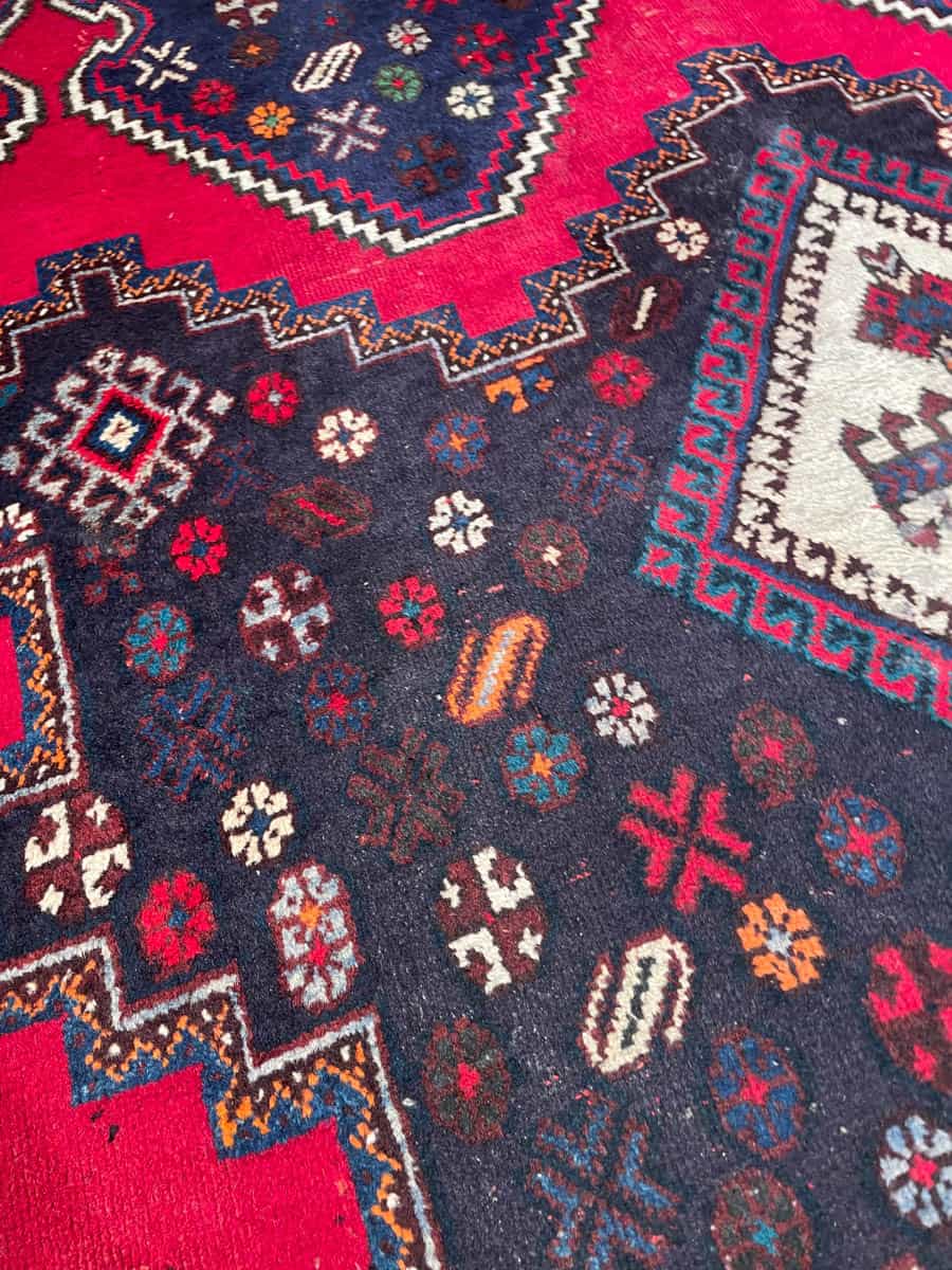Tyylikäs persialainen Afshar geometrisella kuvioinnilla ja näyttävillä tummilla väreillä. Käsinsolmittu villasta n. 50 vuotta sitten.