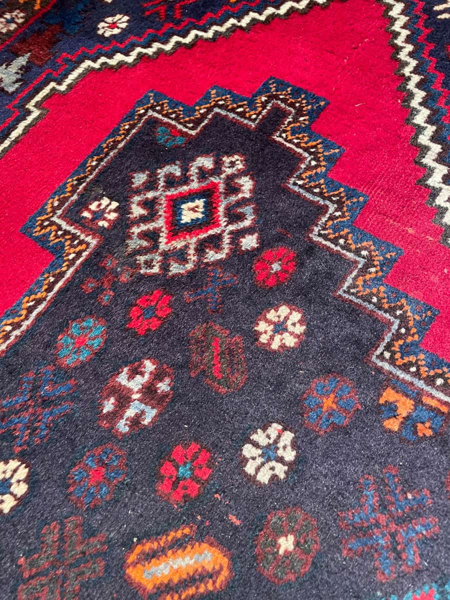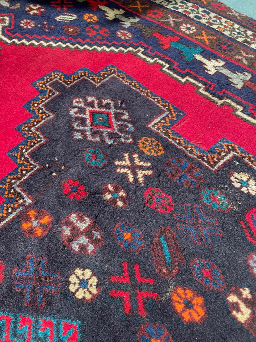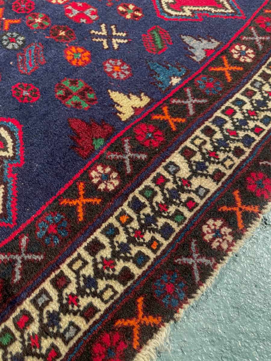 Tyylikäs persialainen Afshar geometrisella kuvioinnilla ja näyttävillä tummilla väreillä. Käsinsolmittu villasta n. 50 vuotta sitten.