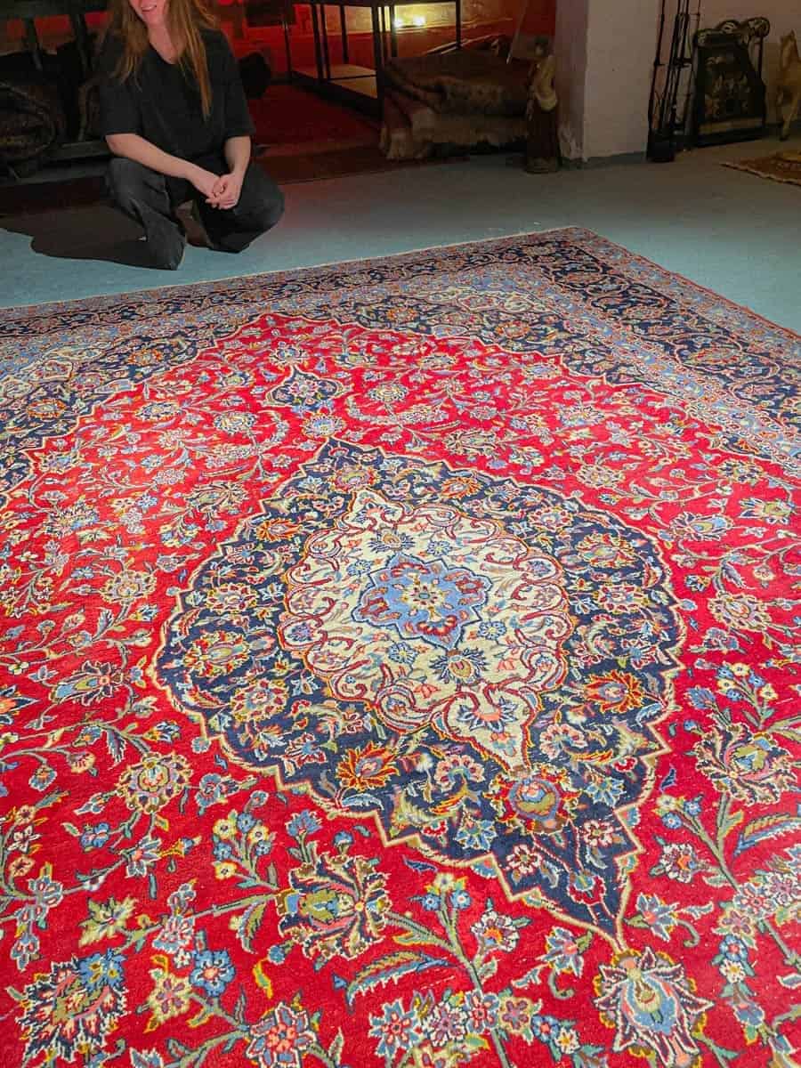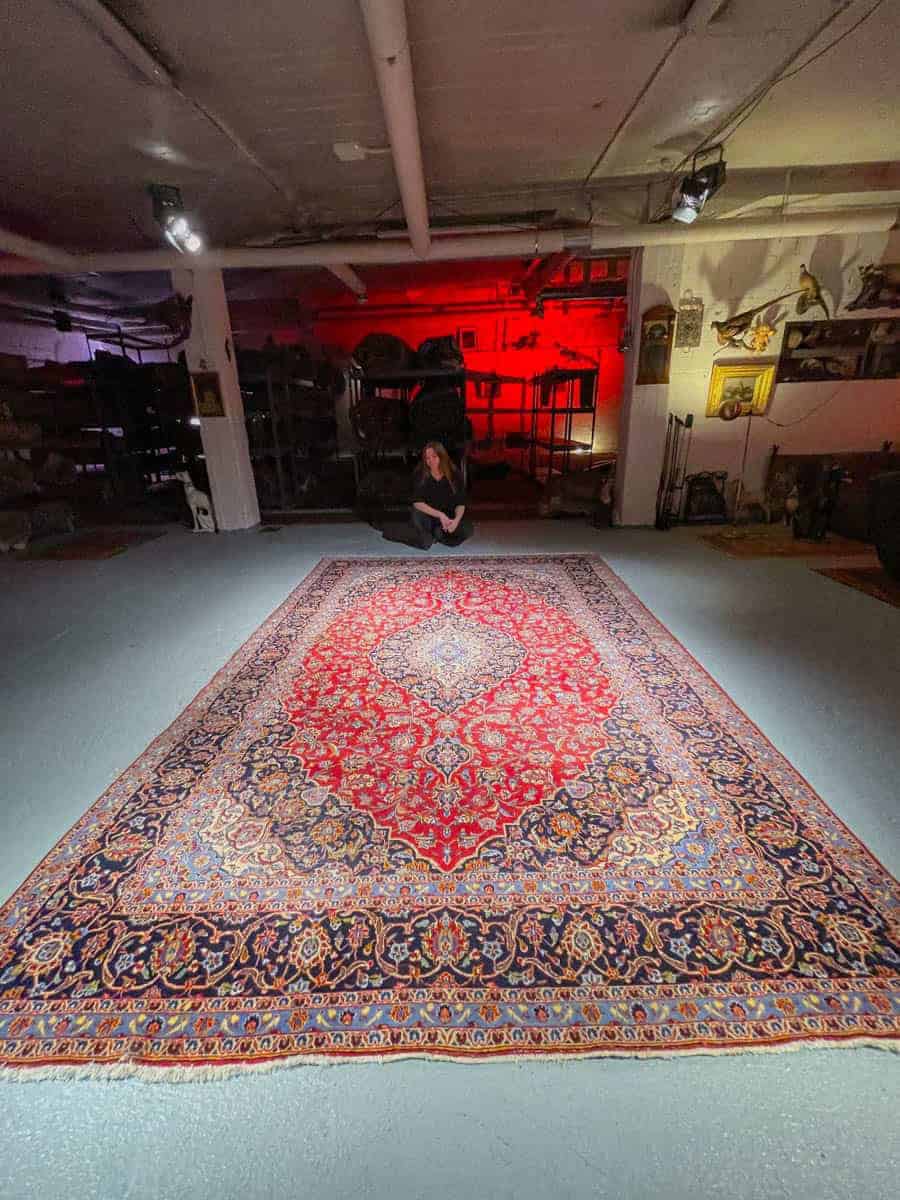 Tämä matto sijaitsee Galleriallamme osoitteessa Kankurinkatu 7, Punavuori – jos haluat tulla katsomaan sitä paikan päälle, sovithan näytön viestitse tai puhelimitse.