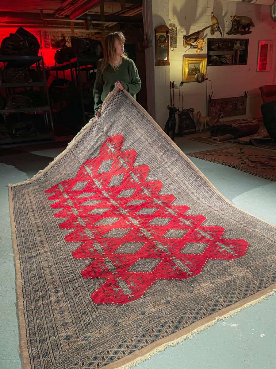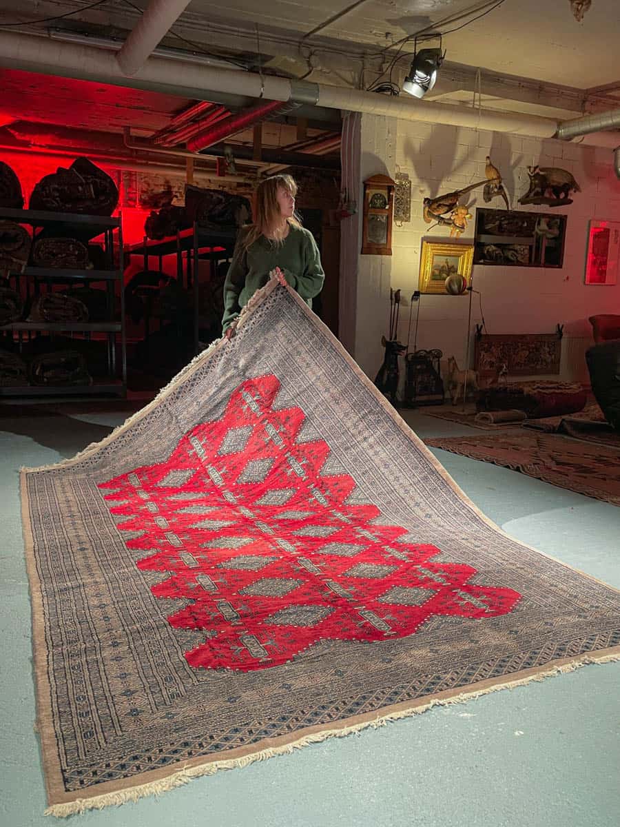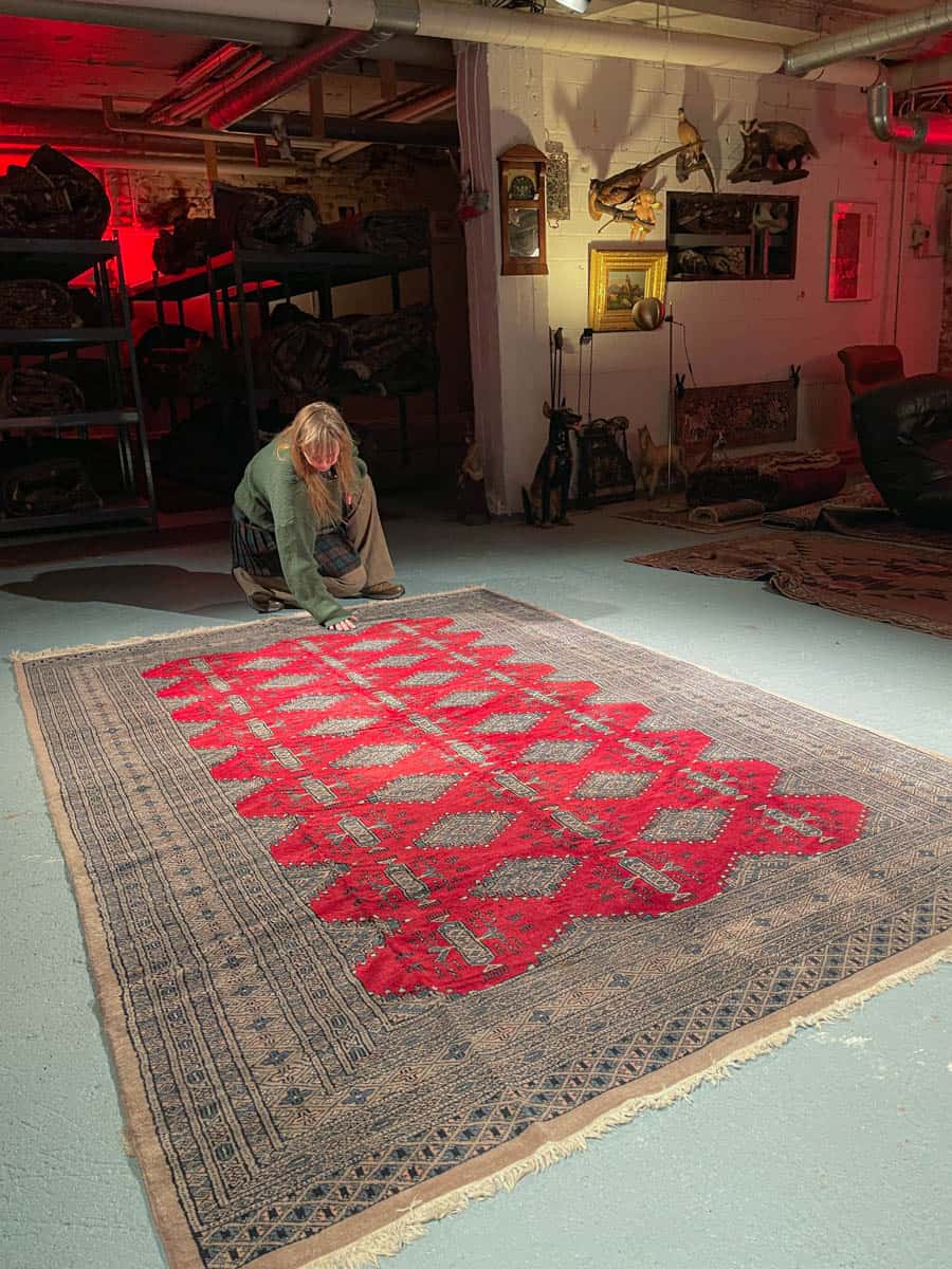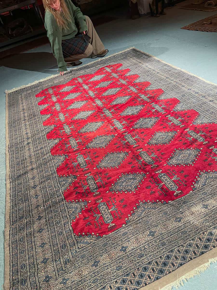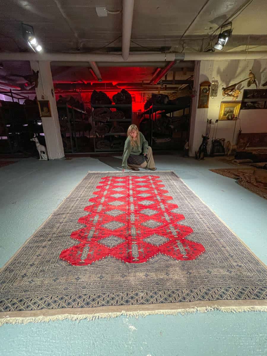 Tämä matto sijaitsee Galleriallamme osoitteessa Kankurinkatu 7, Punavuori – jos haluat tulla katsomaan sitä paikan päälle, sovithan näytön viestitse tai puhelimitse.