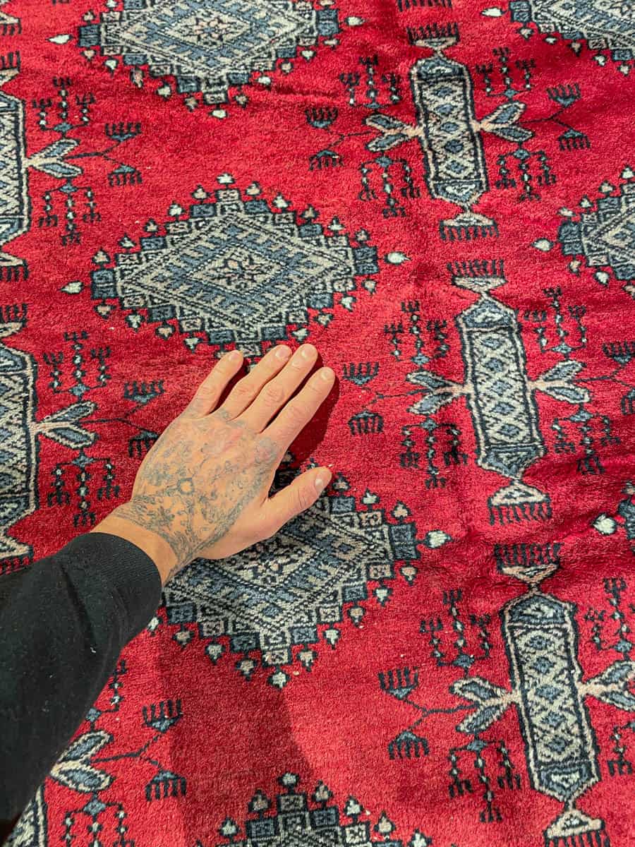 Perinteinen harmoninen Buhara kauniin punaisella värityksellä ja klassisella kuvioinnilla. Käsinsolmittu villasta.