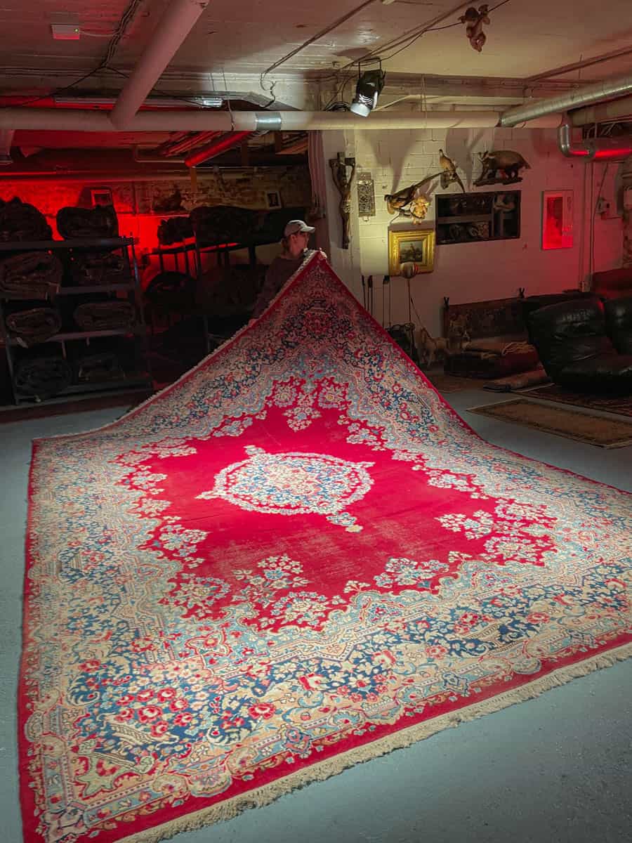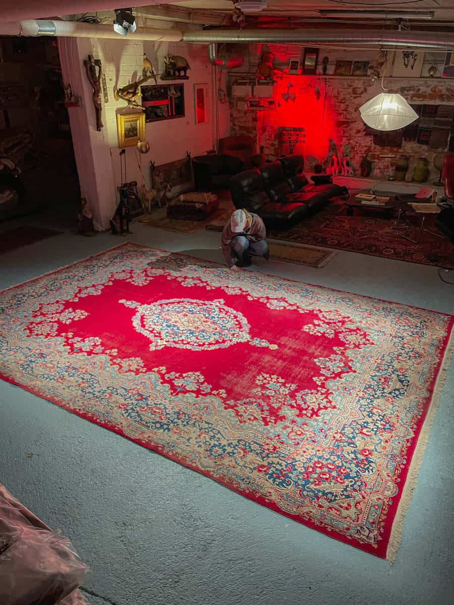 Tämä matto sijaitsee Galleriallamme osoitteessa Kankurinkatu 7, Punavuori – jos haluat tulla katsomaan sitä paikan päälle, sovithan näytön viestitse tai puhelimitse.