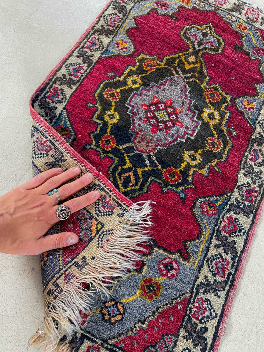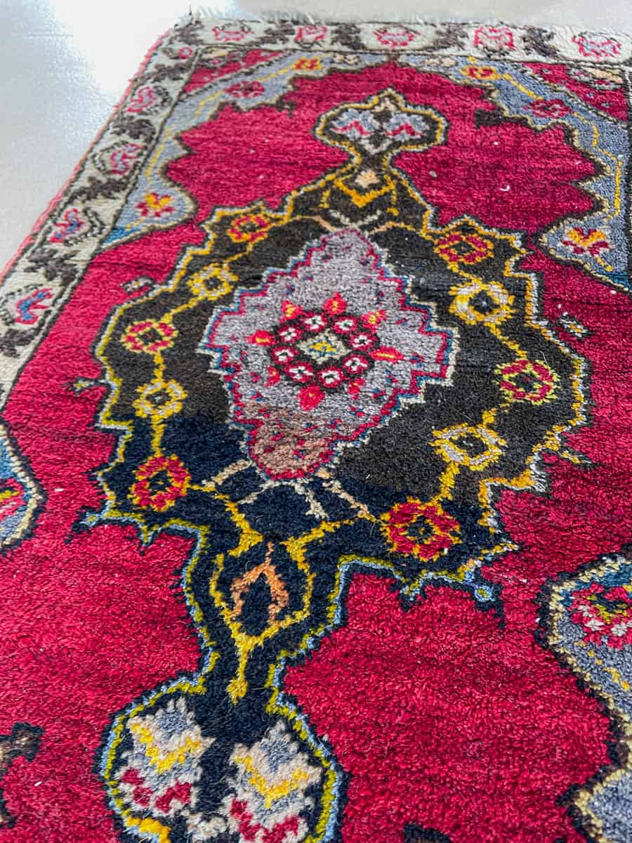 Eloisa Tabriz perinteisellä kuvioinnilla ja voimakkailla väreillä. Käsinsolmittu villasta.