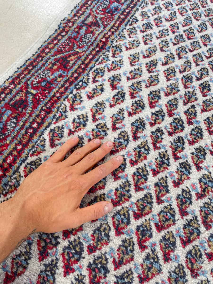Erikoinen hapsuton pieni vaalea Sarouk Mir. Käsinsolmittu villasta.