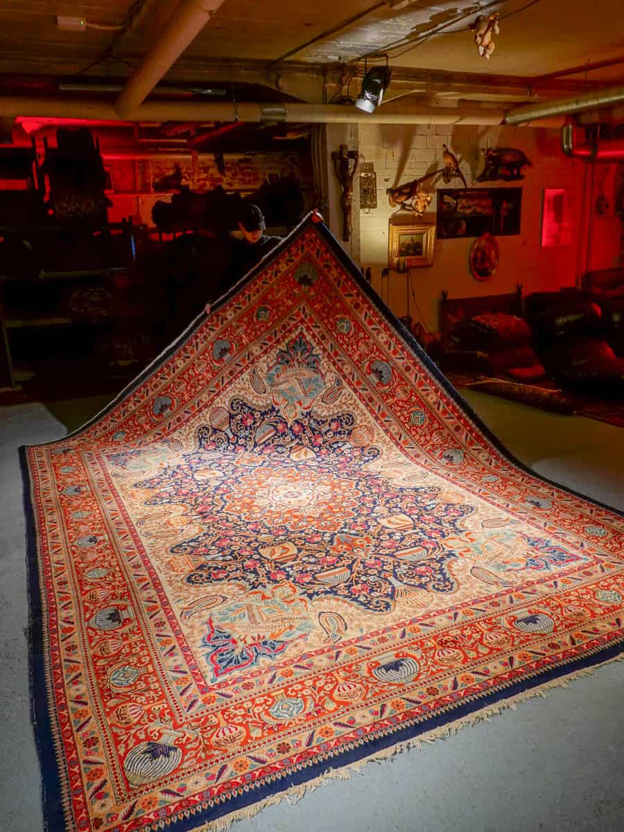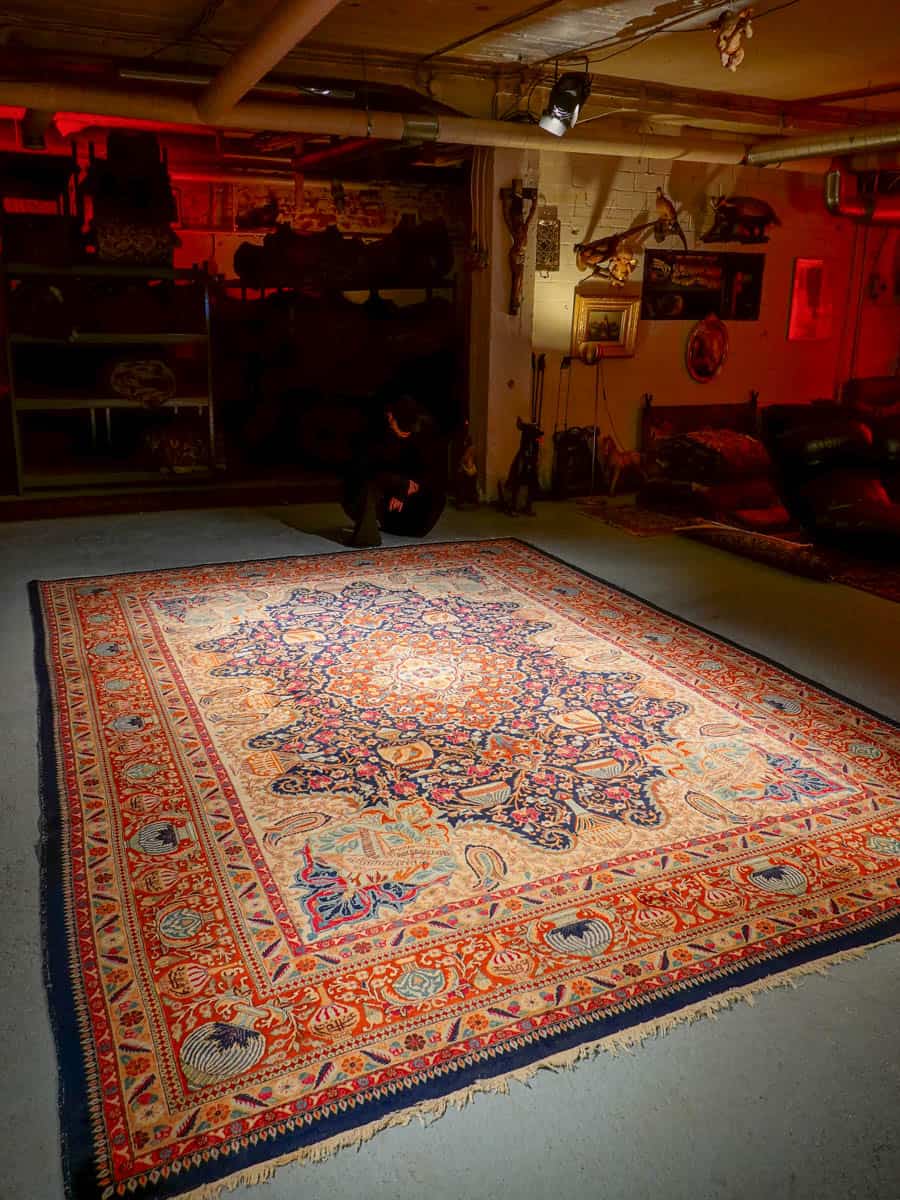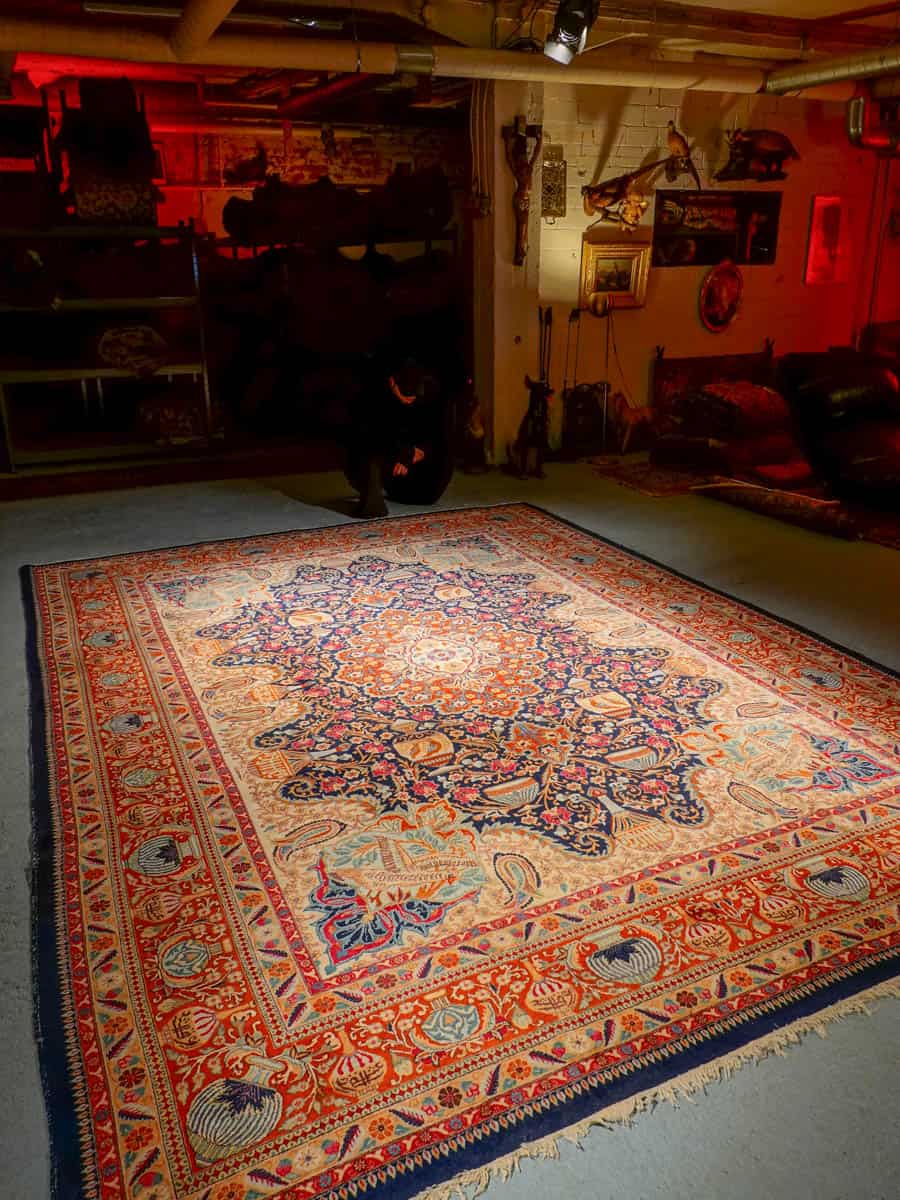 Tämä matto sijaitsee Galleriallamme osoitteessa Kankurinkatu 7, Punavuori – jos haluat tulla katsomaan sitä paikan päälle, sovithan näytön viestitse tai puhelimitse.