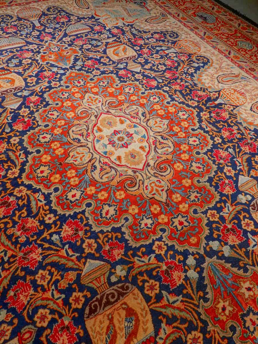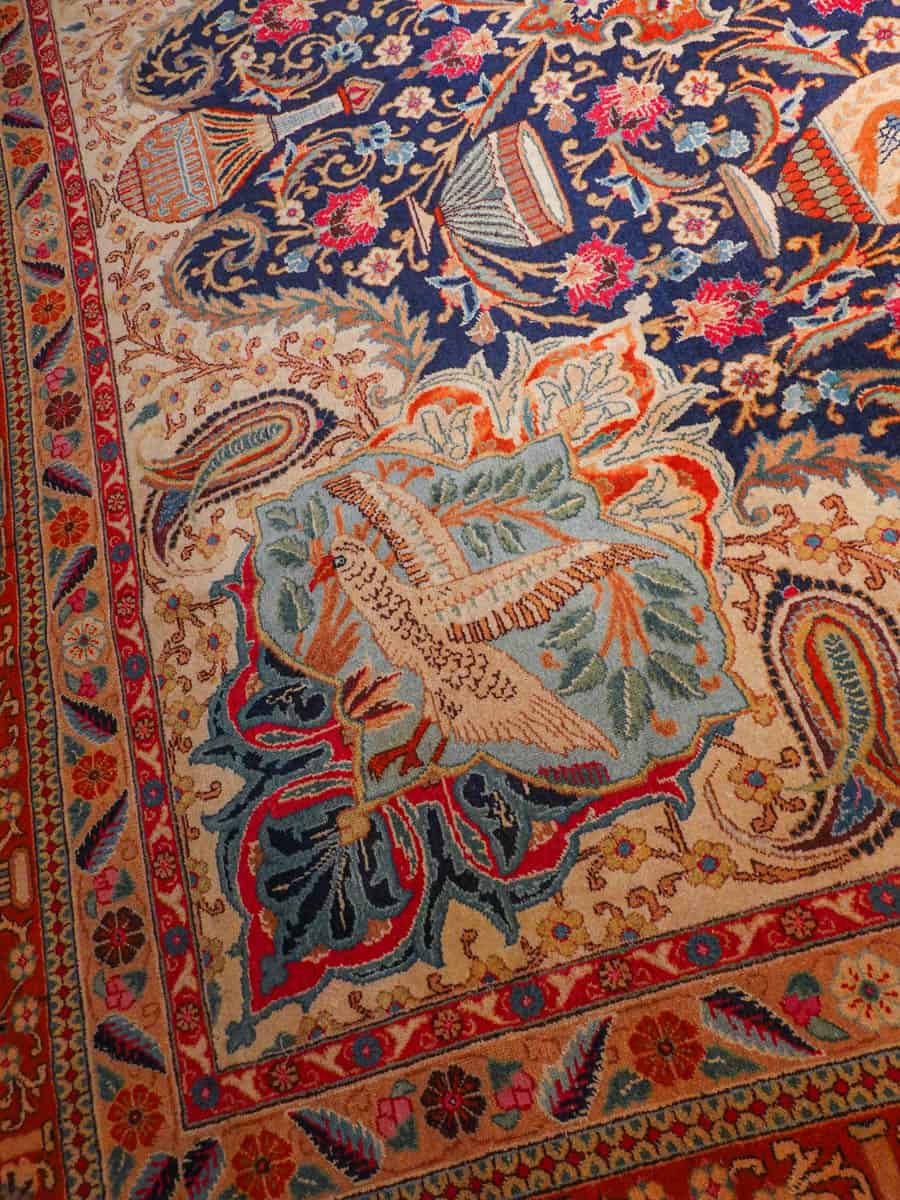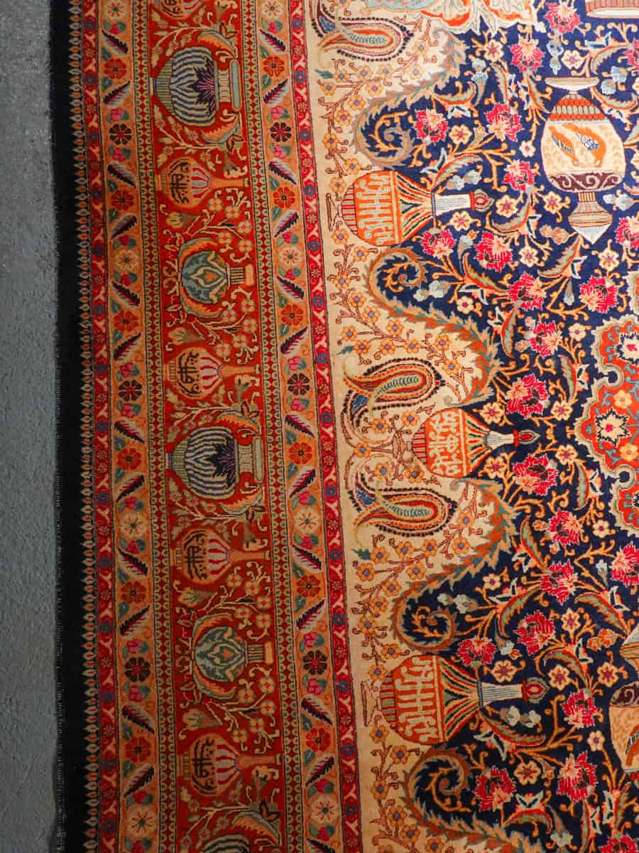 Juhlallisen koristeellinen Kashmar häikäisevän yksityiskohtaisella kuvioinnilla ja yltäkylläisillä väreillä. Kuvioinnista löytyy uskomattoman elegantille Kashmar-tyylille ominaisesti rönsyilevä kokonaisuus vaaseja, eläimiä ja kasvillisuutta.
