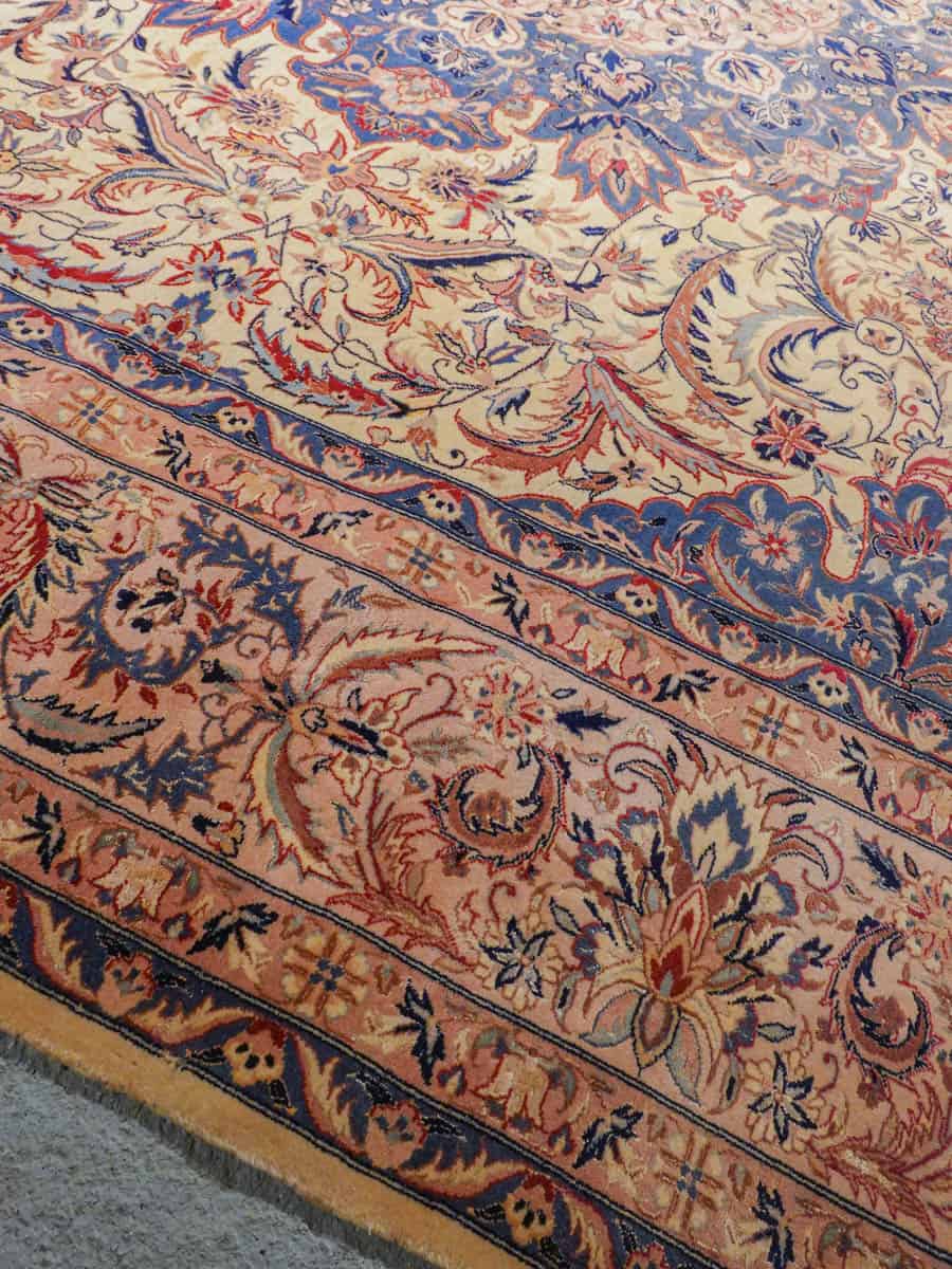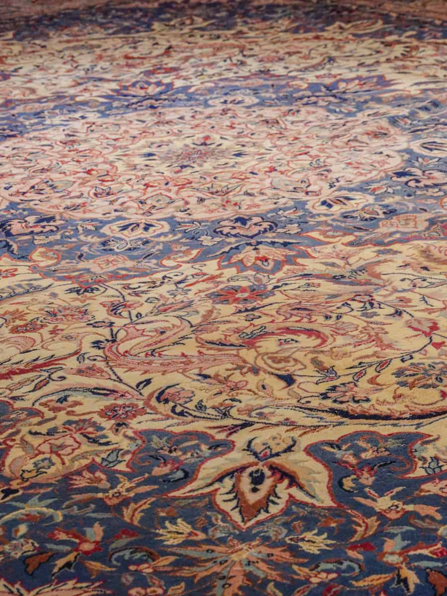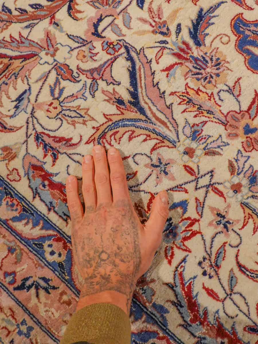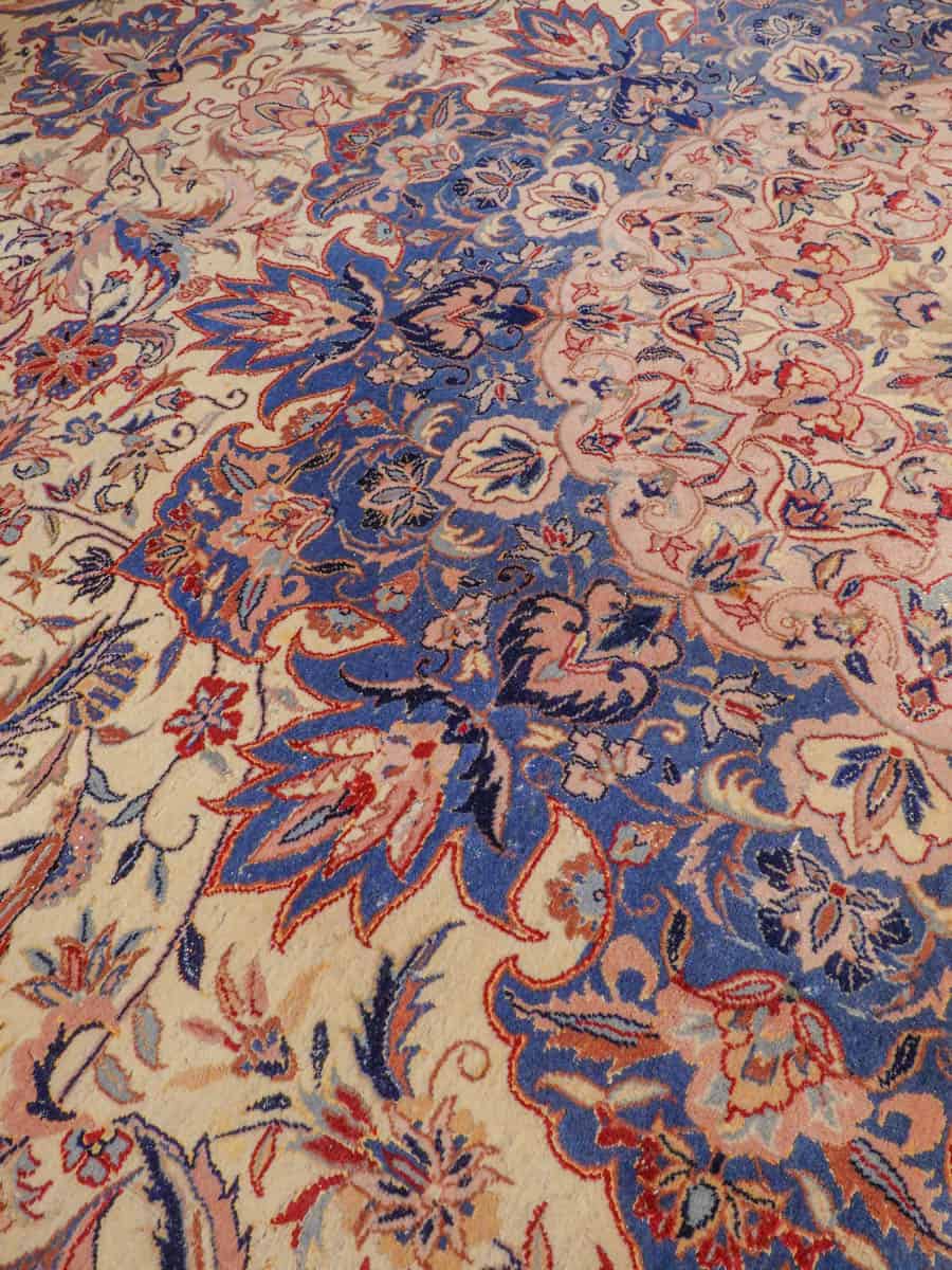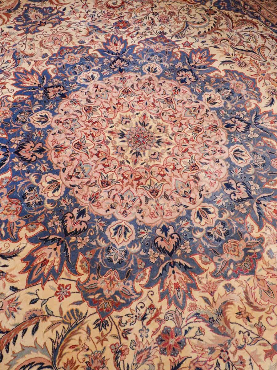 Upea Ifsahan, jossa yltäkylläisen orgaaninen kuvointi, jonka keskellä häikäisevä keskimedaljonki, sekä herkkiä silkkiyksityiskohtia. Rauhoittavan vaalea pohjaväri, joka korostaa kauniisti sinisiä kuvioita.