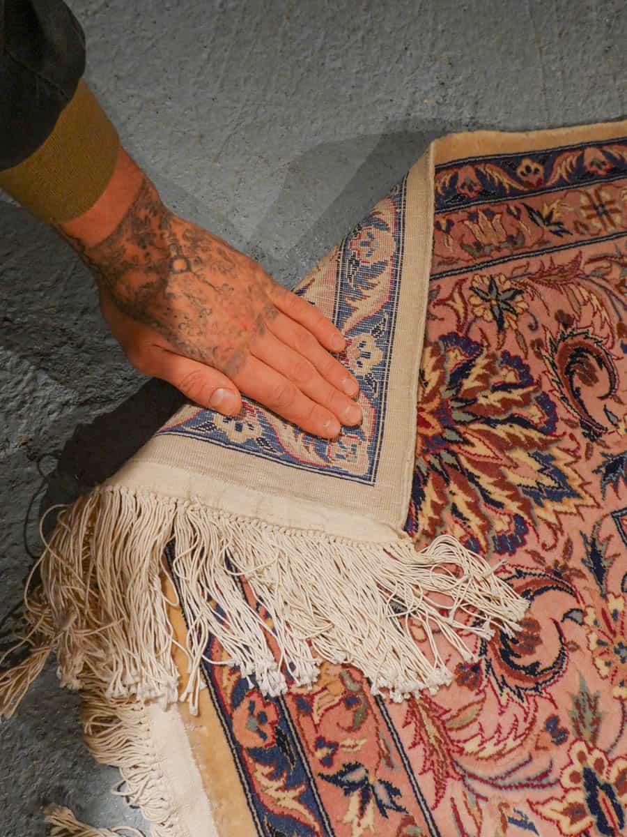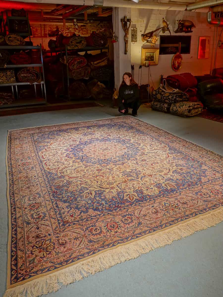 Tämä matto sijaitsee Galleriallamme osoitteessa Kankurinkatu 7, Punavuori – jos haluat tulla katsomaan sitä paikan päälle, sovithan näytön viestitse tai puhelimitse.