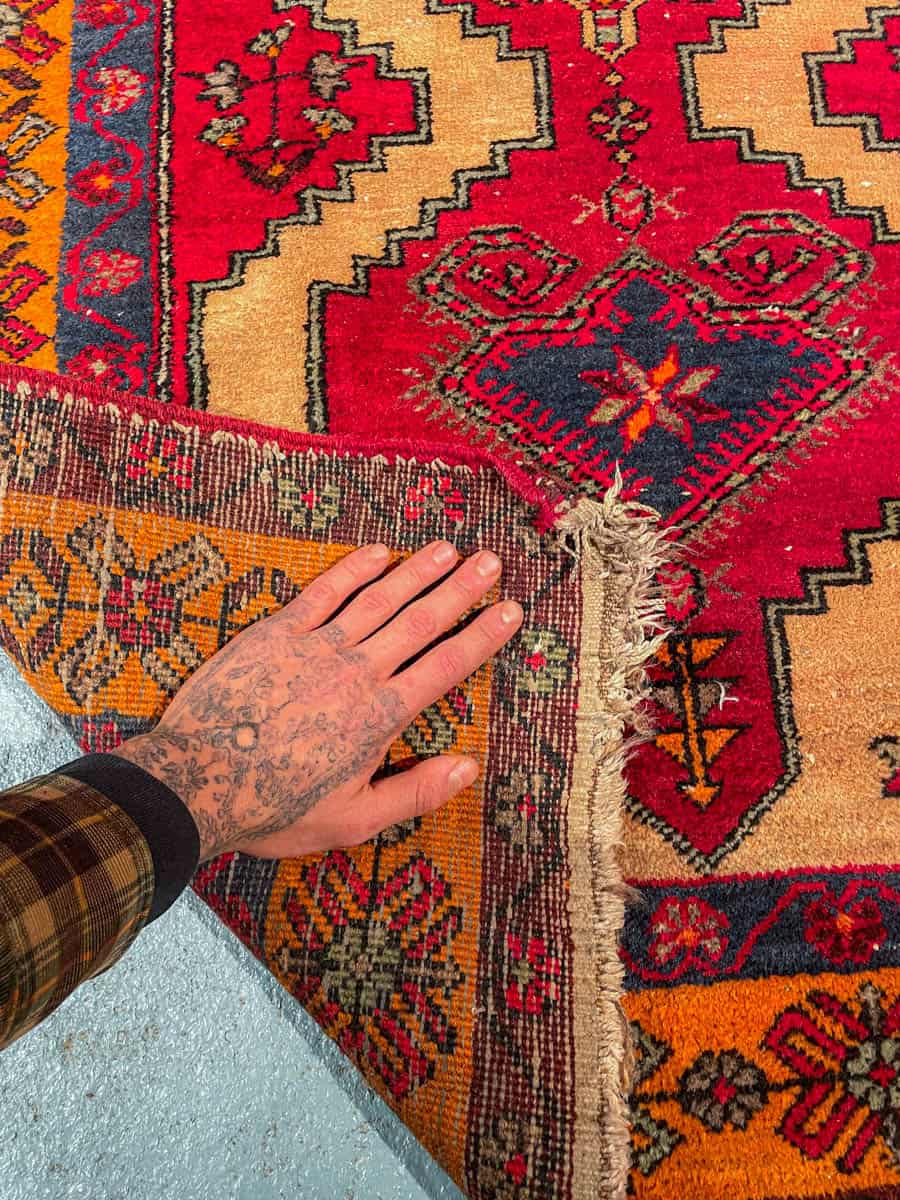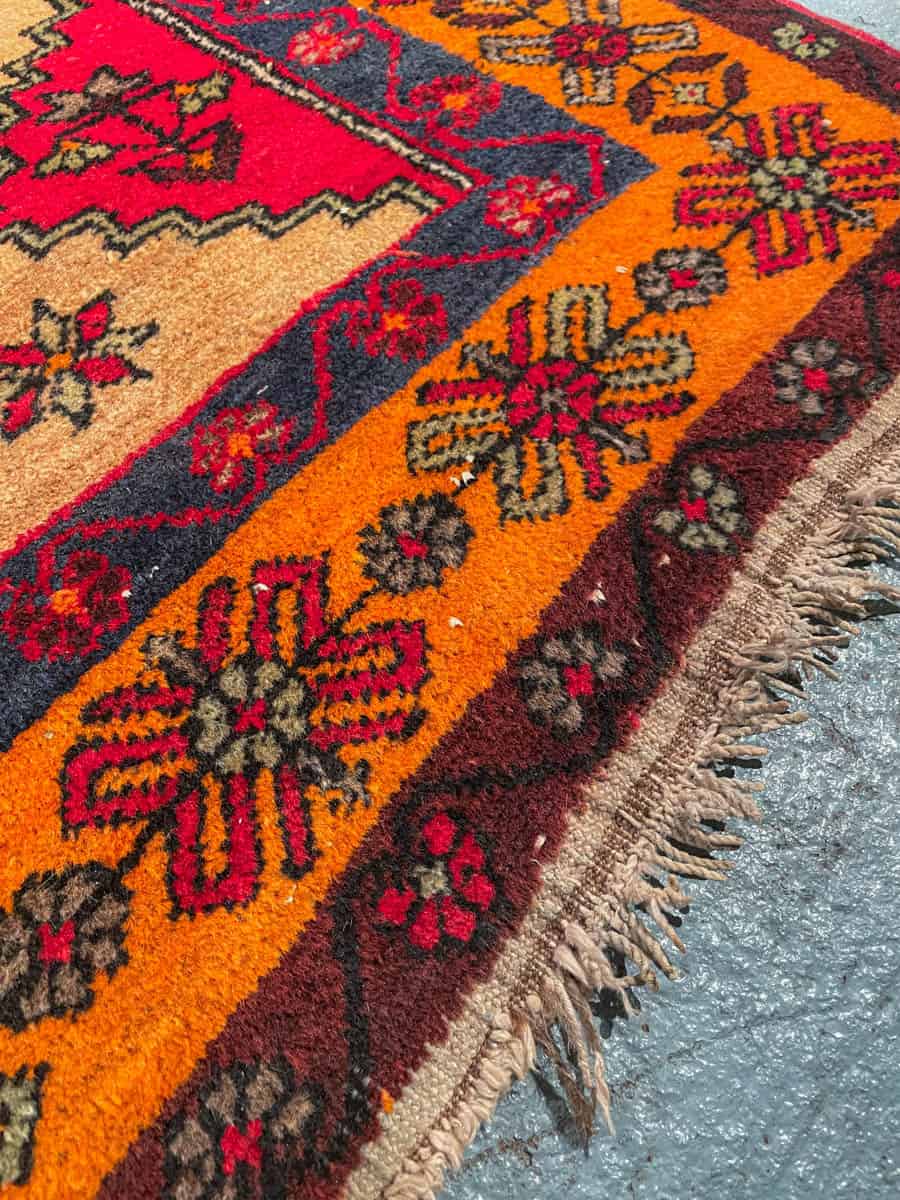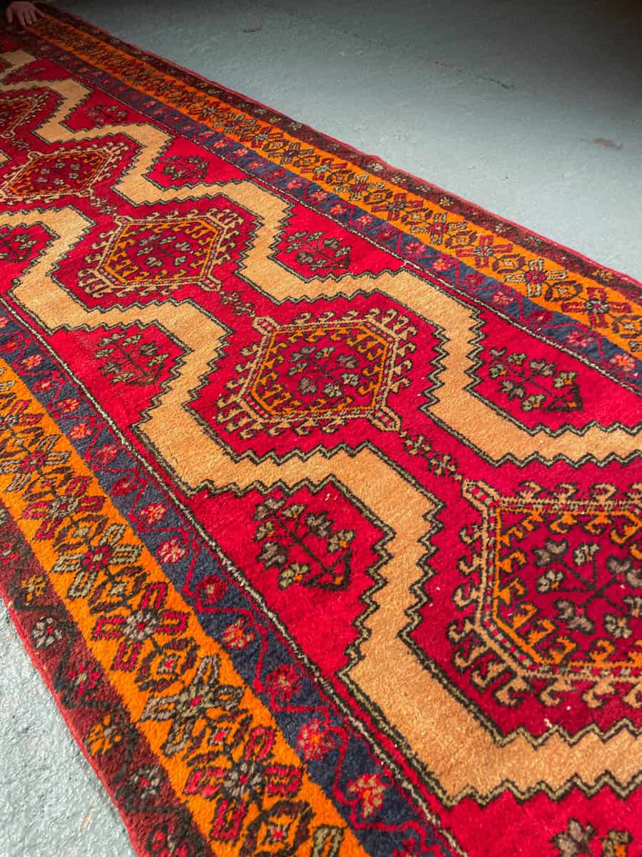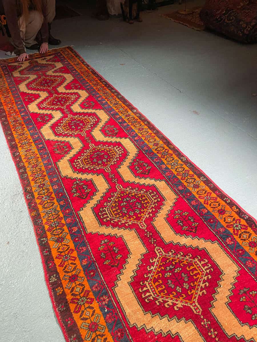 Tämä matto sijaitsee Galleriallamme osoitteessa Kankurinkatu 7, Punavuori – jos haluat tulla katsomaan sitä paikan päälle, sovithan näytön viestitse tai puhelimitse.