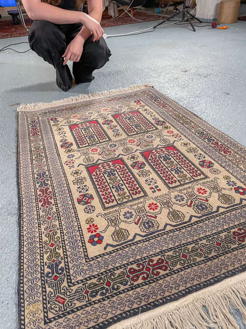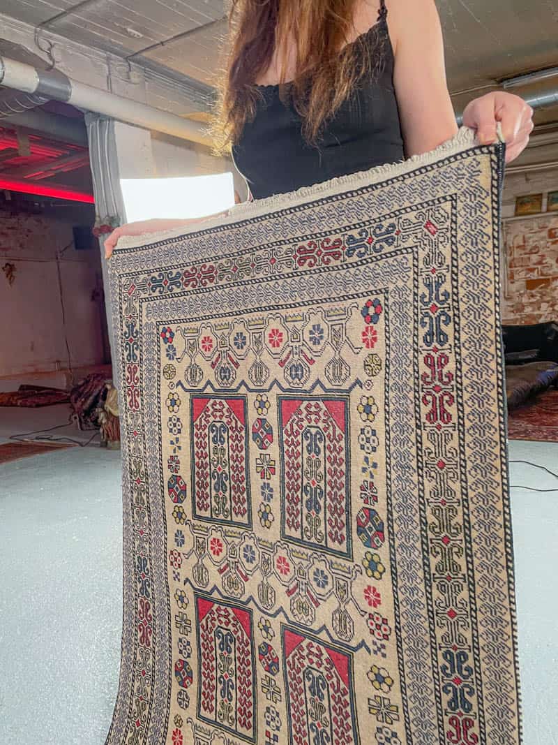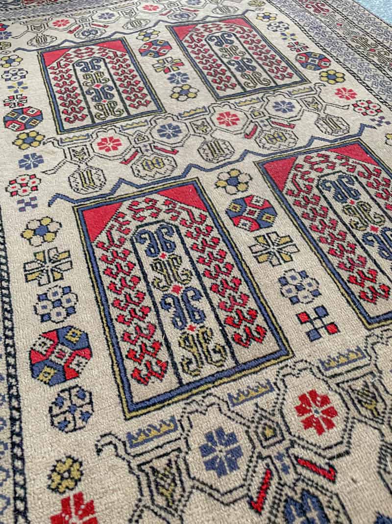 Harmoninen vaalea Shirvan kodikkailla yksityiskohdilla. Käsinsolmittu villasta.