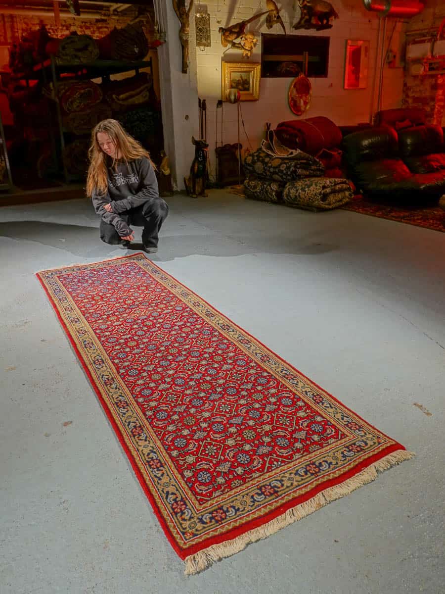 Tämä matto sijaitsee Galleriallamme osoitteessa Kankurinkatu 7, Punavuori – jos haluat tulla katsomaan sitä paikan päälle, sovithan näytön viestitse tai puhelimitse.
