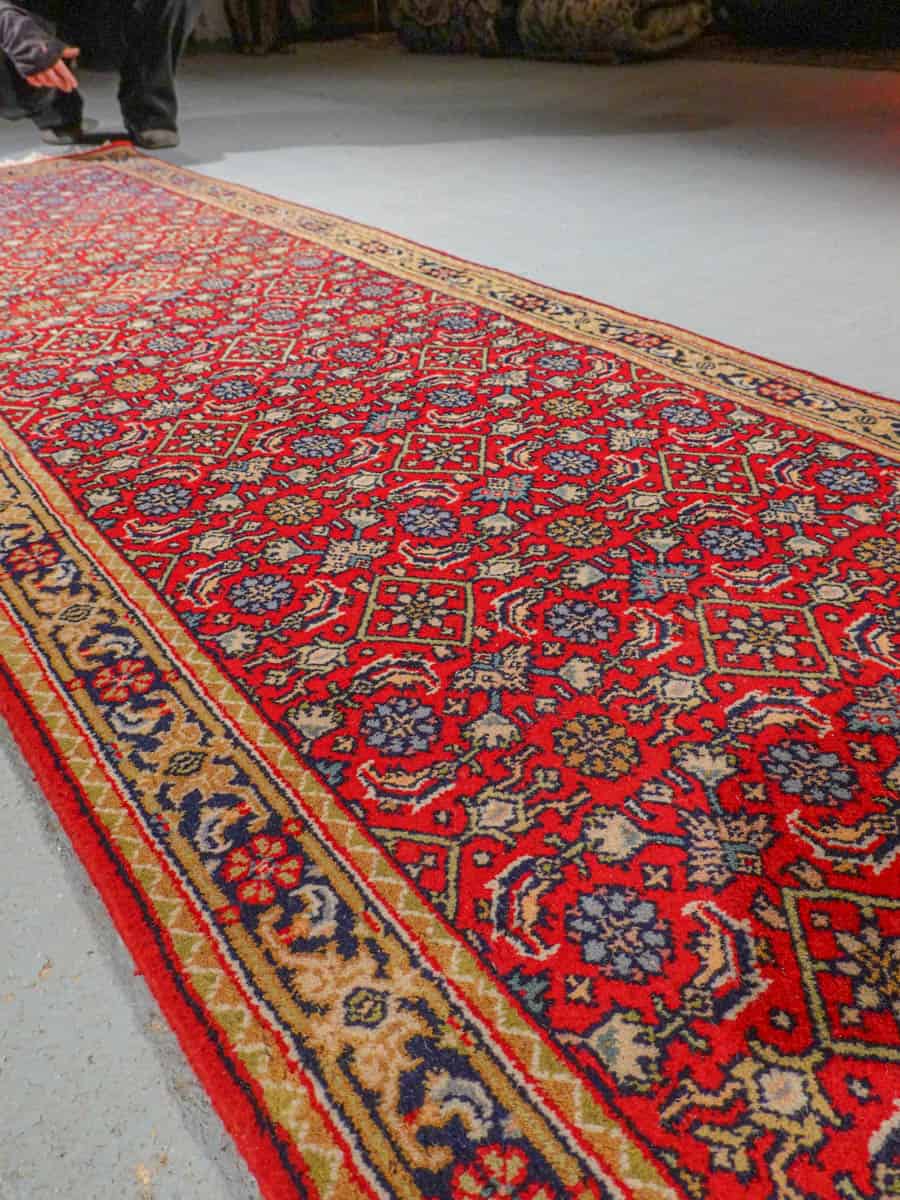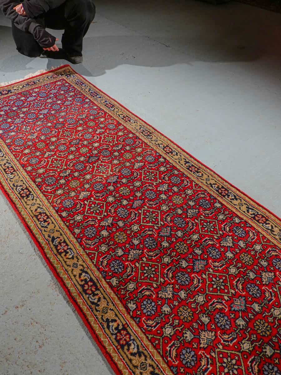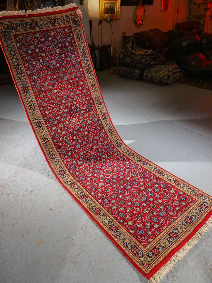 Perinteikkään punainen Tabriz-käytävämatto ihastuttavan harmonisella kuvioinnilla. Käsinsolmittu villasta.