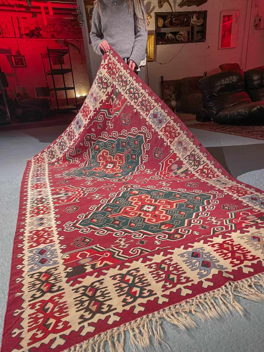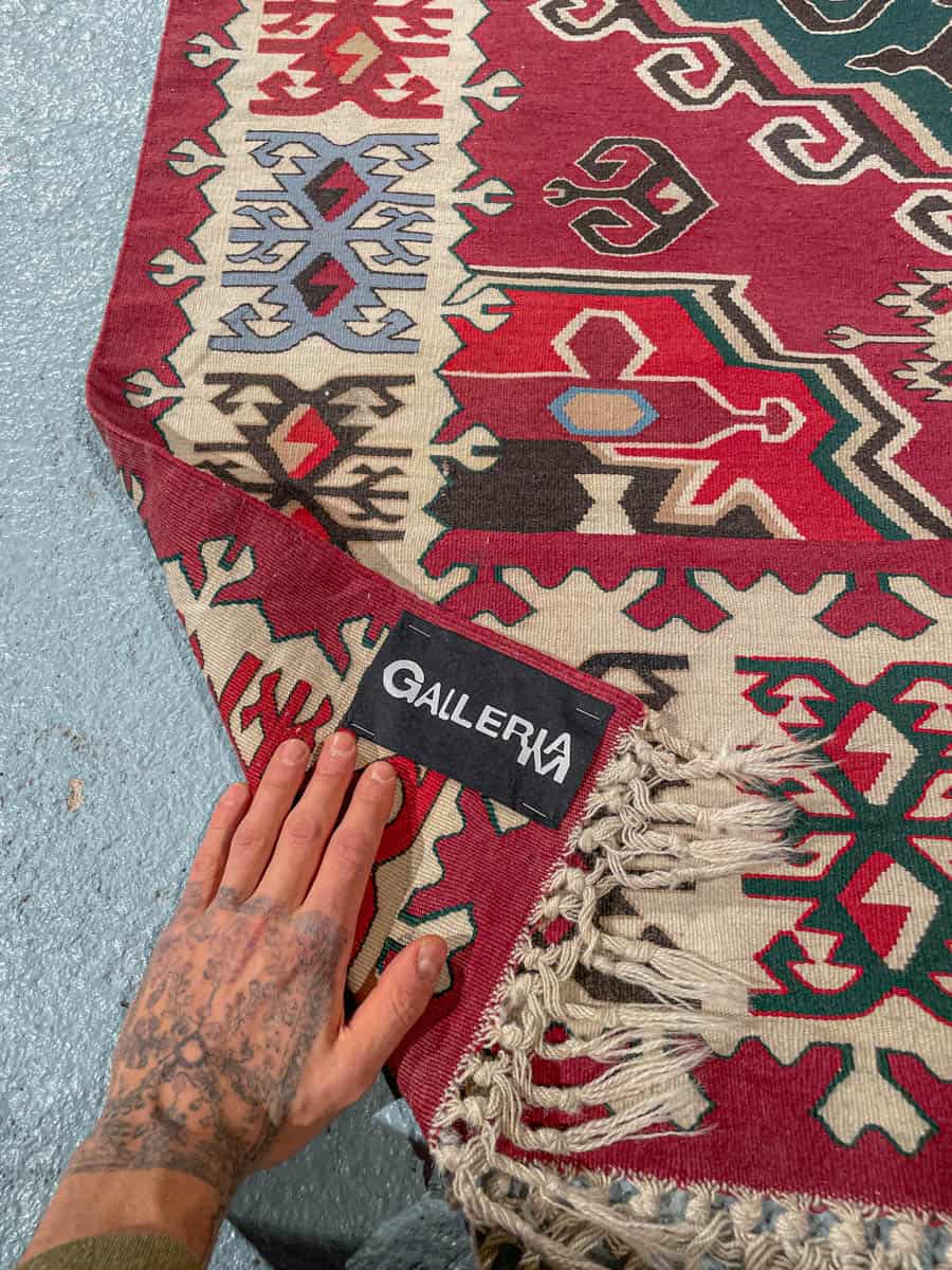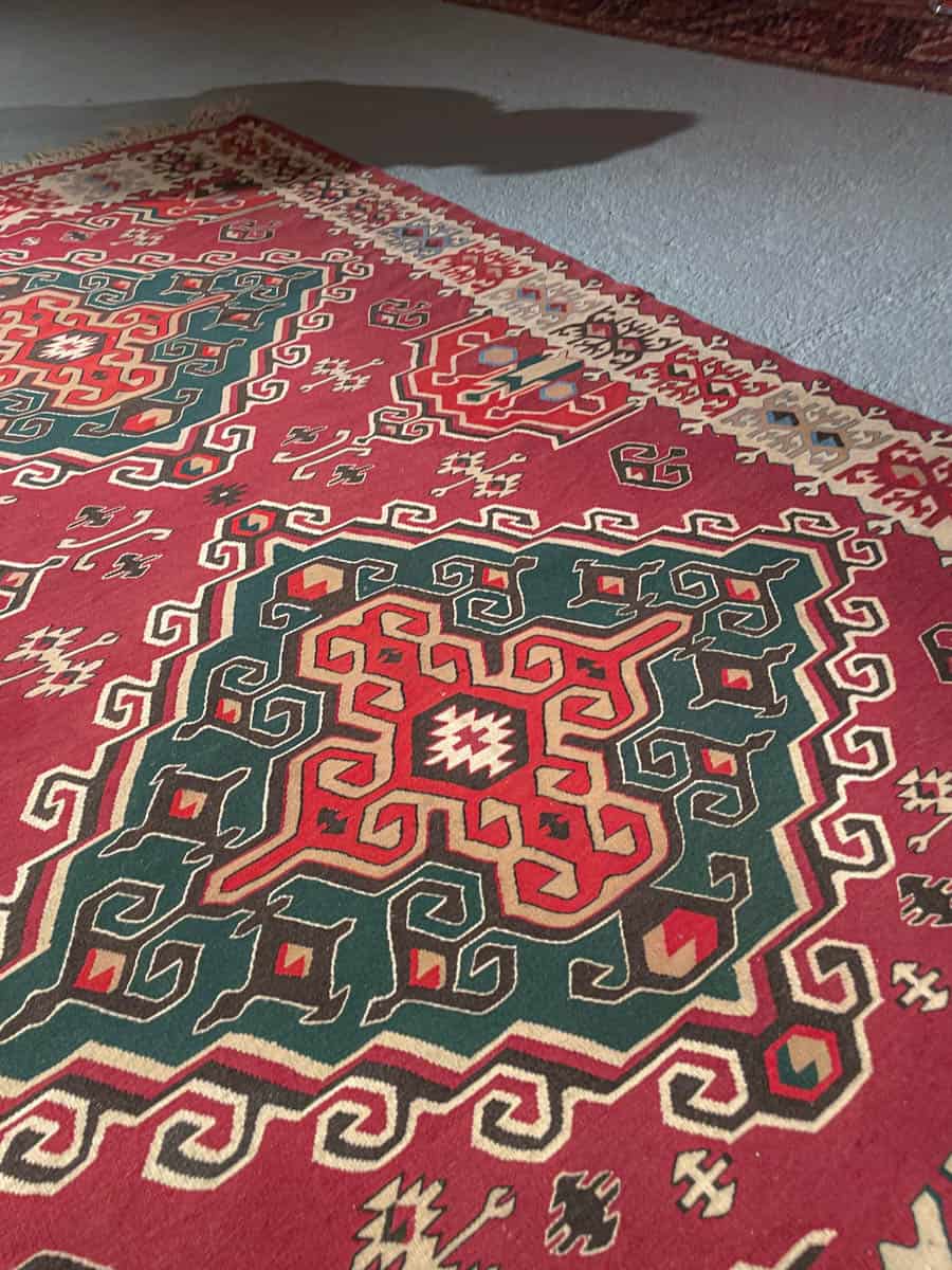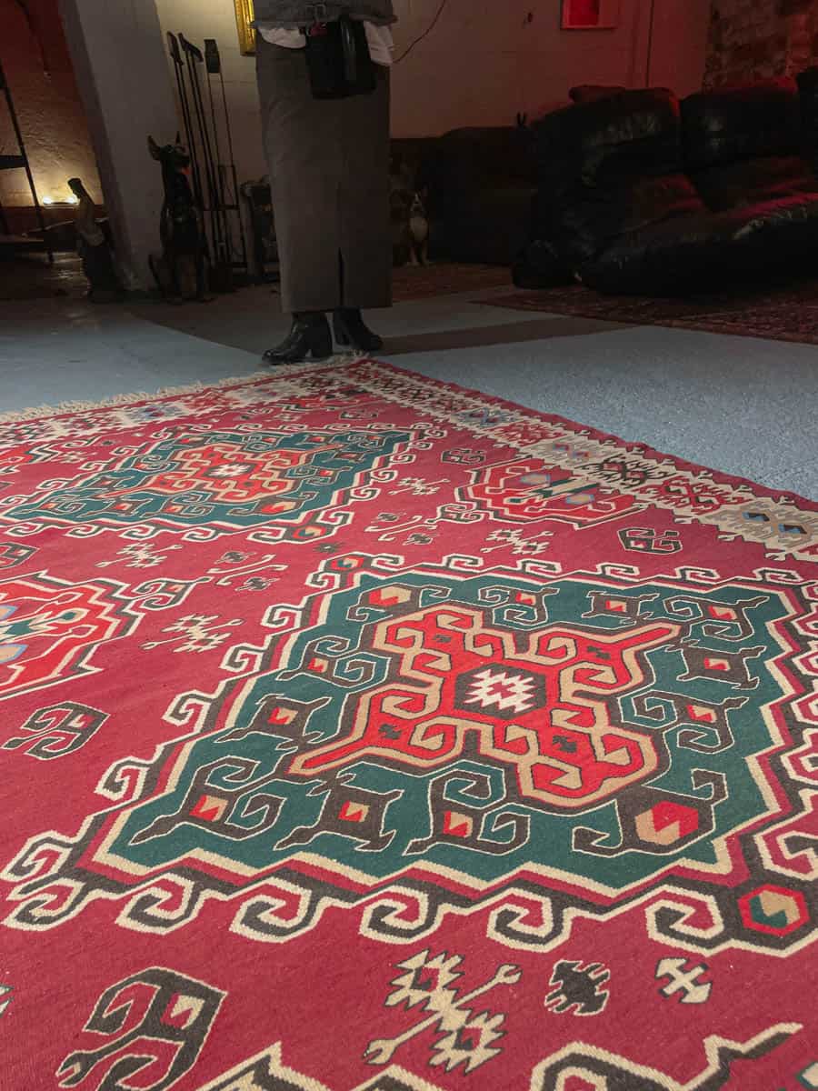 Tämä matto sijaitsee Galleriallamme osoitteessa Kankurinkatu 7, Punavuori – jos haluat tulla katsomaan sitä paikan päälle, sovithan näytön viestitse tai puhelimitse.