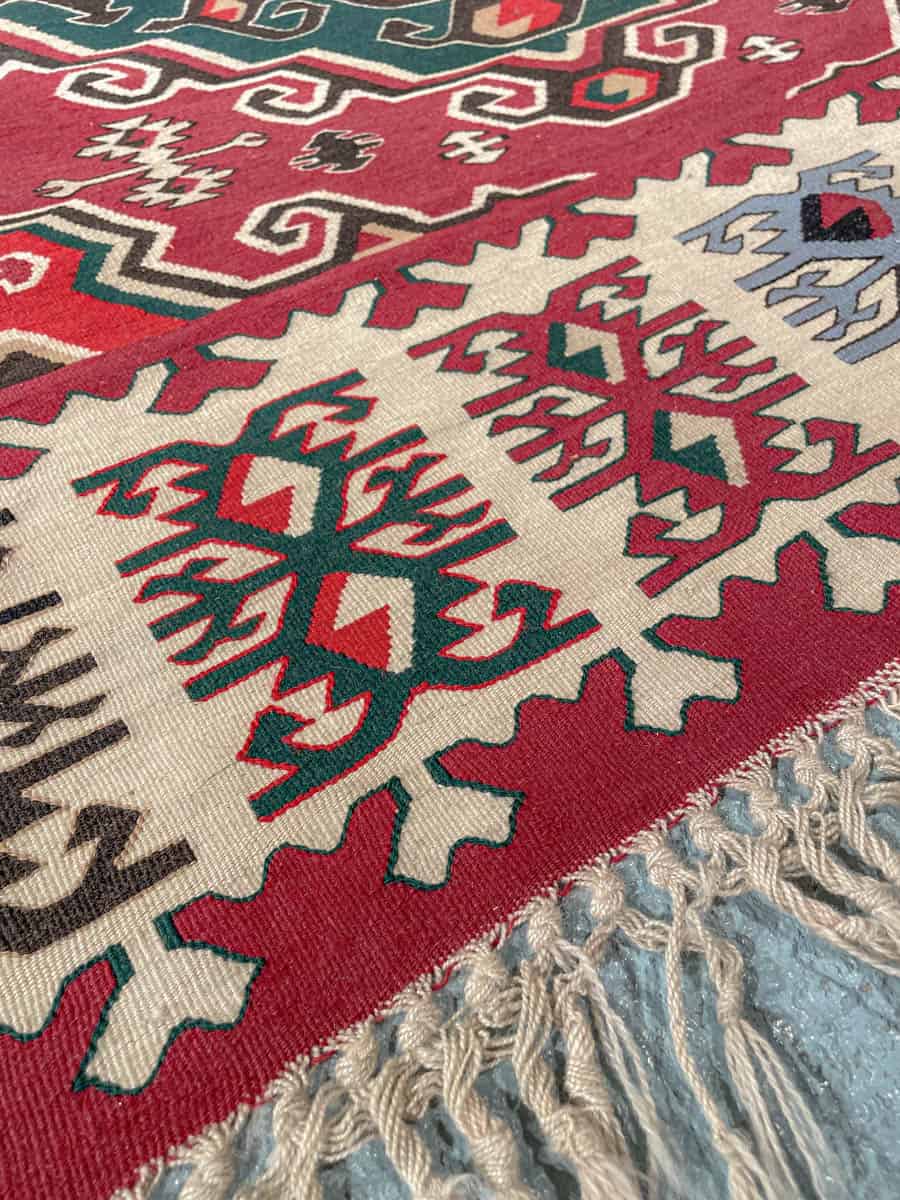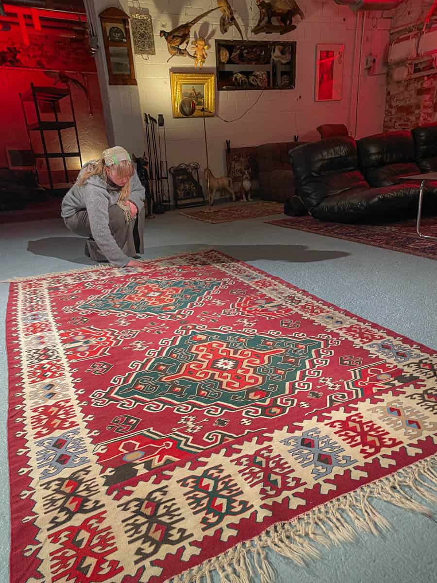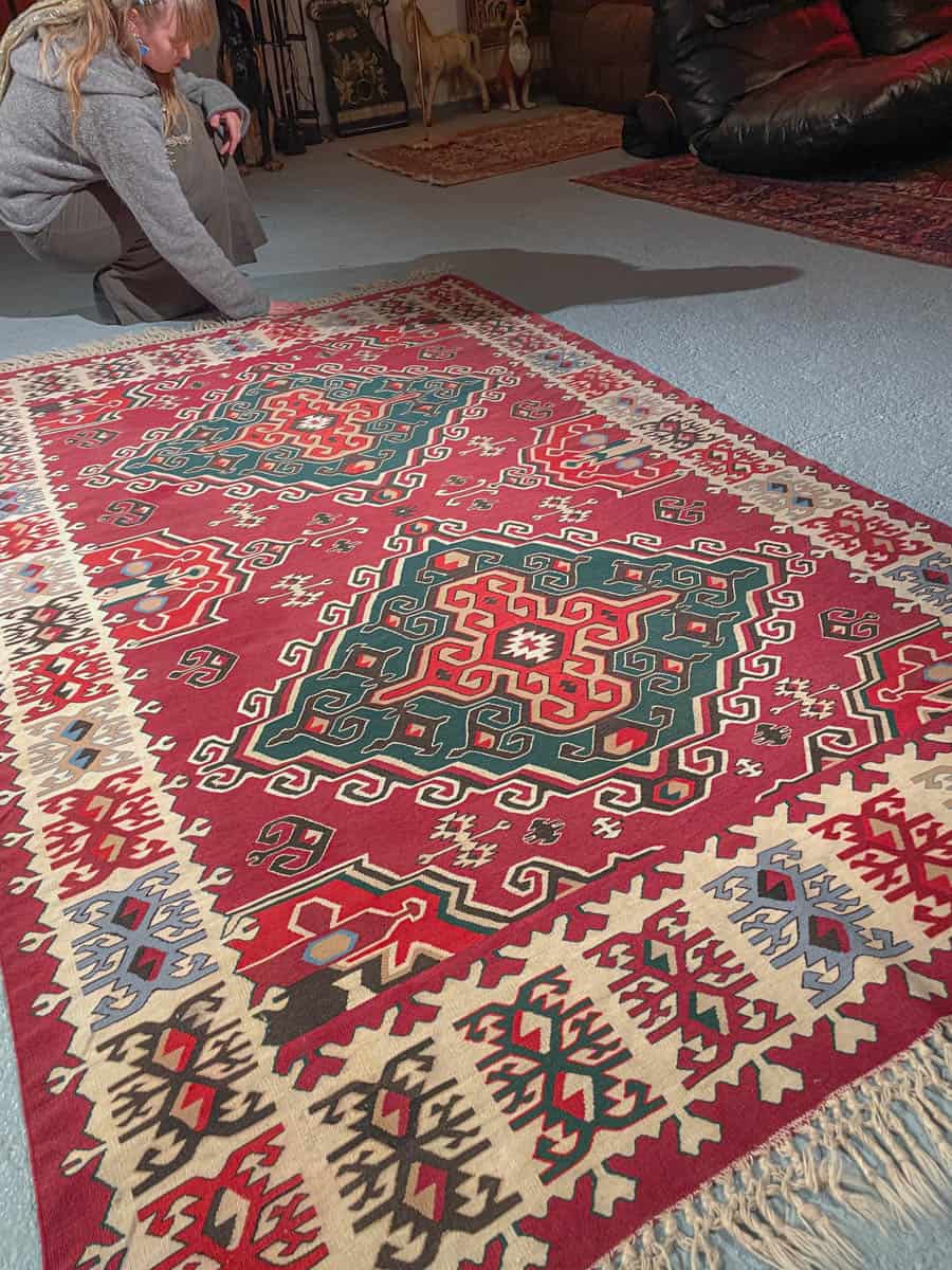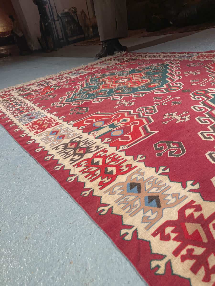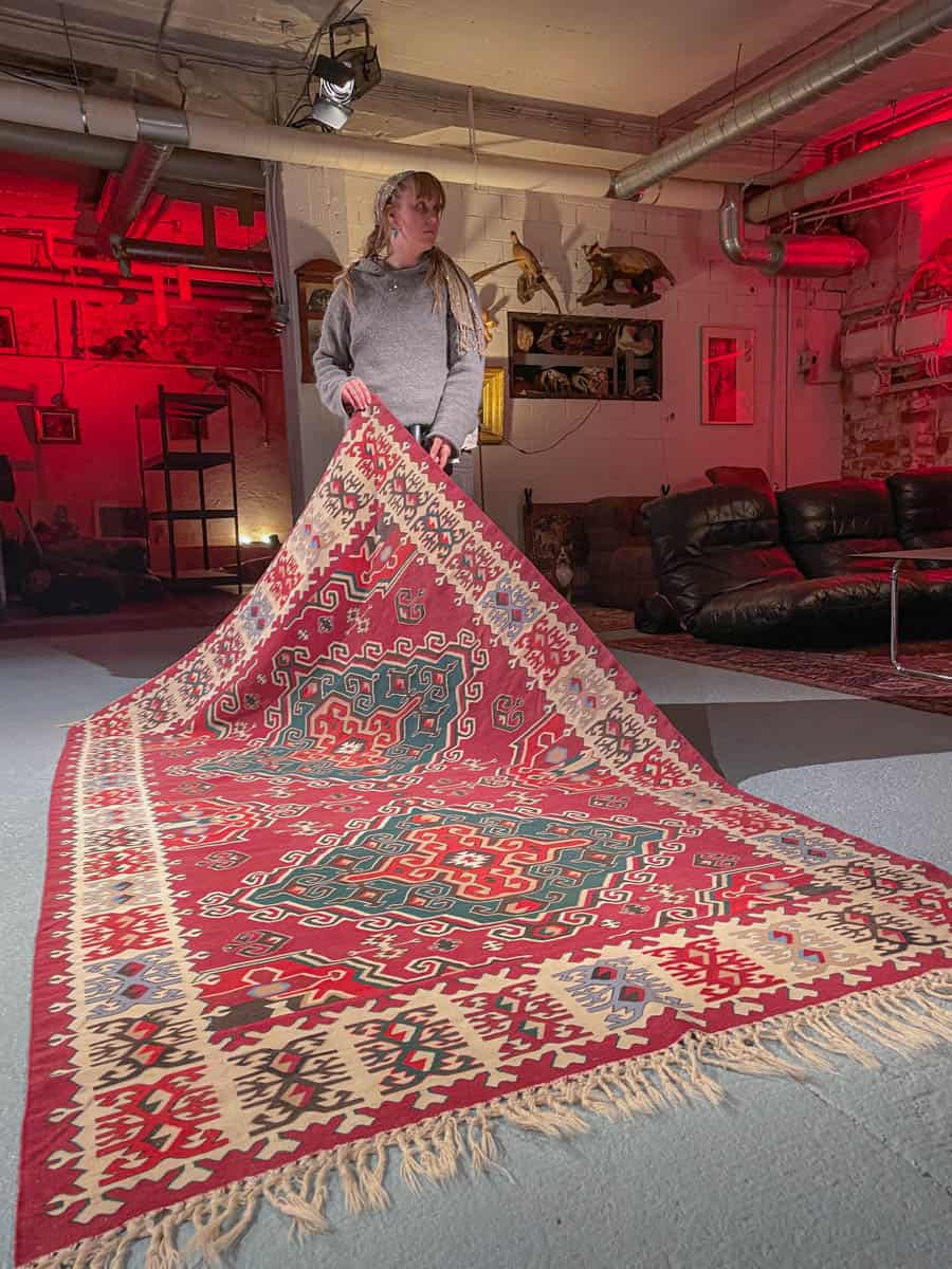 Tämä matto sijaitsee Galleriallamme osoitteessa Kankurinkatu 7, Punavuori – jos haluat tulla katsomaan sitä paikan päälle, sovithan näytön viestitse tai puhelimitse.