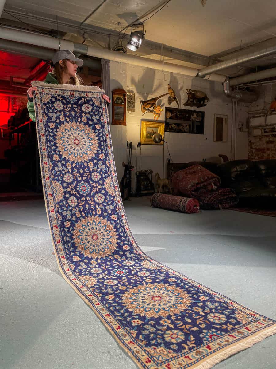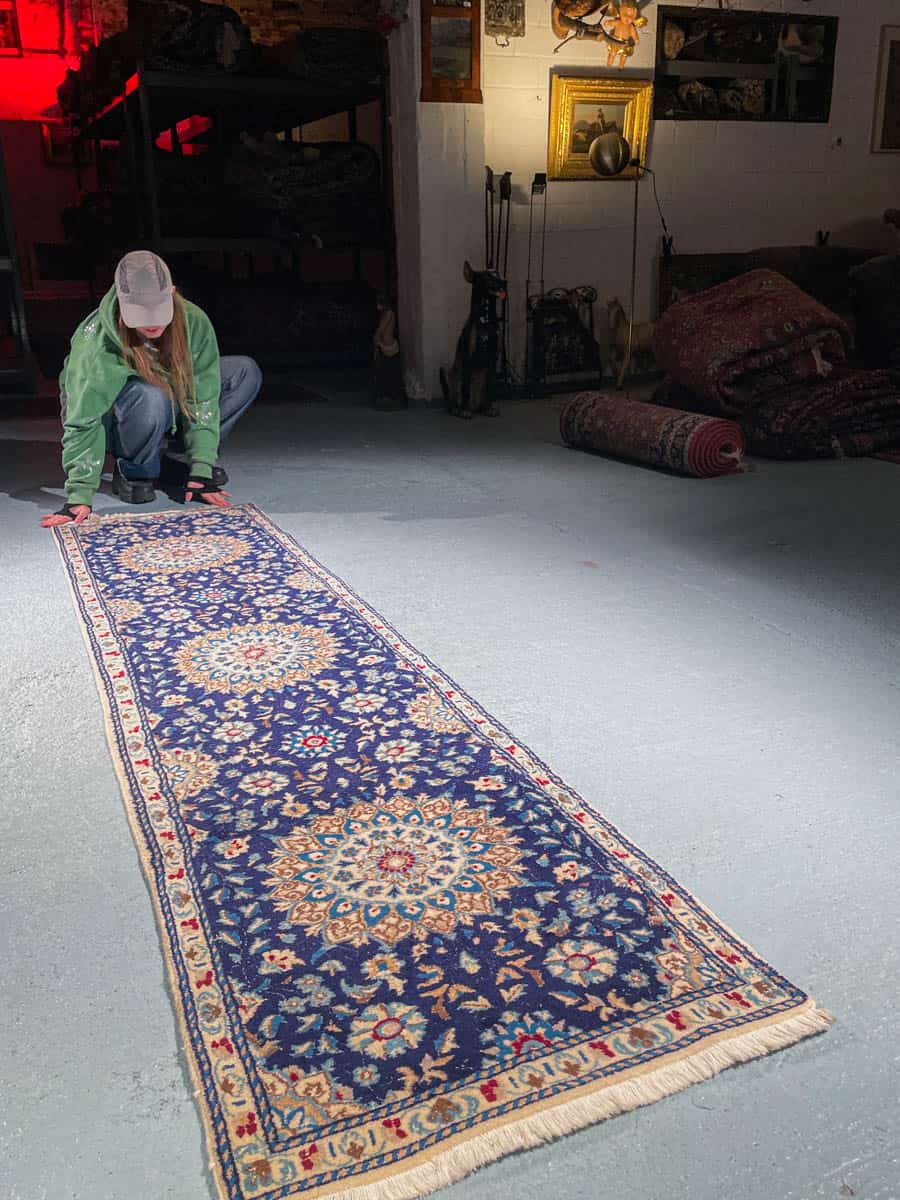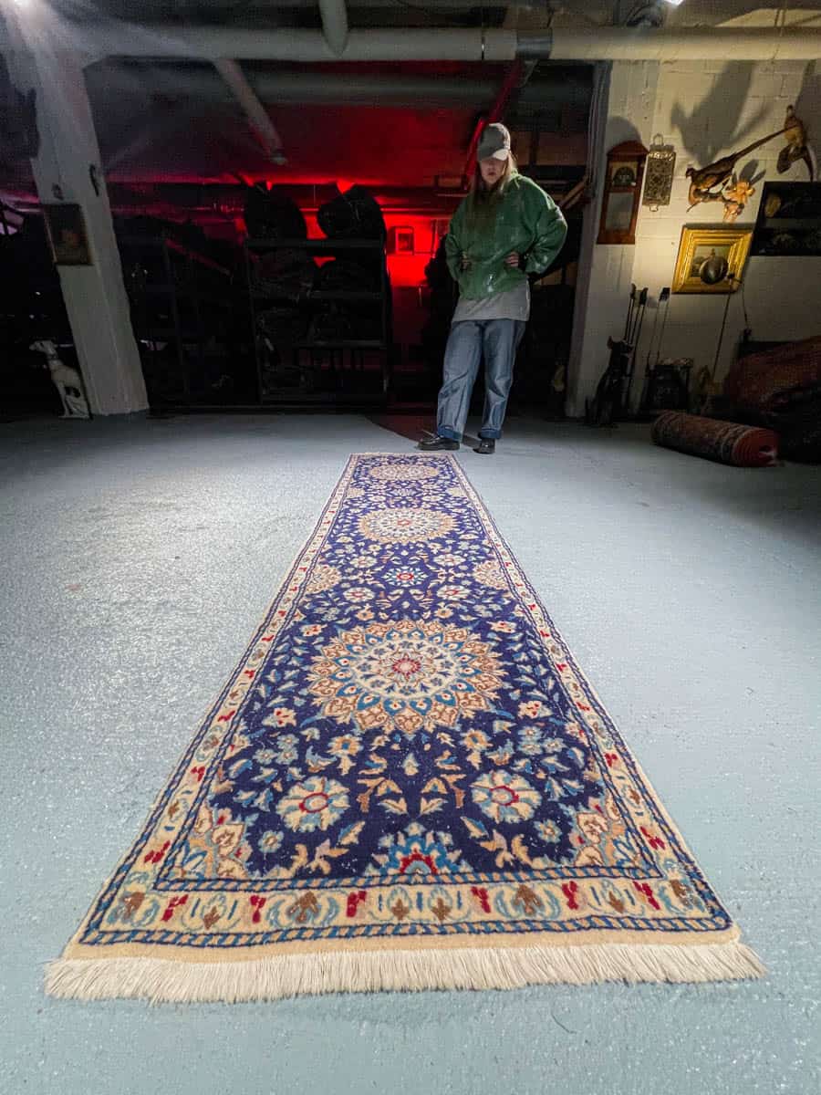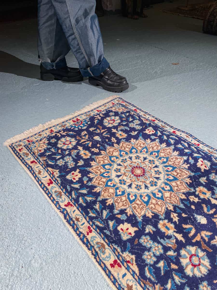 Tämä matto sijaitsee Galleriallamme osoitteessa Kankurinkatu 7, Punavuori – jos haluat tulla katsomaan sitä paikan päälle, sovithan näytön viestitse tai puhelimitse.