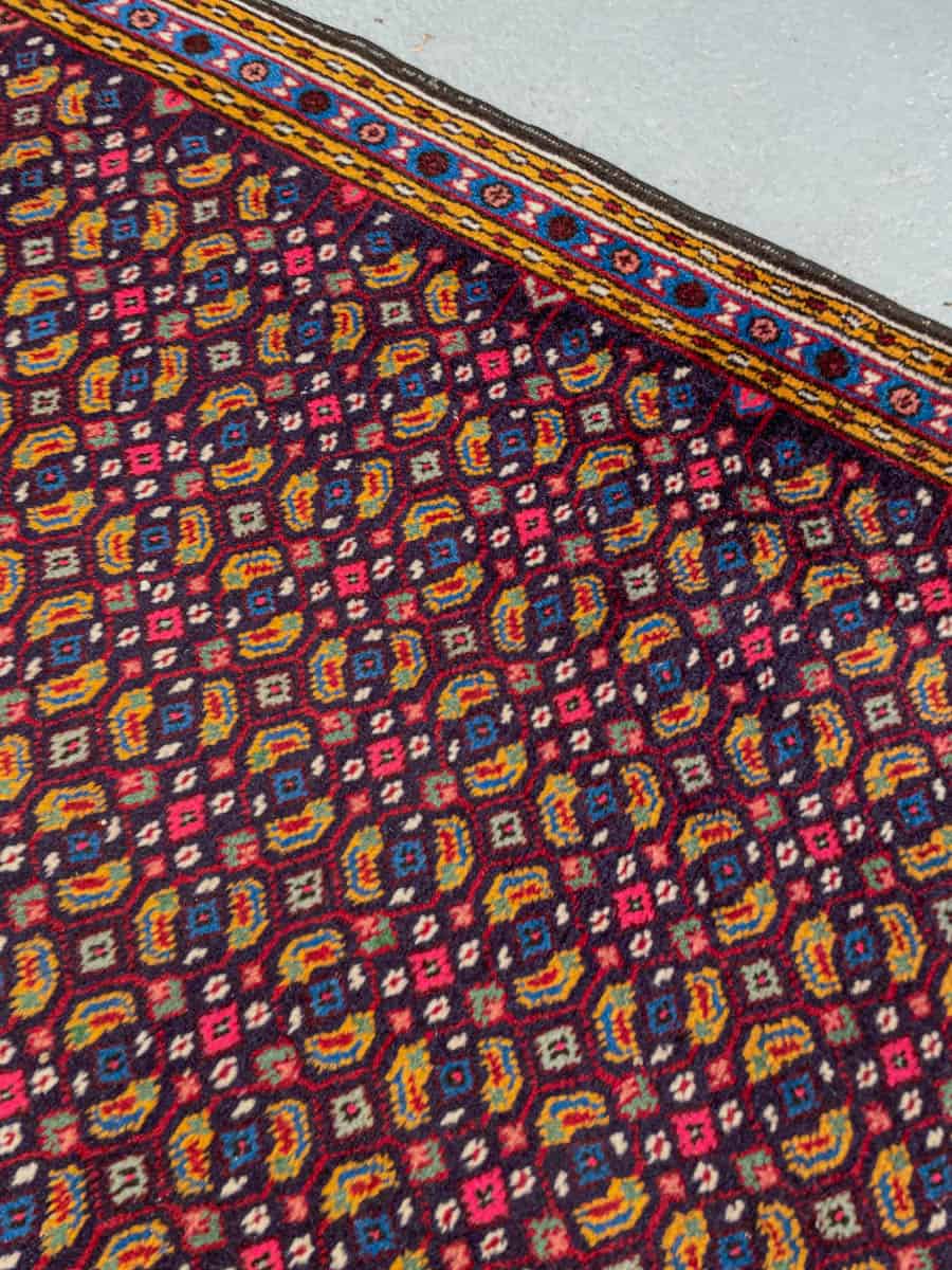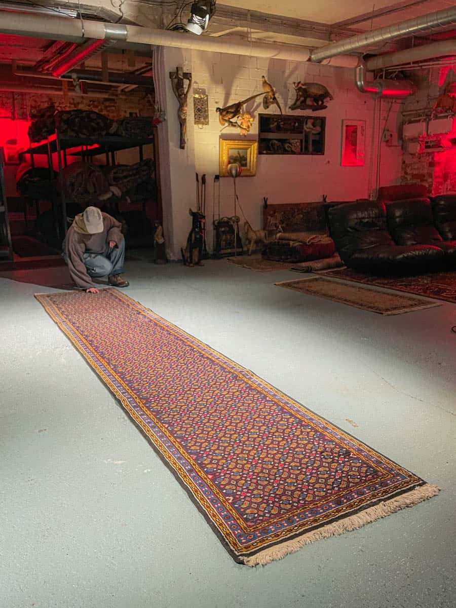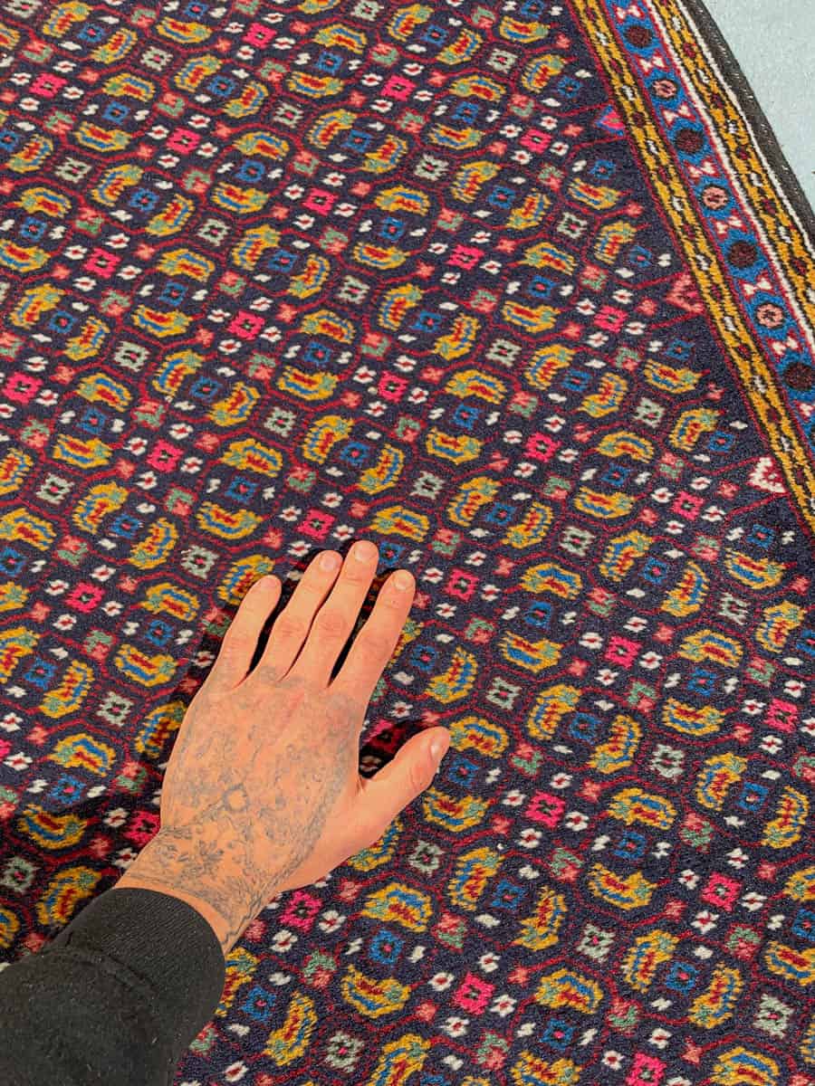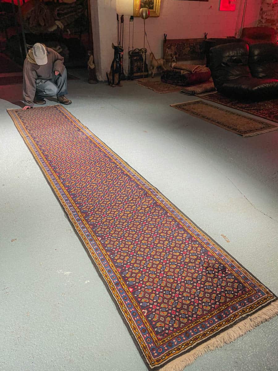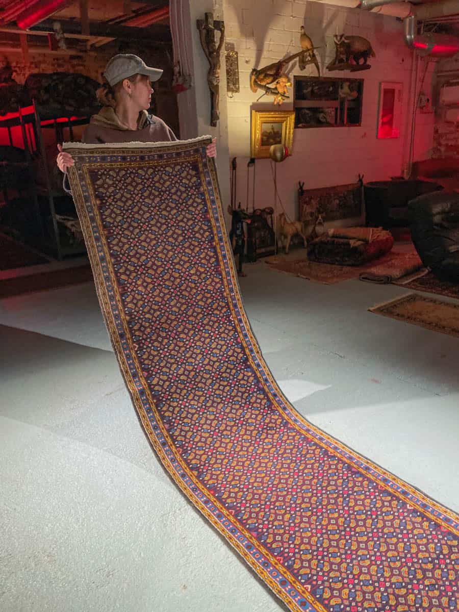 Tämä matto sijaitsee Galleriallamme osoitteessa Kankurinkatu 7, Punavuori – jos haluat tulla katsomaan sitä paikan päälle, sovithan näytön viestitse tai puhelimitse.