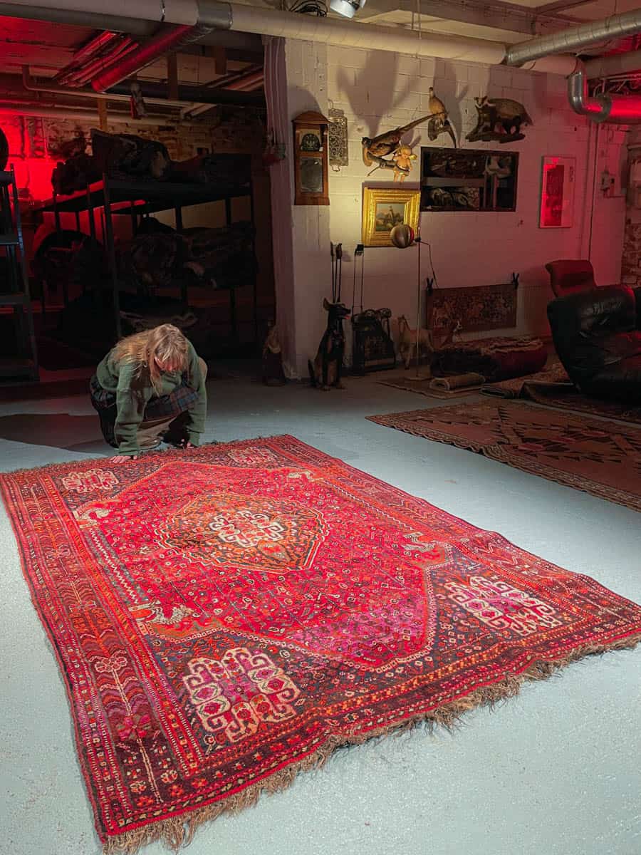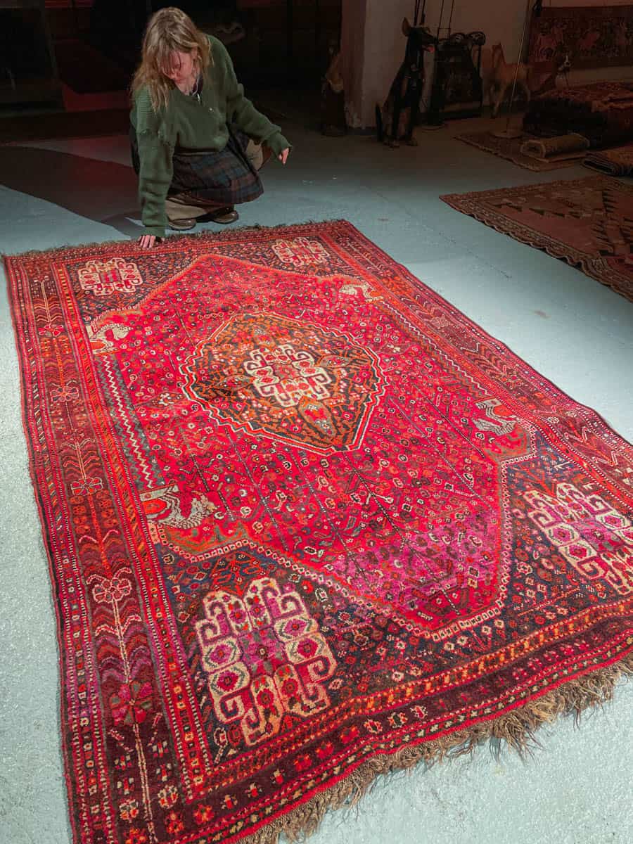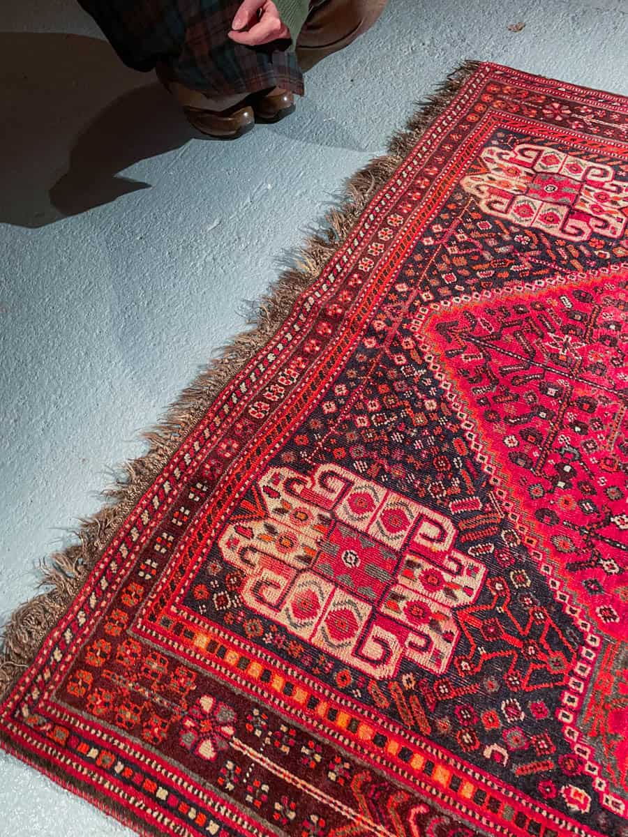 Tämä matto sijaitsee Galleriallamme osoitteessa Kankurinkatu 7, Punavuori – jos haluat tulla katsomaan sitä paikan päälle, sovithan näytön viestitse tai puhelimitse.