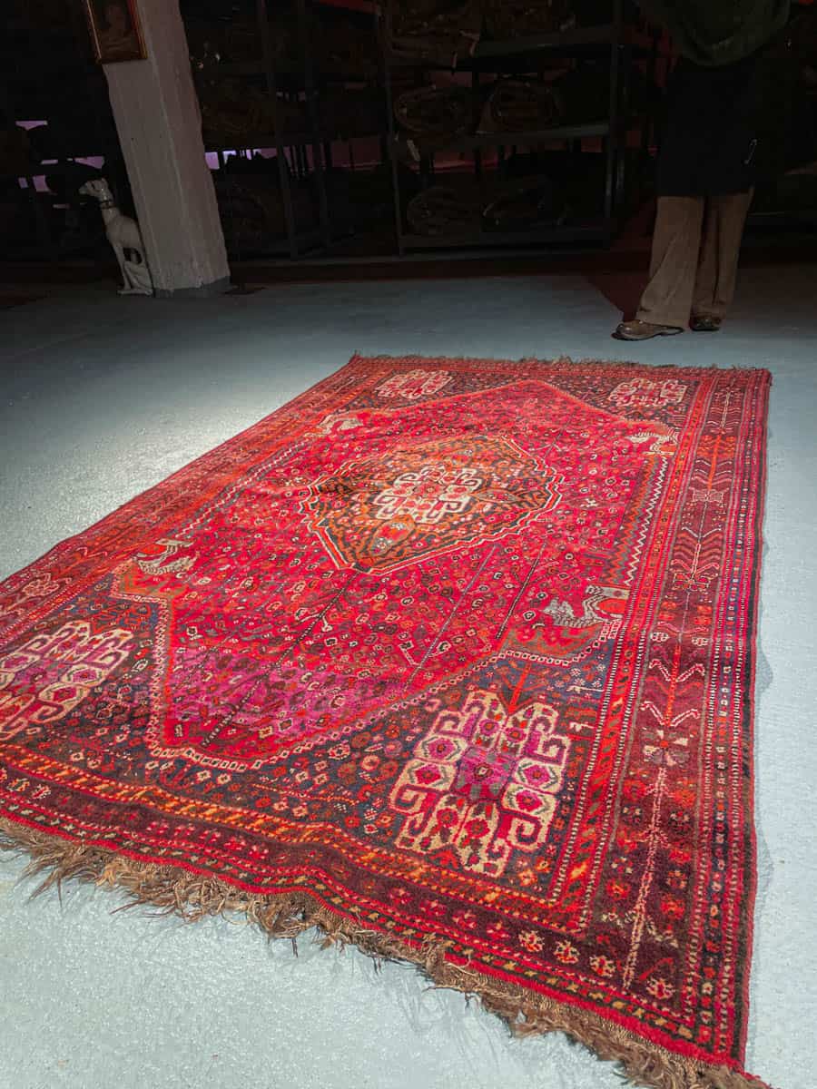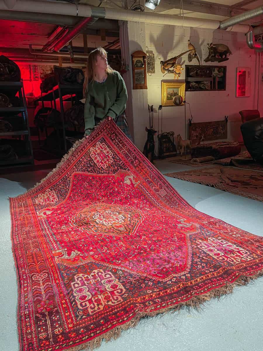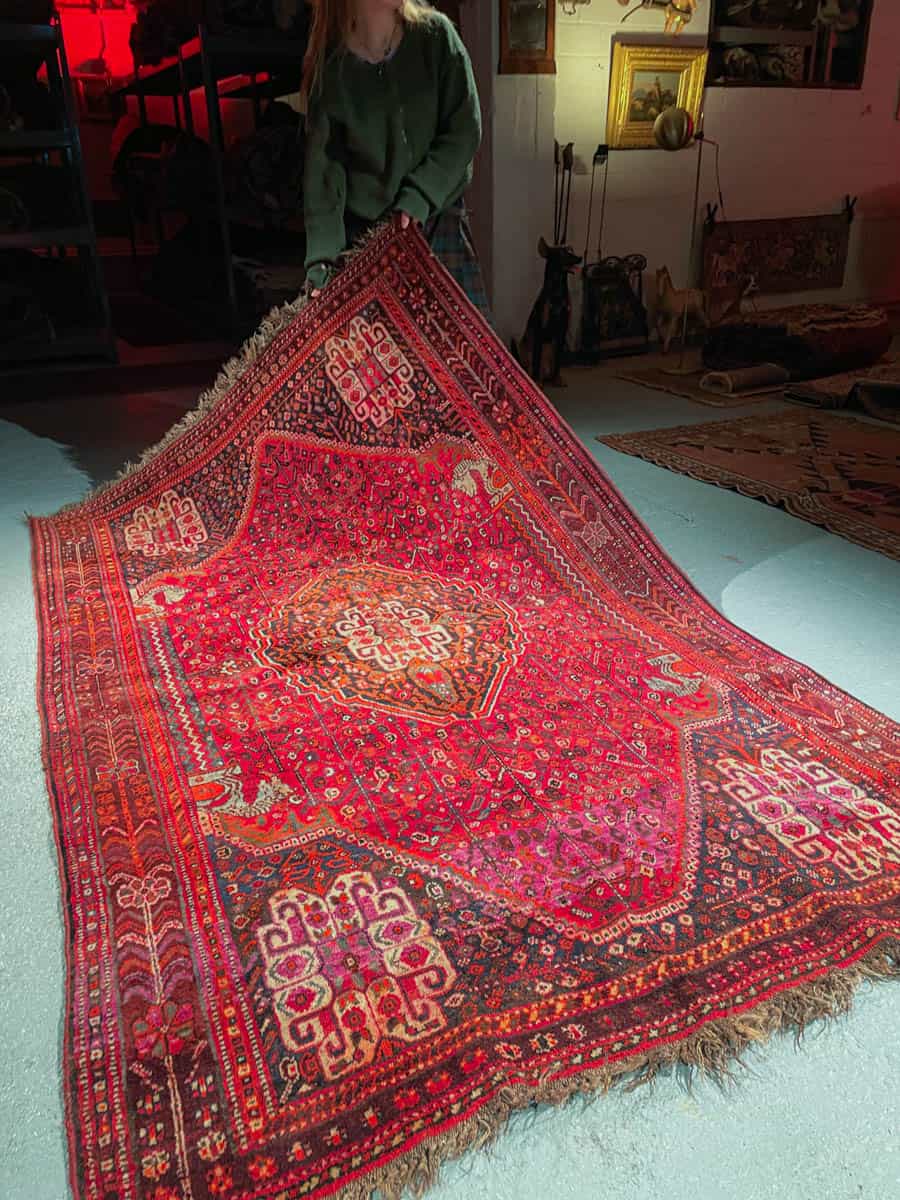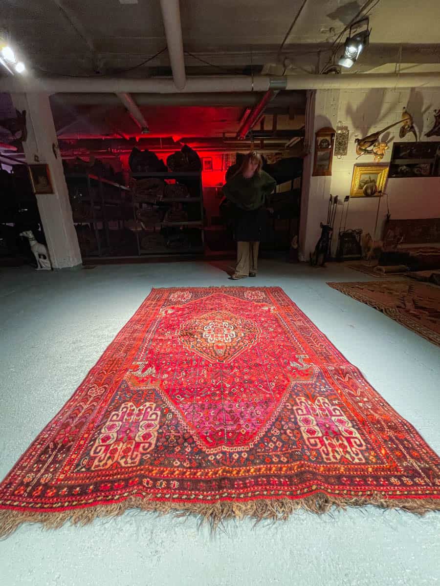 Tämä matto sijaitsee Galleriallamme osoitteessa Kankurinkatu 7, Punavuori – jos haluat tulla katsomaan sitä paikan päälle, sovithan näytön viestitse tai puhelimitse.