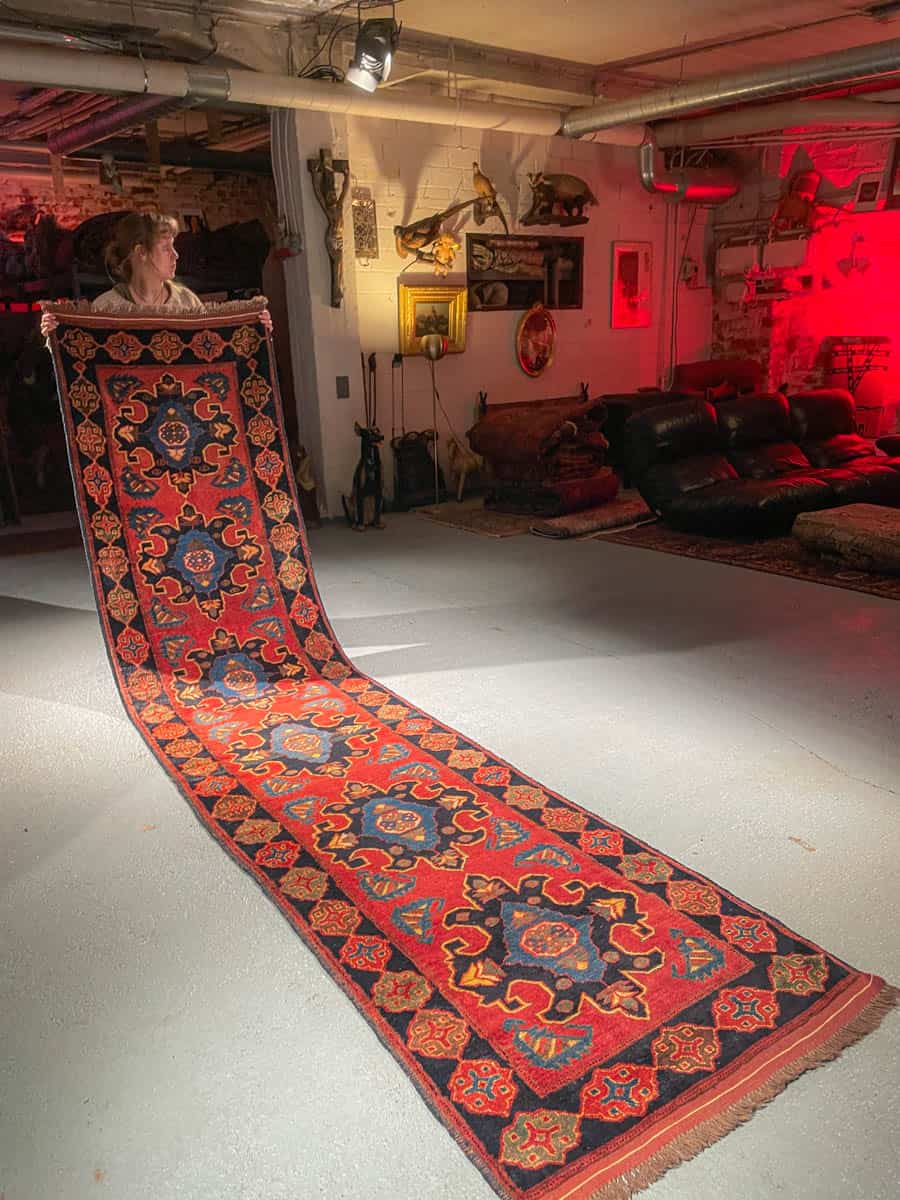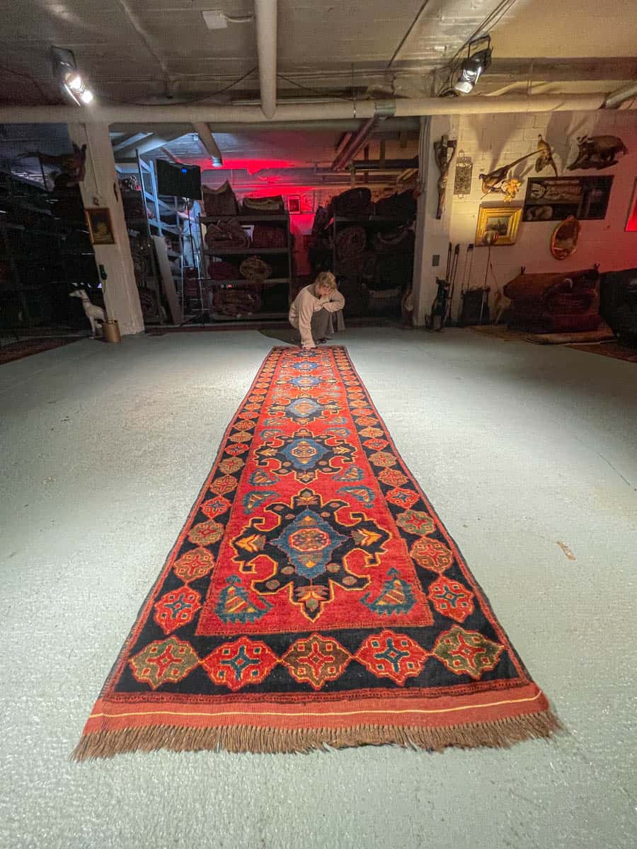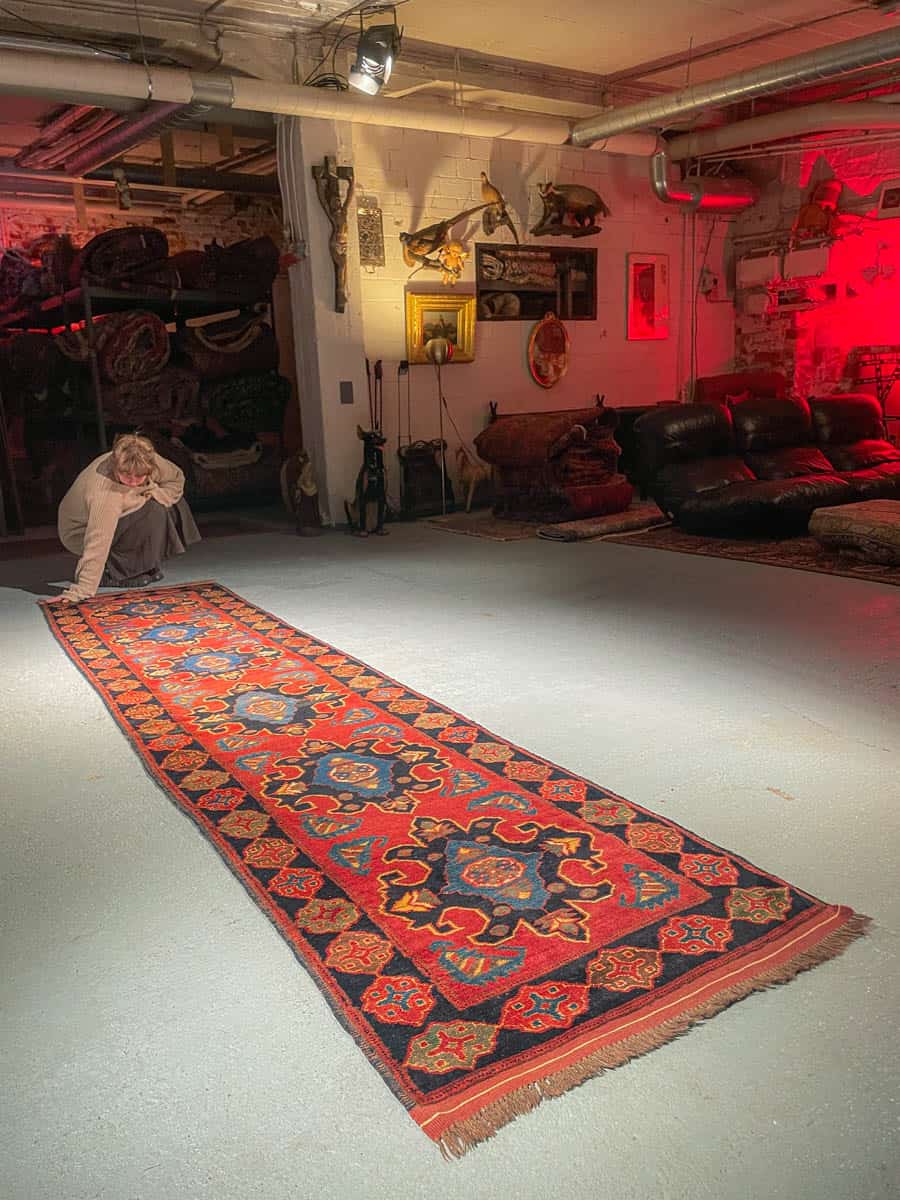 Tämä matto sijaitsee Galleriallamme osoitteessa Kankurinkatu 7, Punavuori – jos haluat tulla katsomaan sitä paikan päälle, sovithan näytön viestitse tai puhelimitse.