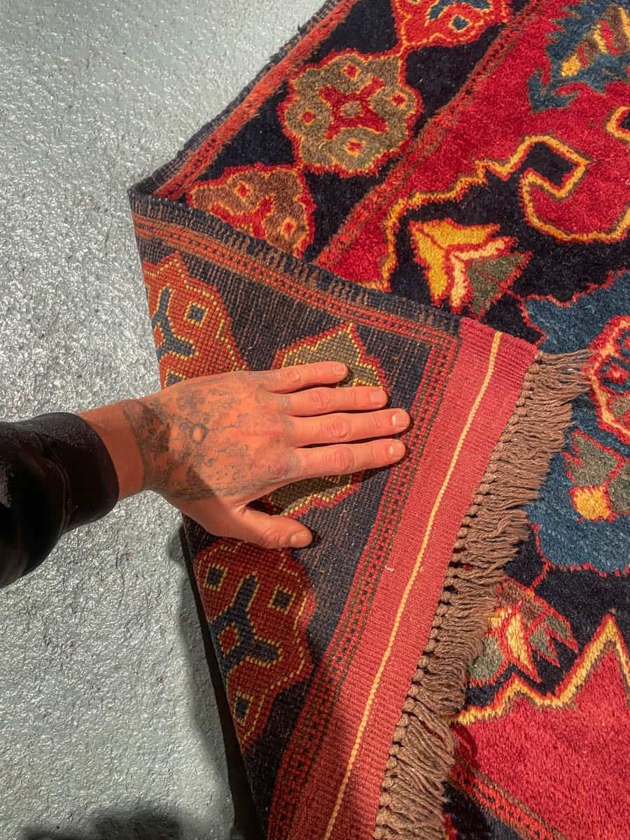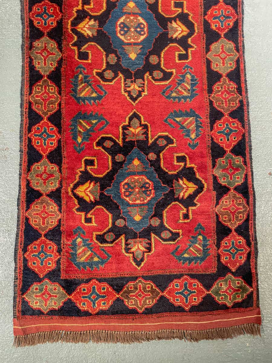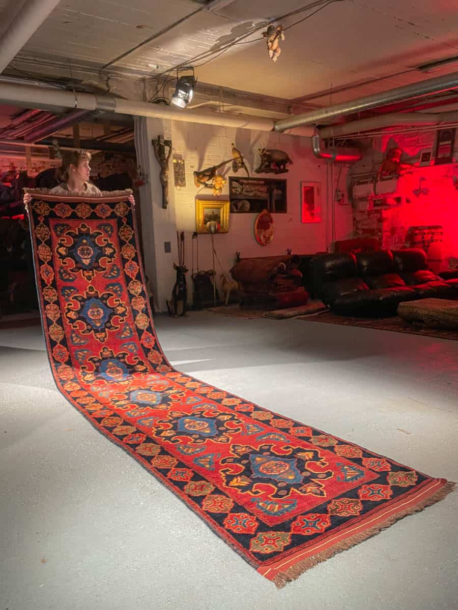 Tämä matto sijaitsee Galleriallamme osoitteessa Kankurinkatu 7, Punavuori – jos haluat tulla katsomaan sitä paikan päälle, sovithan näytön viestitse tai puhelimitse.