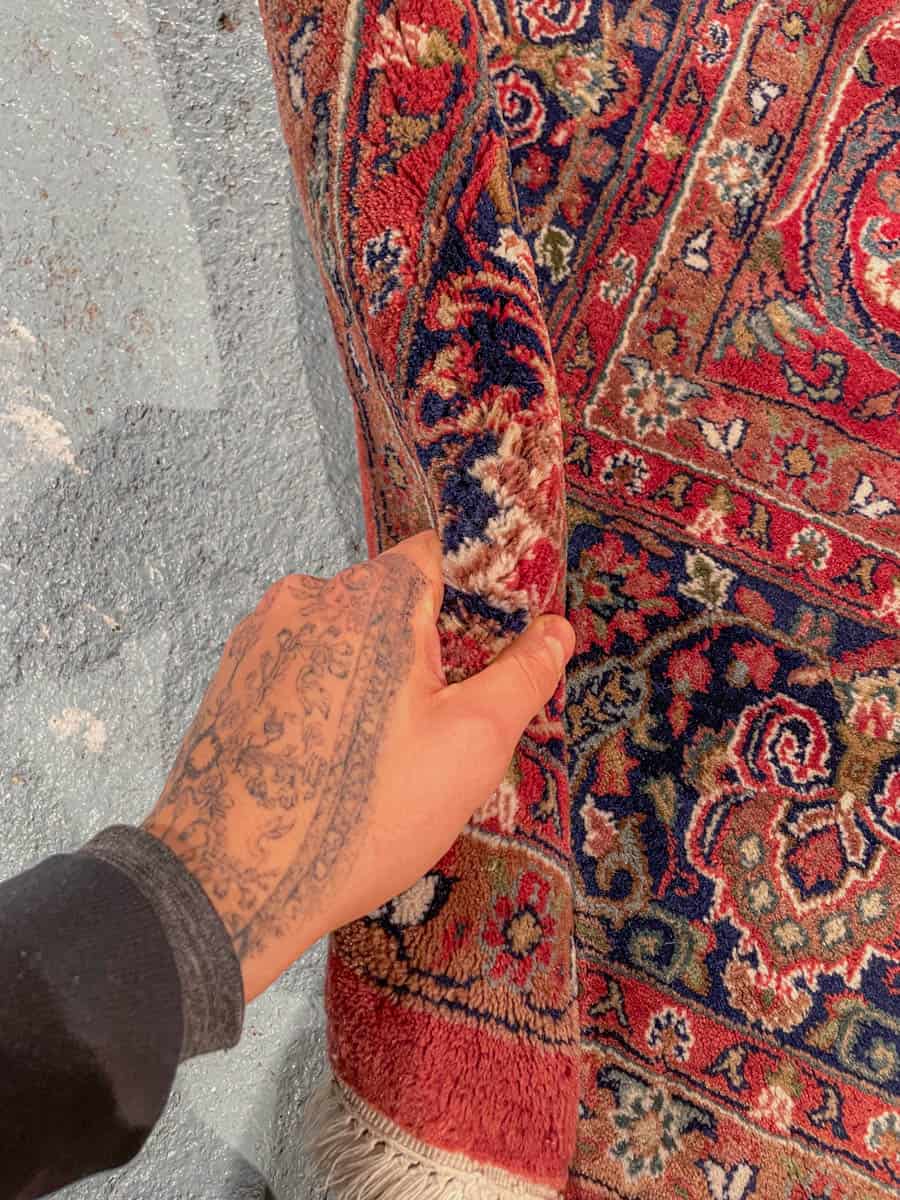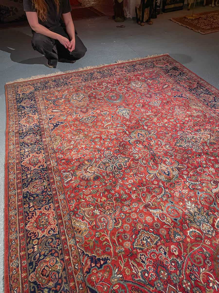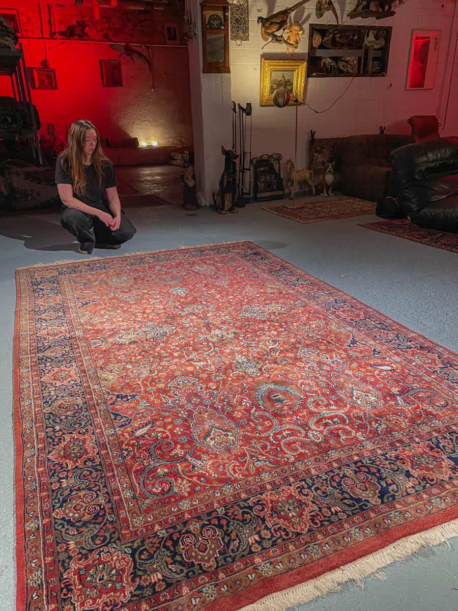 Tämä matto sijaitsee Galleriallamme osoitteessa Kankurinkatu 7, Punavuori – jos haluat tulla katsomaan sitä paikan päälle, sovithan näytön viestitse tai puhelimitse.