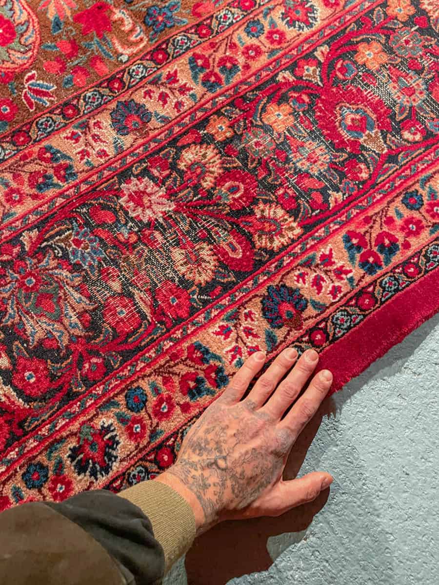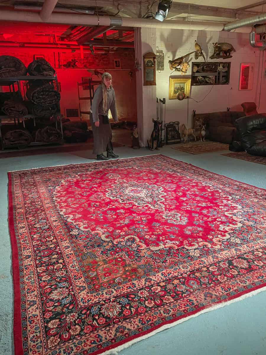 Tämä matto sijaitsee Galleriallamme osoitteessa Kankurinkatu 7, Punavuori – jos haluat tulla katsomaan sitä paikan päälle, sovithan näytön viestitse tai puhelimitse.