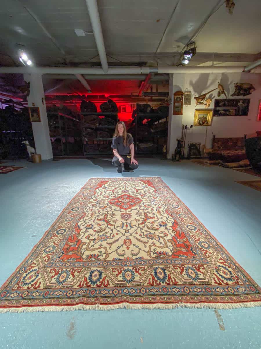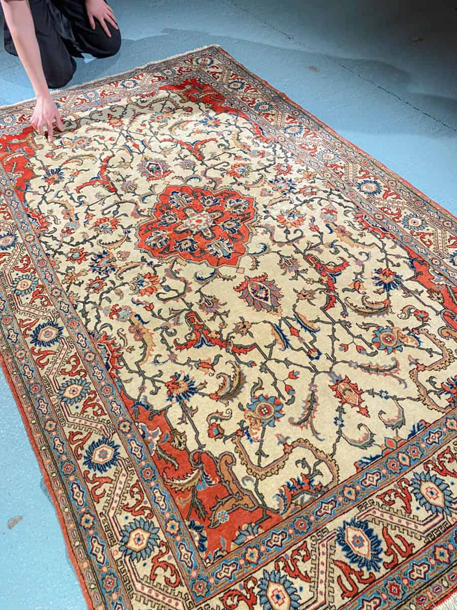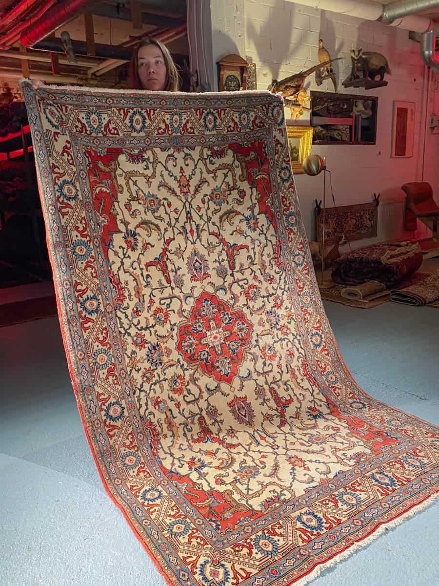 Tämä matto sijaitsee Galleriallamme osoitteessa Kankurinkatu 7, Punavuori – jos haluat tulla katsomaan sitä paikan päälle, sovithan näytön viestitse tai puhelimitse.