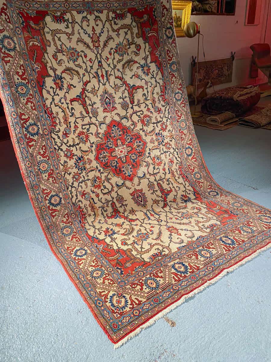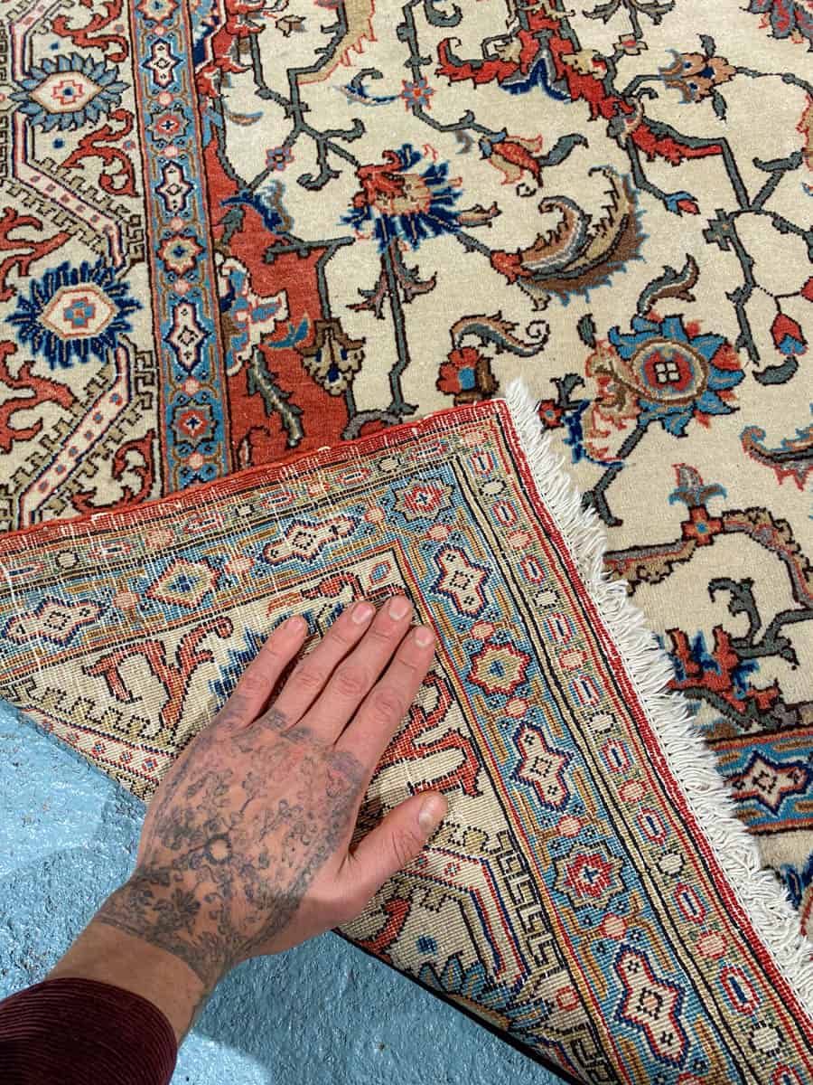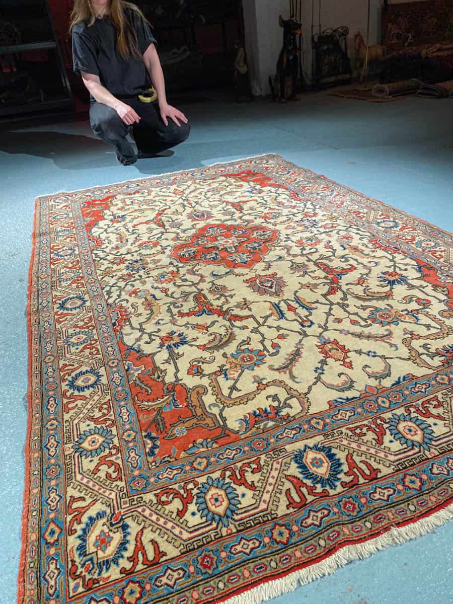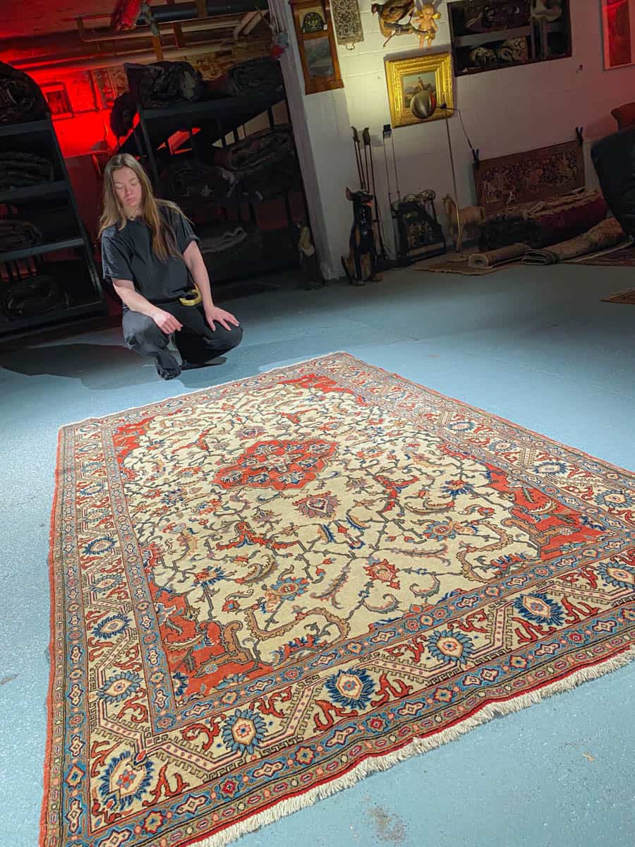 Tämä matto sijaitsee Galleriallamme osoitteessa Kankurinkatu 7, Punavuori – jos haluat tulla katsomaan sitä paikan päälle, sovithan näytön viestitse tai puhelimitse.