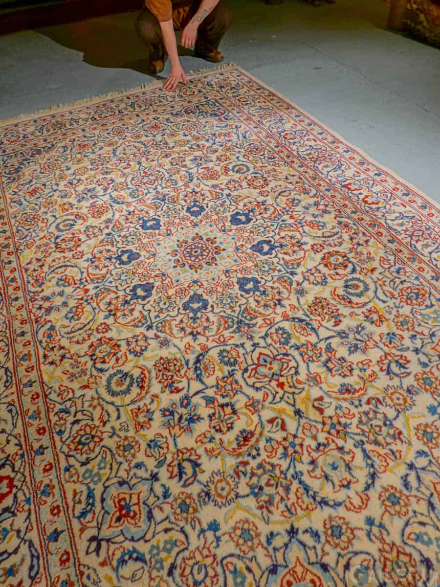 Tämä matto sijaitsee Galleriallamme osoitteessa Kankurinkatu 7, Punavuori – jos haluat tulla katsomaan sitä paikan päälle, sovithan näytön viestitse tai puhelimitse.