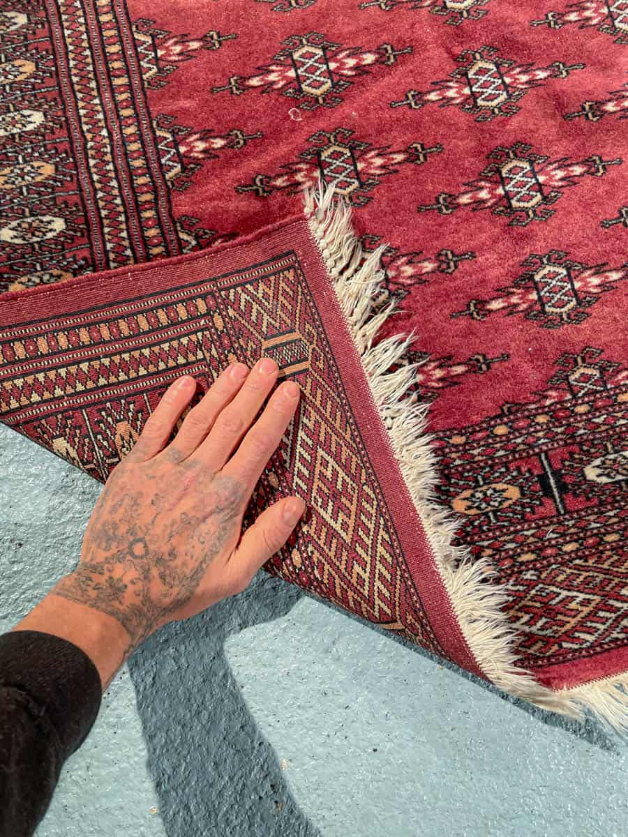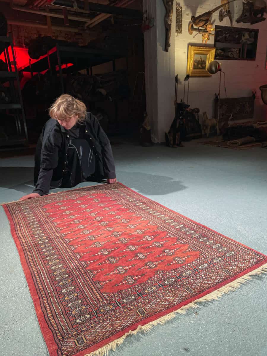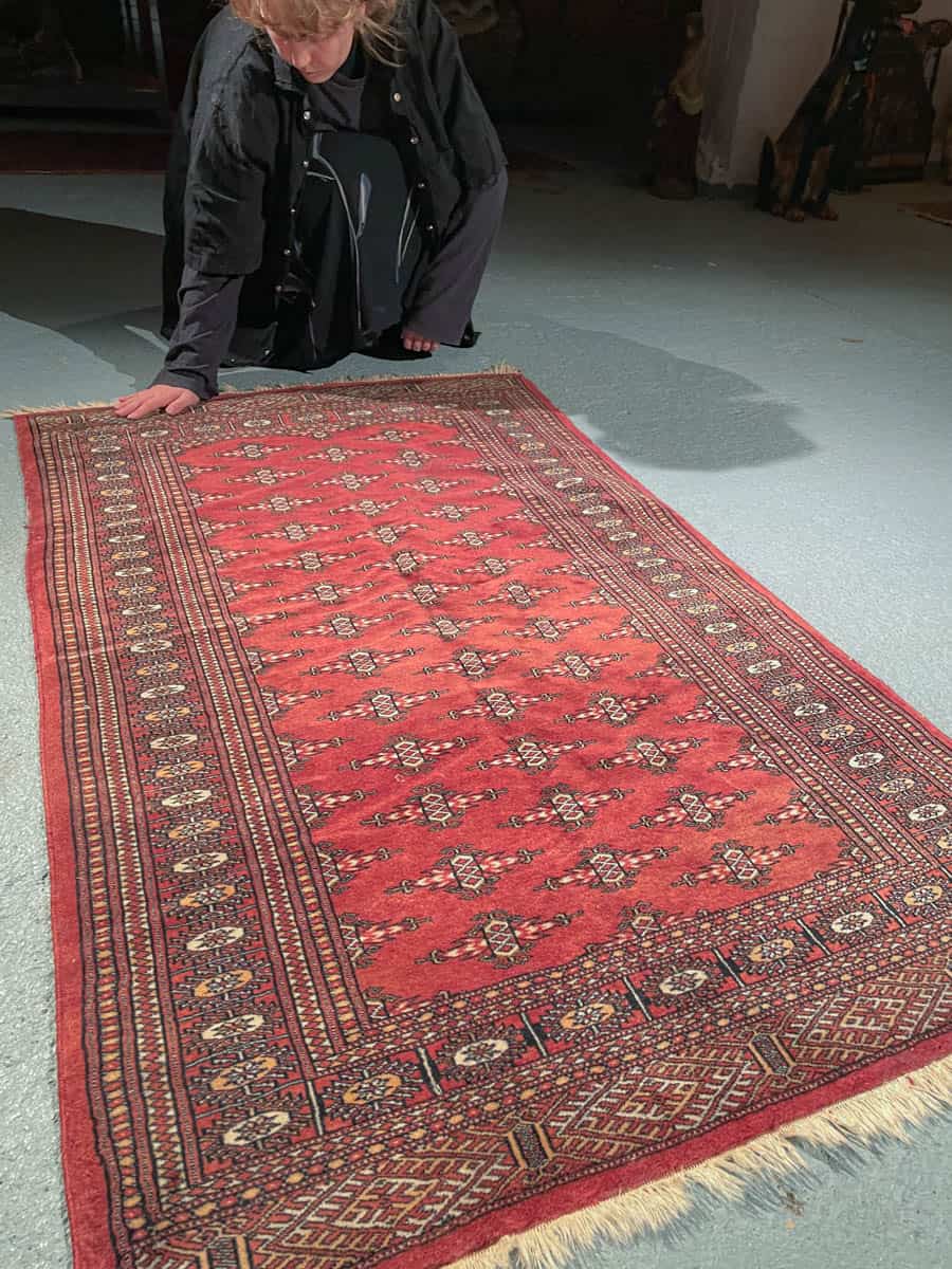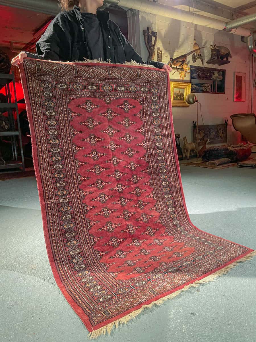 Tämä matto sijaitsee Galleriallamme osoitteessa Kankurinkatu 7, Punavuori – jos haluat tulla katsomaan sitä paikan päälle, sovithan näytön viestitse tai puhelimitse.