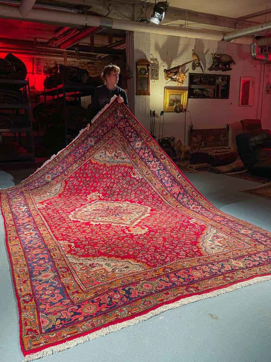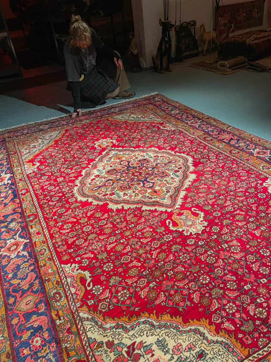 Tämä matto sijaitsee Galleriallamme osoitteessa Kankurinkatu 7, Punavuori – jos haluat tulla katsomaan sitä paikan päälle, sovithan näytön viestitse tai puhelimitse.