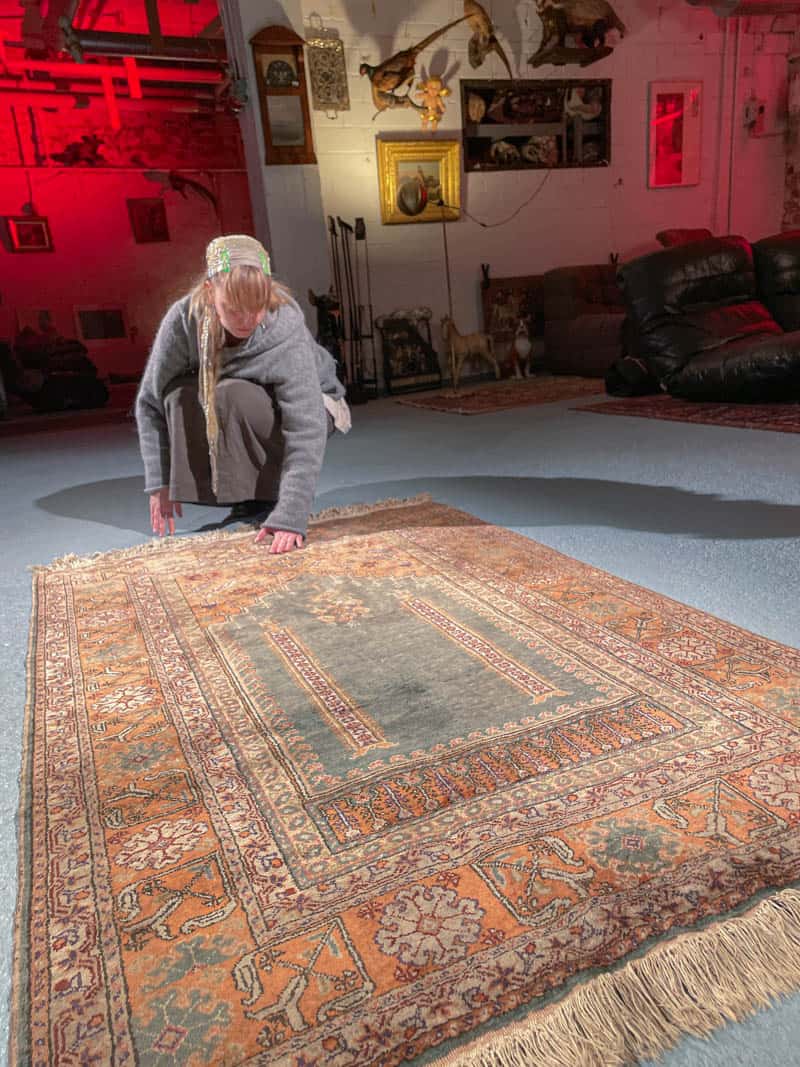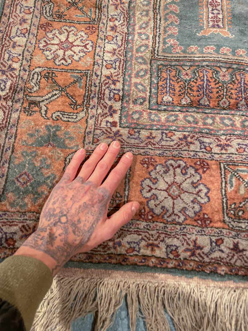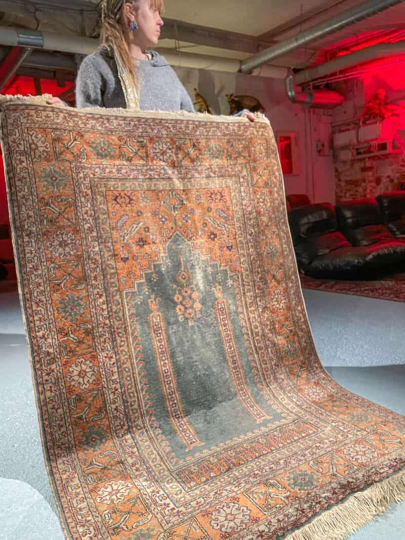 Tämä matto sijaitsee Galleriallamme osoitteessa Kankurinkatu 7, Punavuori – jos haluat tulla katsomaan sitä paikan päälle, sovithan näytön viestitse tai puhelimitse.