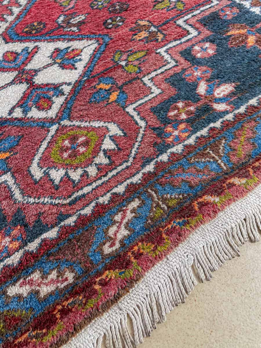 Kaunis ja perinteinen vintage-Hamadan perinteisellä geometrisella kuvioinnilla ja klassisilla väreillä.