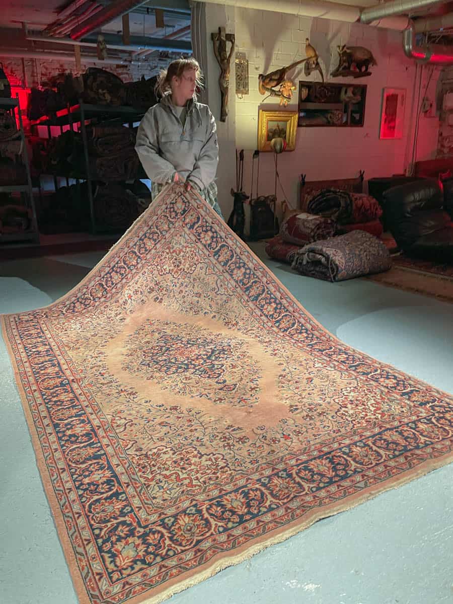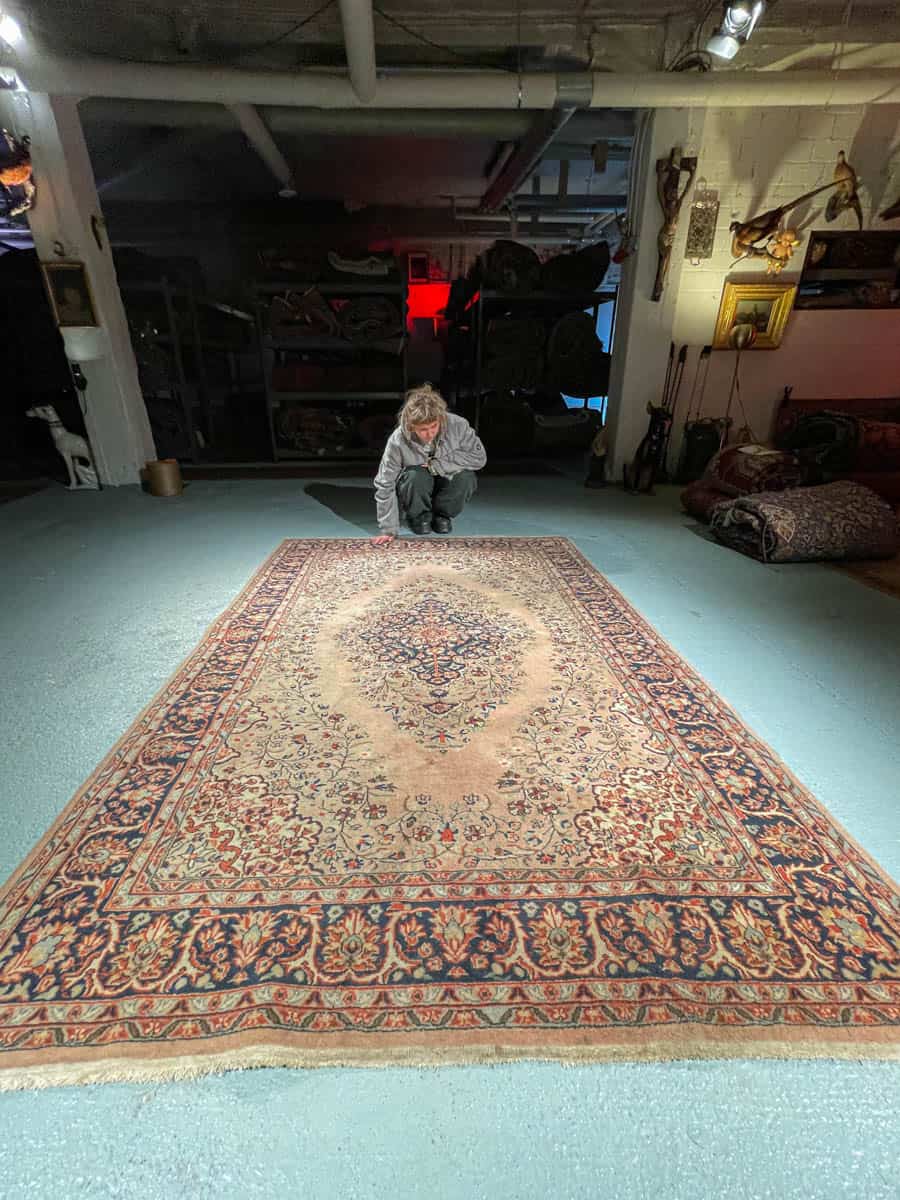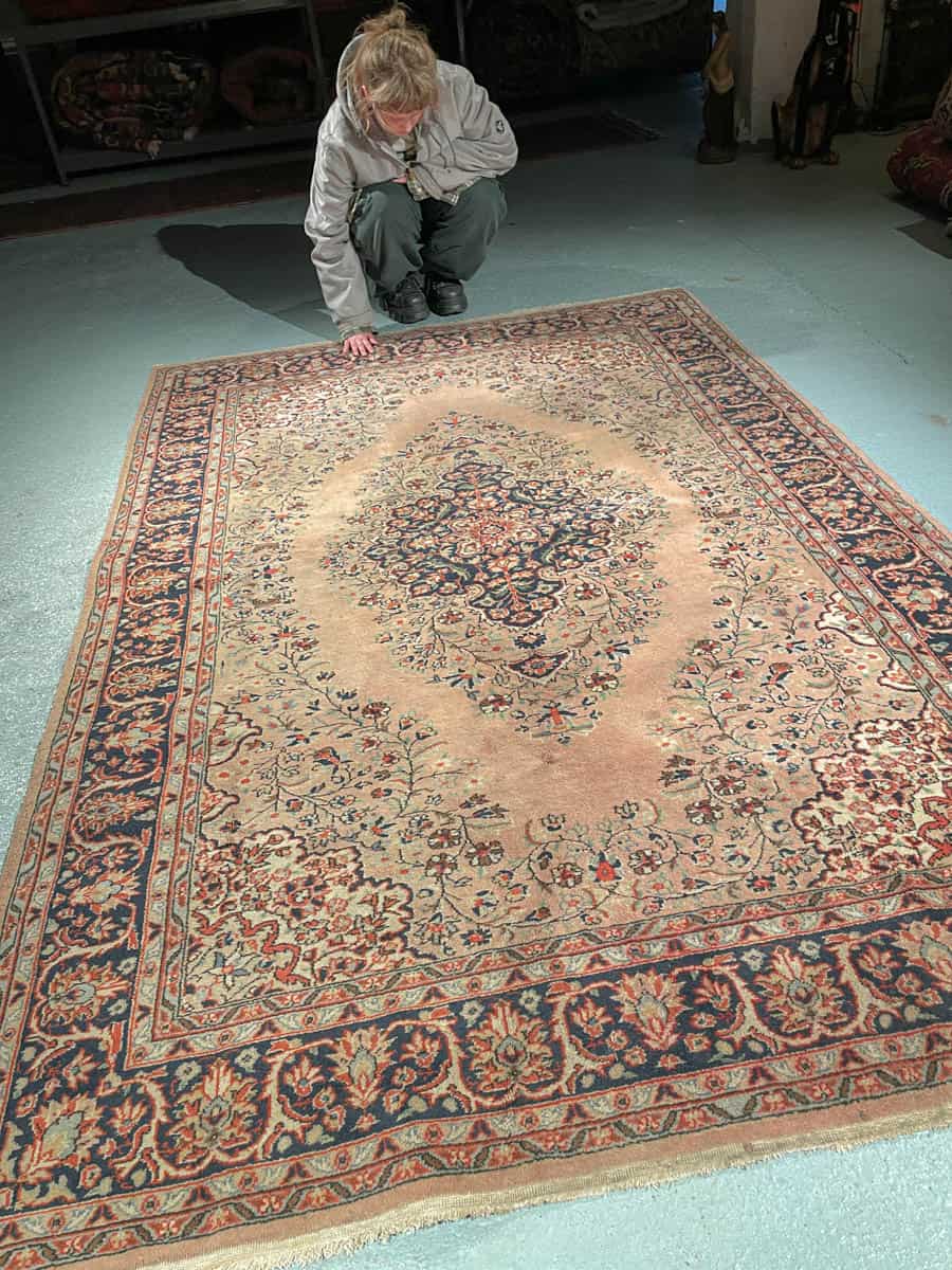 Tämä matto sijaitsee Galleriallamme osoitteessa Kankurinkatu 7, Punavuori – jos haluat tulla katsomaan sitä paikan päälle, sovithan näytön viestitse tai puhelimitse.