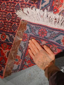 Tämä matto sijaitsee Galleriallamme osoitteessa Kankurinkatu 7, Punavuori – jos haluat tulla katsomaan sitä paikan päälle, sovithan näytön viestitse tai puhelimitse.