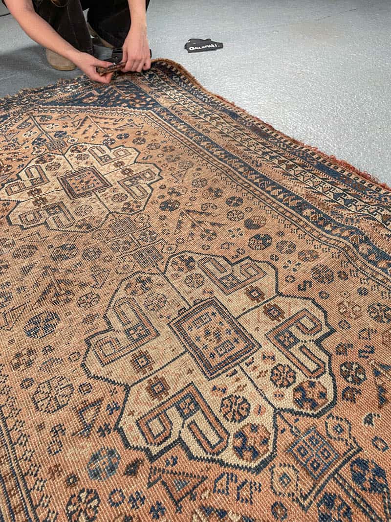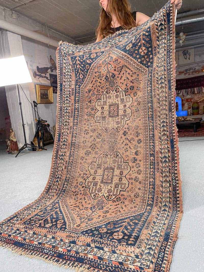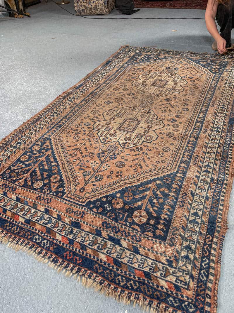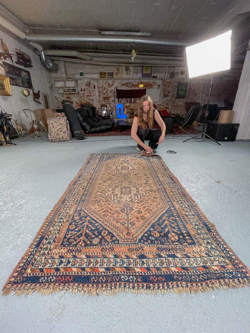 Tämä matto sijaitsee Galleriallamme osoitteessa Kankurinkatu 7, Punavuori – jos haluat tulla katsomaan sitä paikan päälle, sovithan näytön viestitse tai puhelimitse.