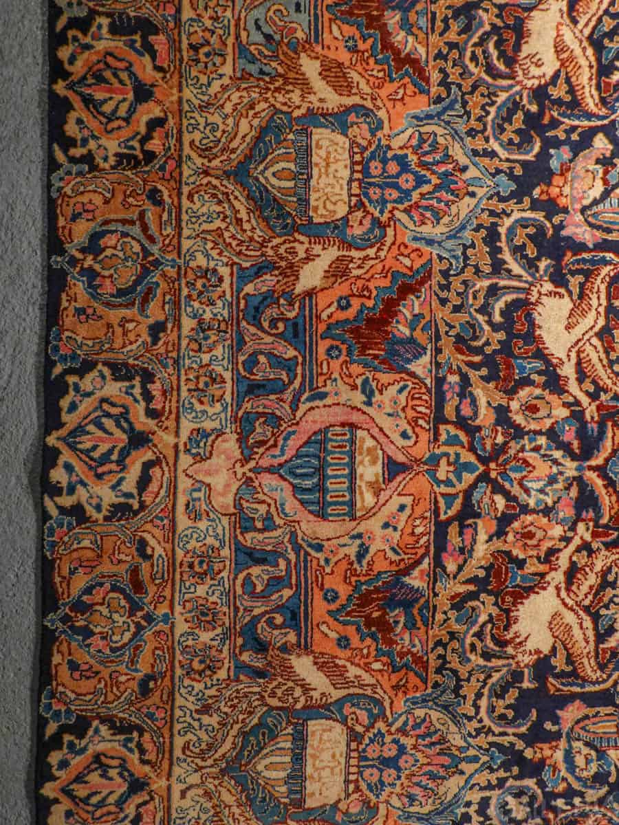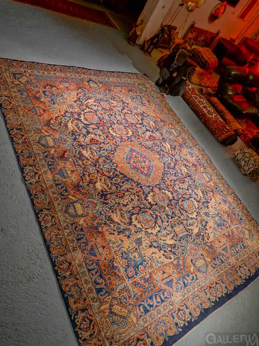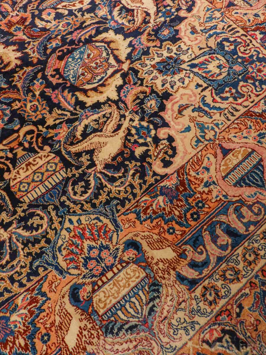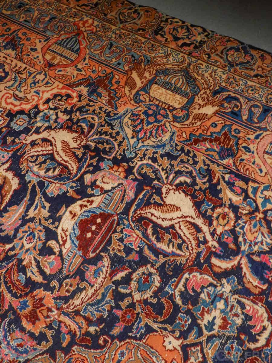 Suuri ja juhlallisen koristeellinen Kashmar runsaan yksityiskohtaisella kuvioinnilla ja yltäkylläisillä väreillä. Kuvioinnista löytyy uskomattoman elegantille Kashmar-tyylille ominaisesti rönsyilevä kokonaisuus vaaseja, eläimiä ja kasvillisuutta.