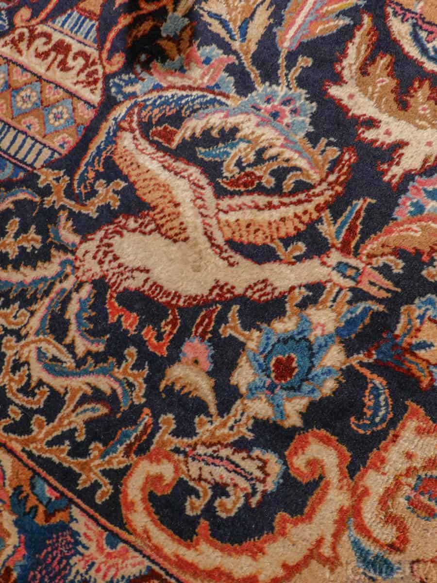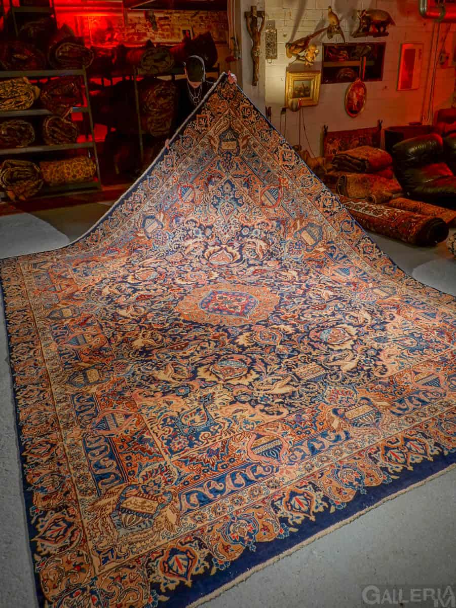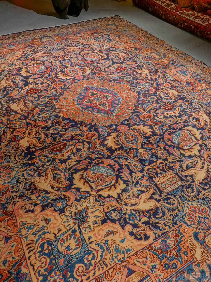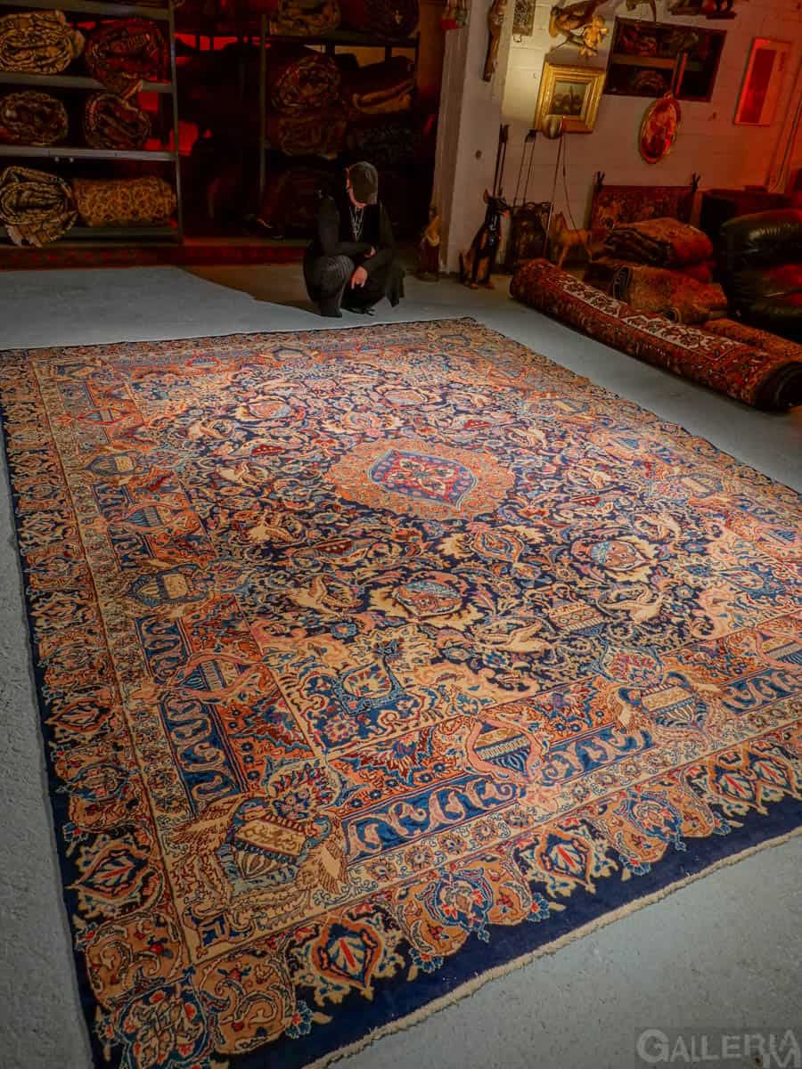 Suuri ja juhlallisen koristeellinen Kashmar runsaan yksityiskohtaisella kuvioinnilla ja yltäkylläisillä väreillä. Kuvioinnista löytyy uskomattoman elegantille Kashmar-tyylille ominaisesti rönsyilevä kokonaisuus vaaseja, eläimiä ja kasvillisuutta.