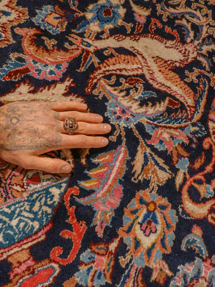Tämä matto sijaitsee Galleriallamme osoitteessa Kankurinkatu 7, Punavuori – jos haluat tulla katsomaan sitä paikan päälle, sovithan näytön viestitse tai puhelimitse.
