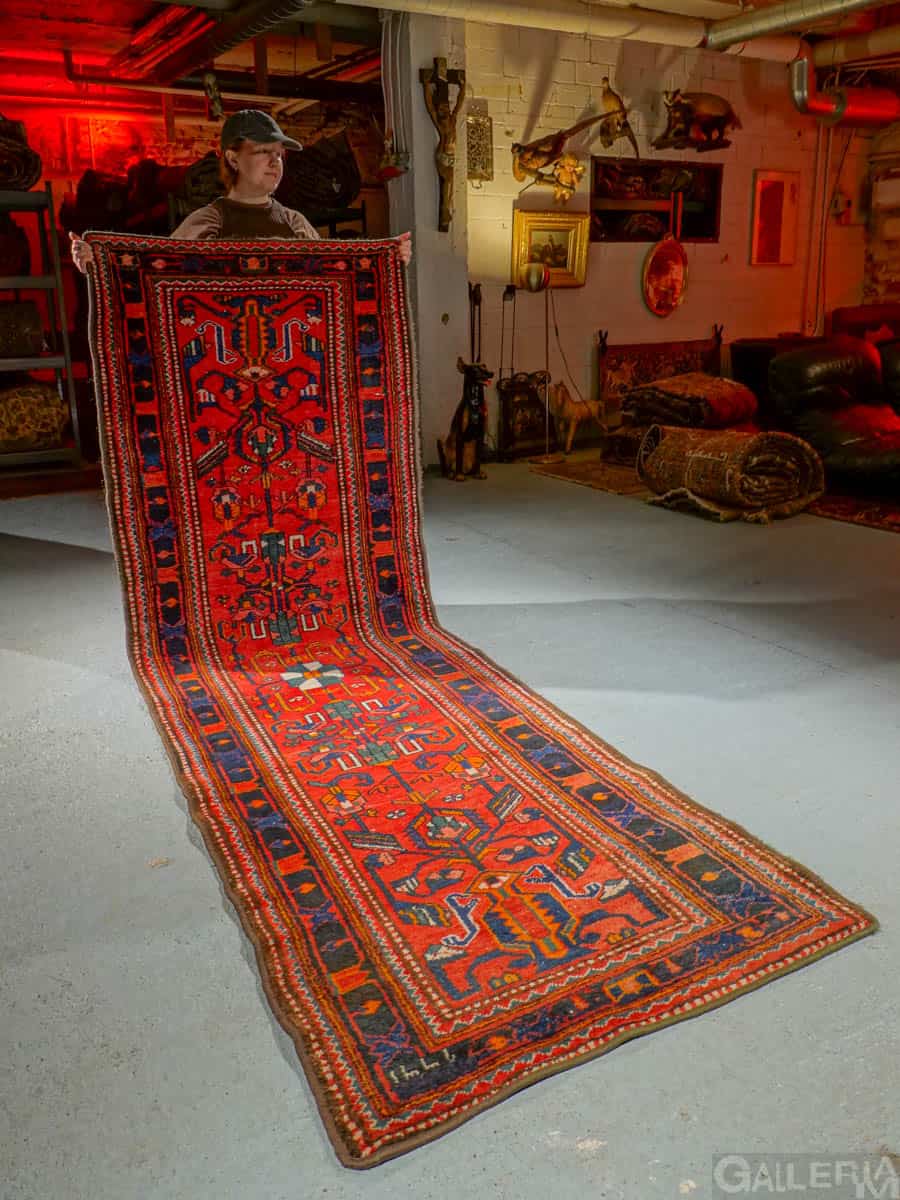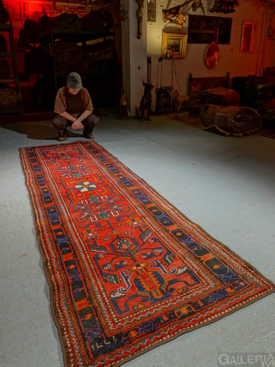 Tämä matto sijaitsee Galleriallamme osoitteessa Kankurinkatu 7, Punavuori – jos haluat tulla katsomaan sitä paikan päälle, sovithan näytön viestitse tai puhelimitse.