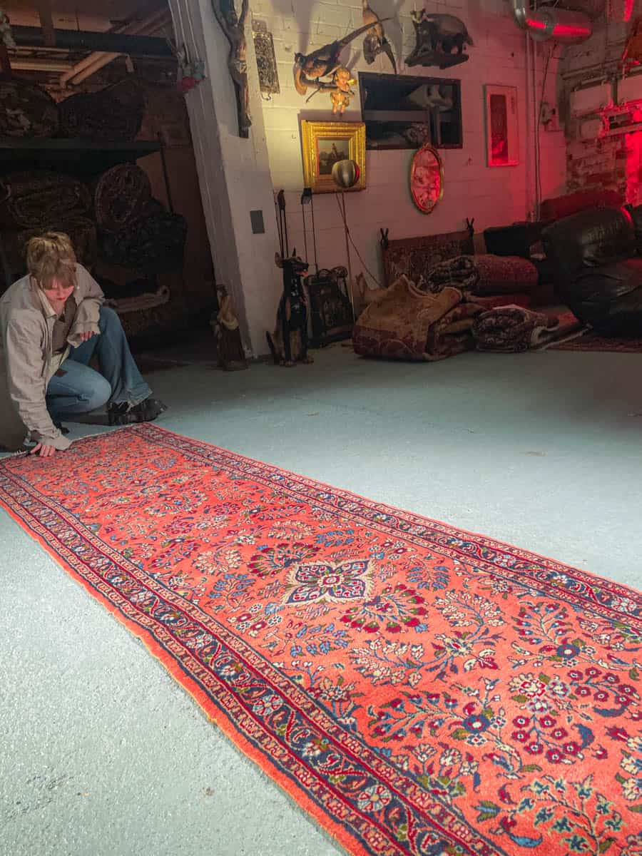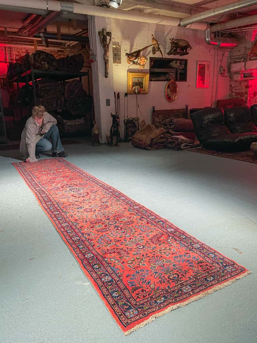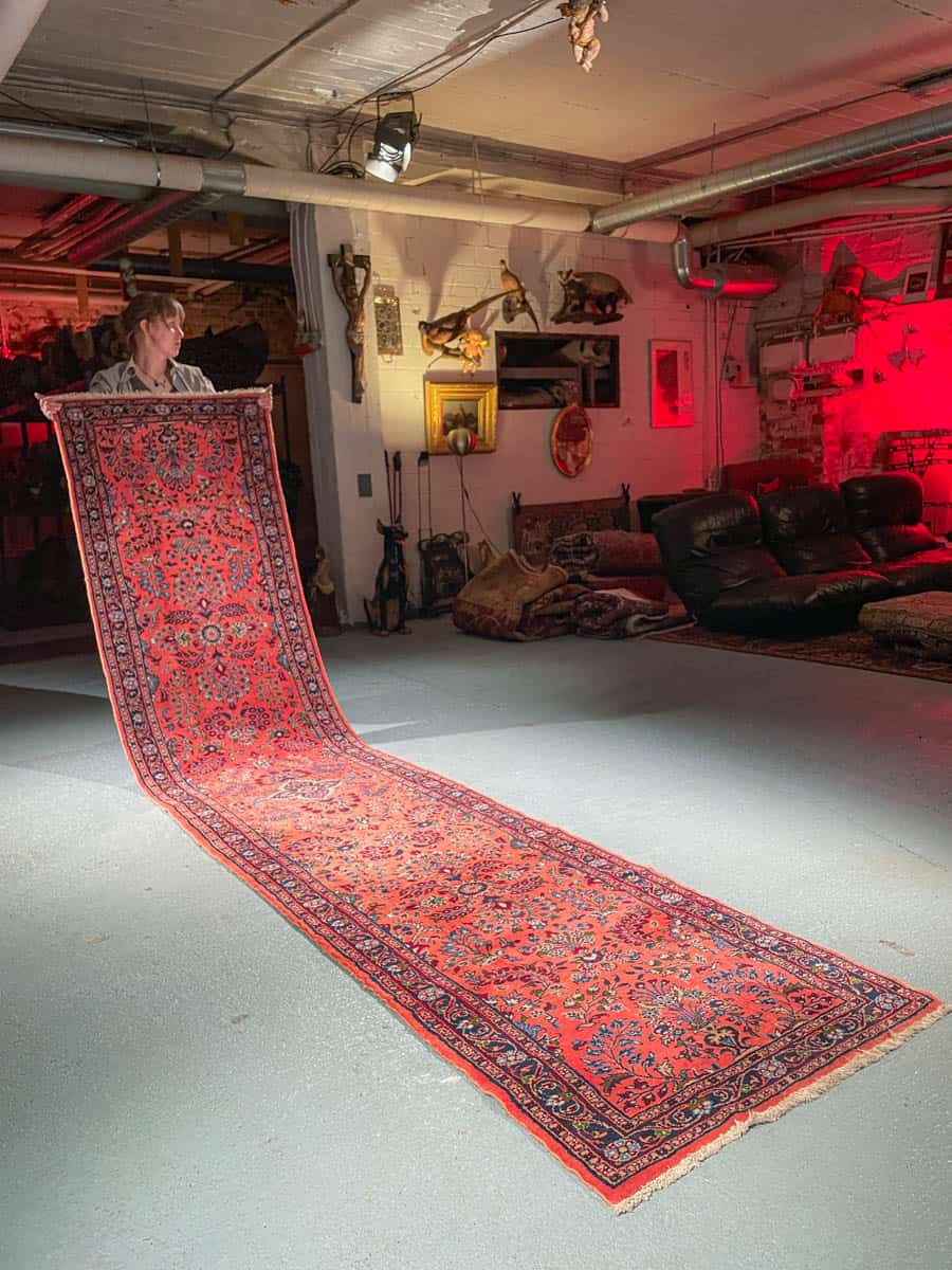Tämä matto sijaitsee Galleriallamme osoitteessa Kankurinkatu 7, Punavuori – jos haluat tulla katsomaan sitä paikan päälle, sovithan näytön viestitse tai puhelimitse.